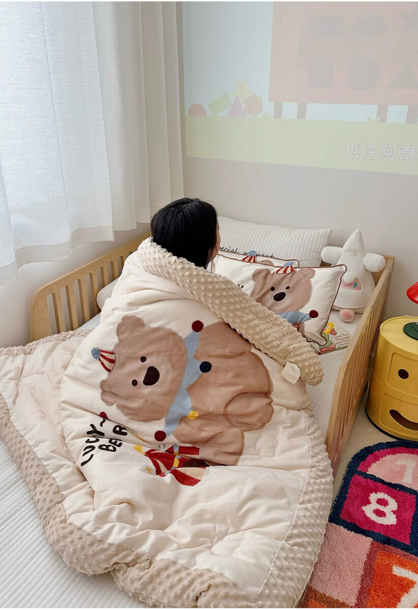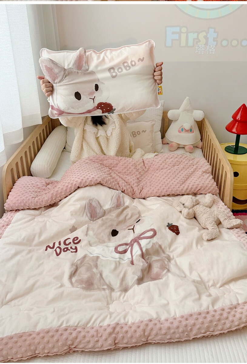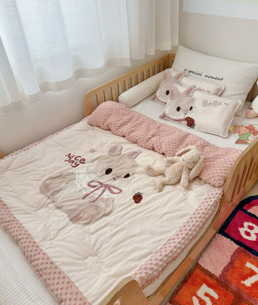 MOEDOOBIE Baby Cartoon Beanie Quilt Class A Beanie Velvet One-piece Quilt Children's Blanket Quilt Winter Quilt Soy Bean Quilt Thickened to Keep Warmth Large Version - Strawberry Rabbit Winter Quilt 120*150cm One-piece Quilt