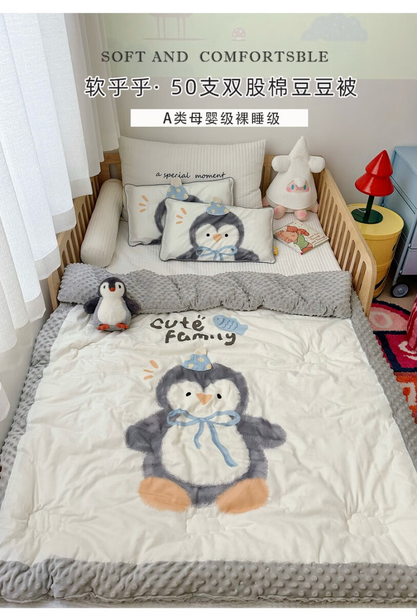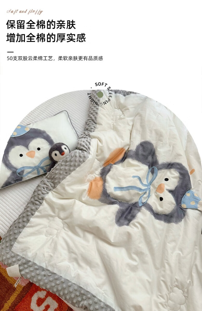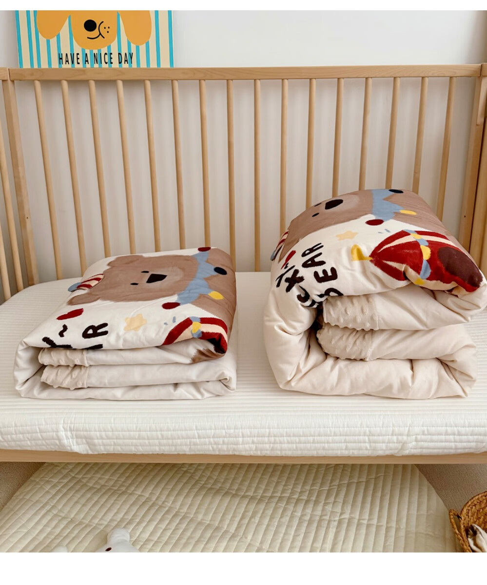 MOEDOOBIE Baby Cartoon Beanie Quilt Class A Beanie Velvet One-piece Quilt Children's Blanket Quilt Winter Quilt Soy Bean Quilt Thickened to Keep Warmth Large Version - Strawberry Rabbit Winter Quilt 120*150cm One-piece Quilt