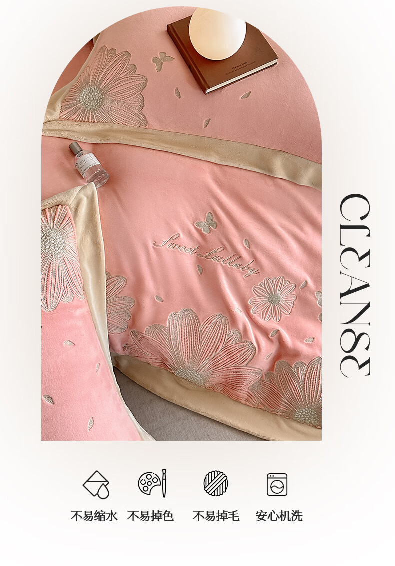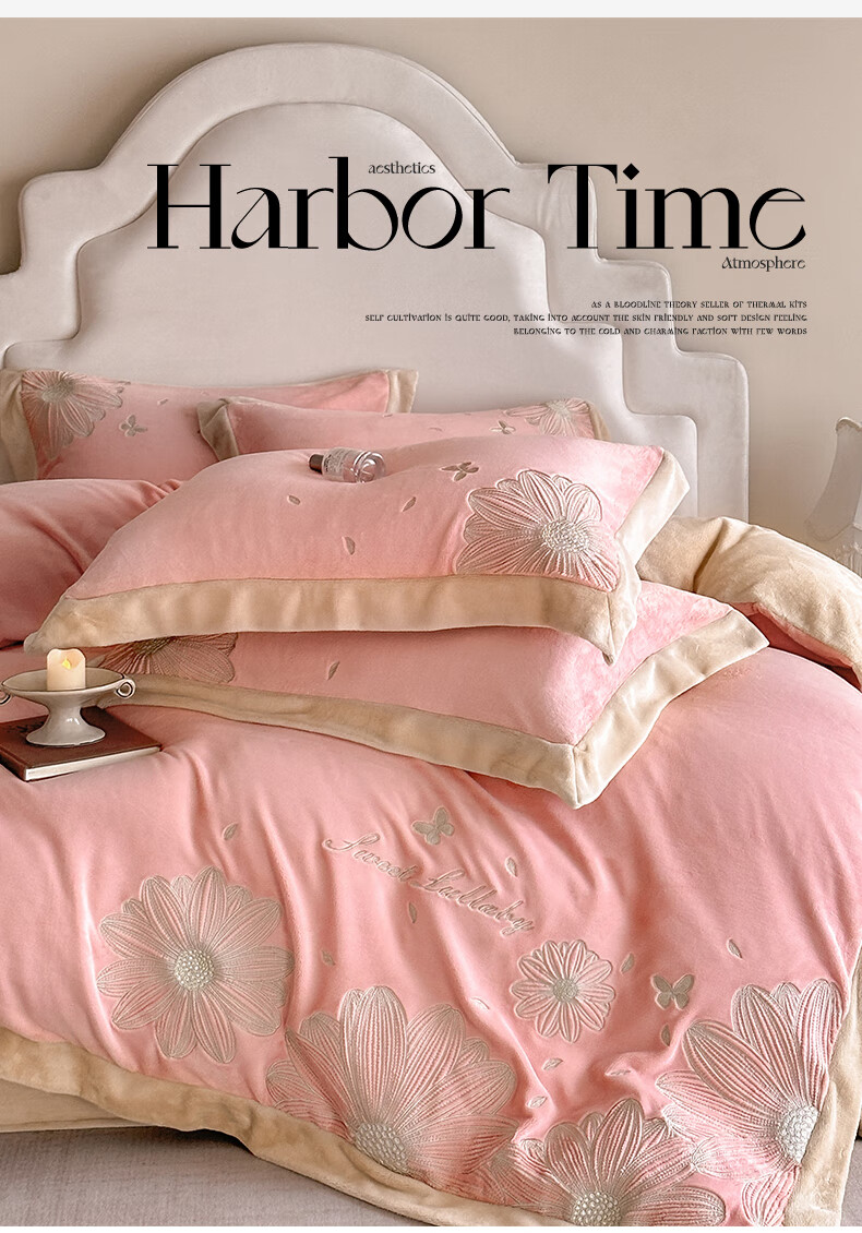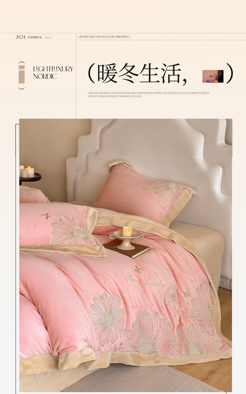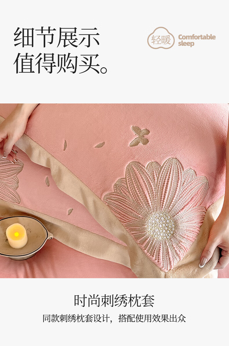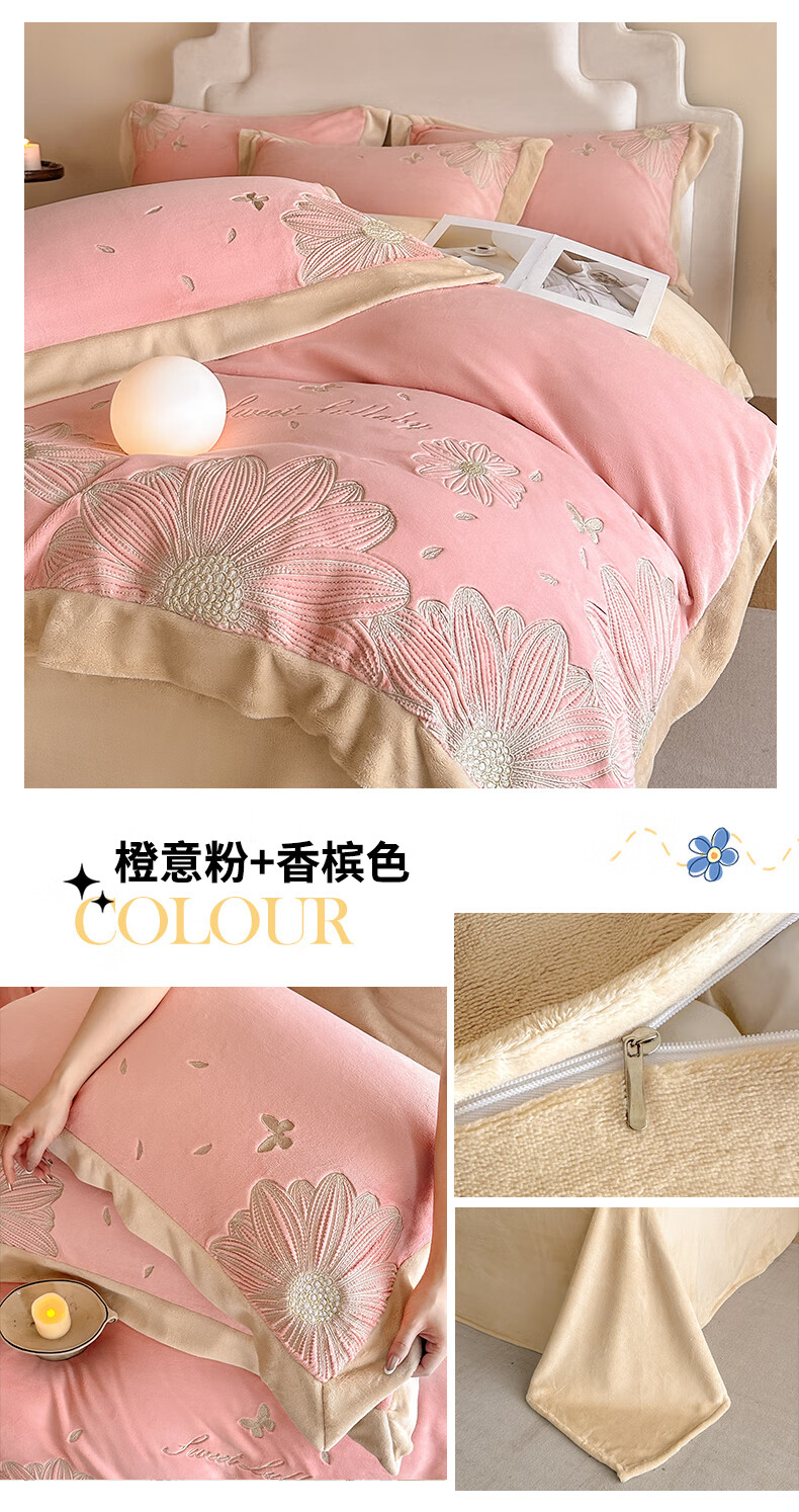 Mercury Series 200 Count Class A Embroidered Milk Velvet Four-piece Set Thickened Winter Coral Velvet Flannel Plus Velvet Bed Sheet Cover Vanilla Gray + Classic Gray Antistatic + Thickened + No Shedding 2.0m Sheet Style Four-piece Set Antistatic + Thickened + No Shedding