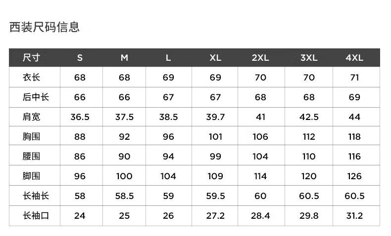 China (cm) 160-165/84-86 165-170 / 88-90 167-172 / 92-96 168-173 / 98-102 170-176 / 106-110