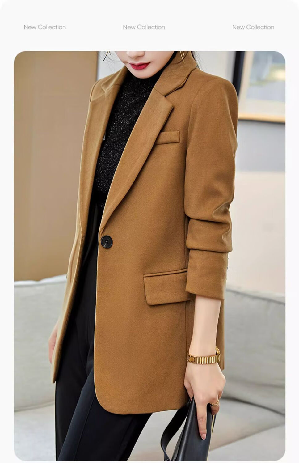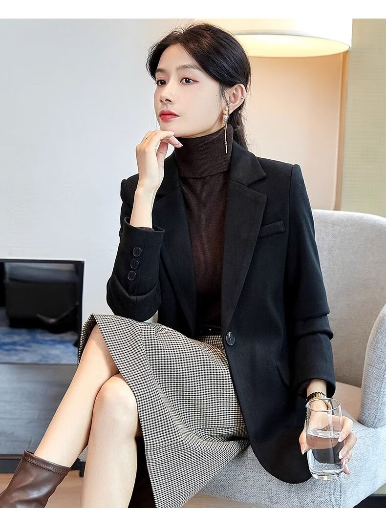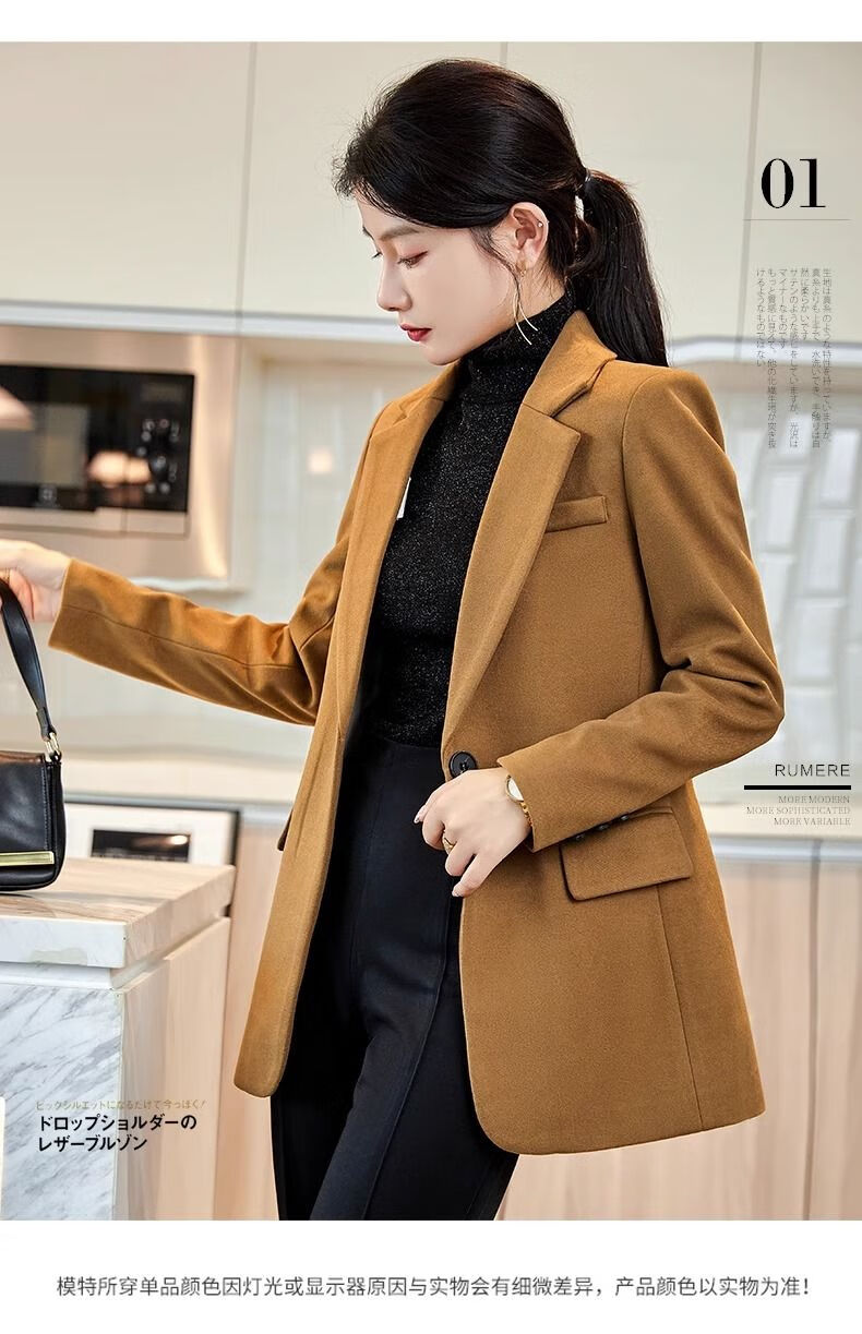 ROMON thickened woolen coat women's quilted small suit 2026 new black cotton temperament versatile suit top winter one button black-thick style M 96-105Jin Jin equals 0.5 kg