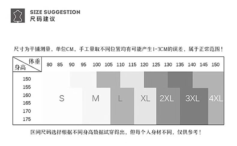 China (cm) 165 / 88-90 170 / 96-98 175 / 108-110 180 / 118-122 185 / 126-130
