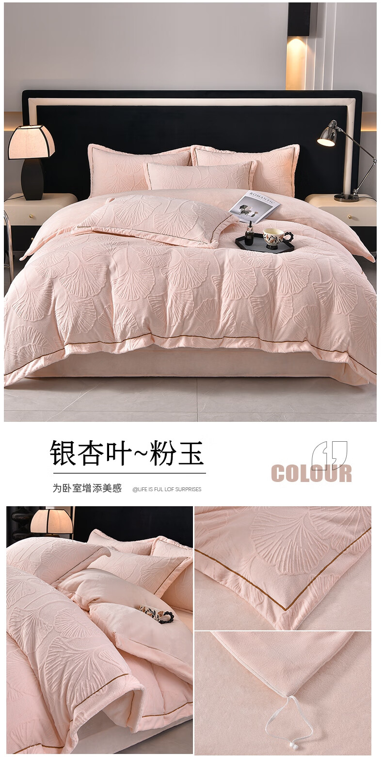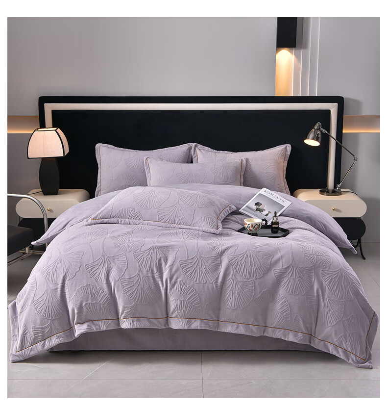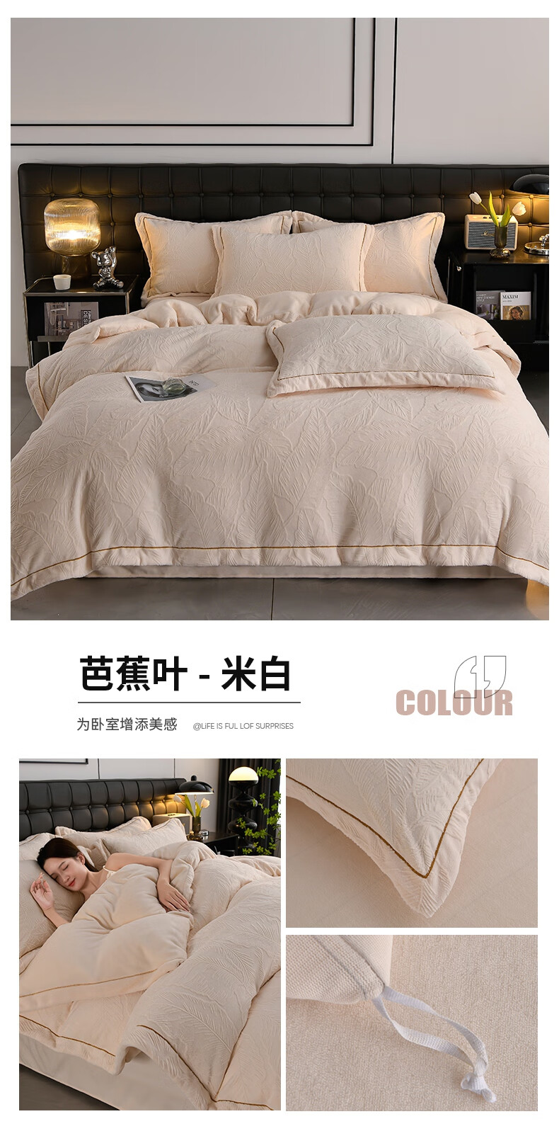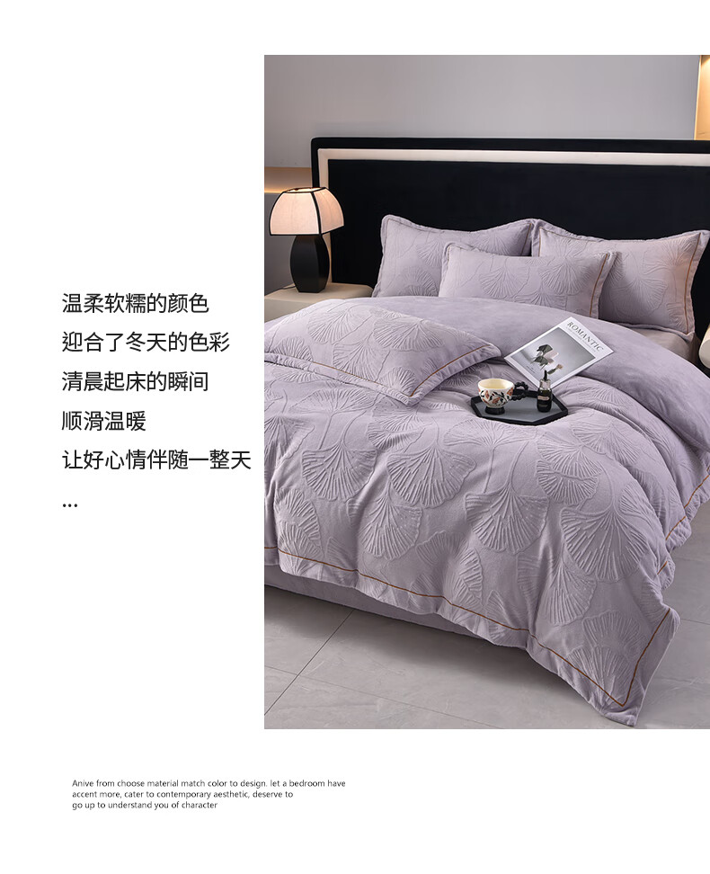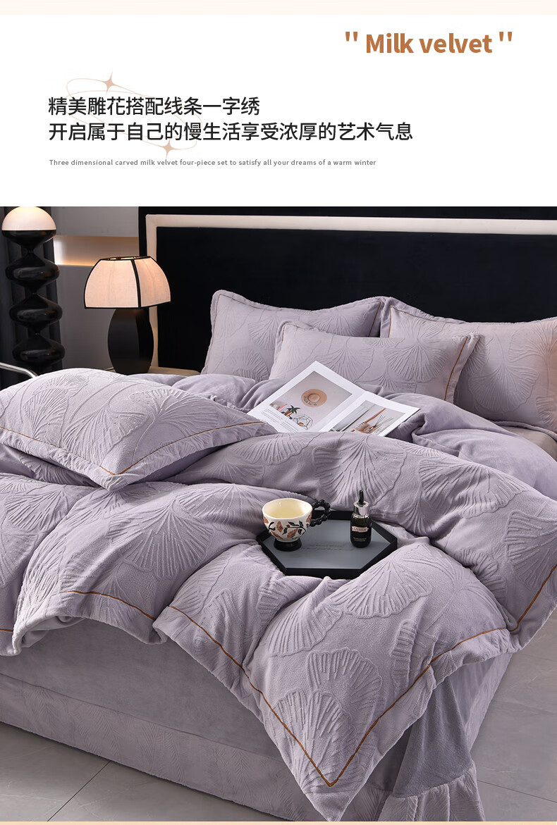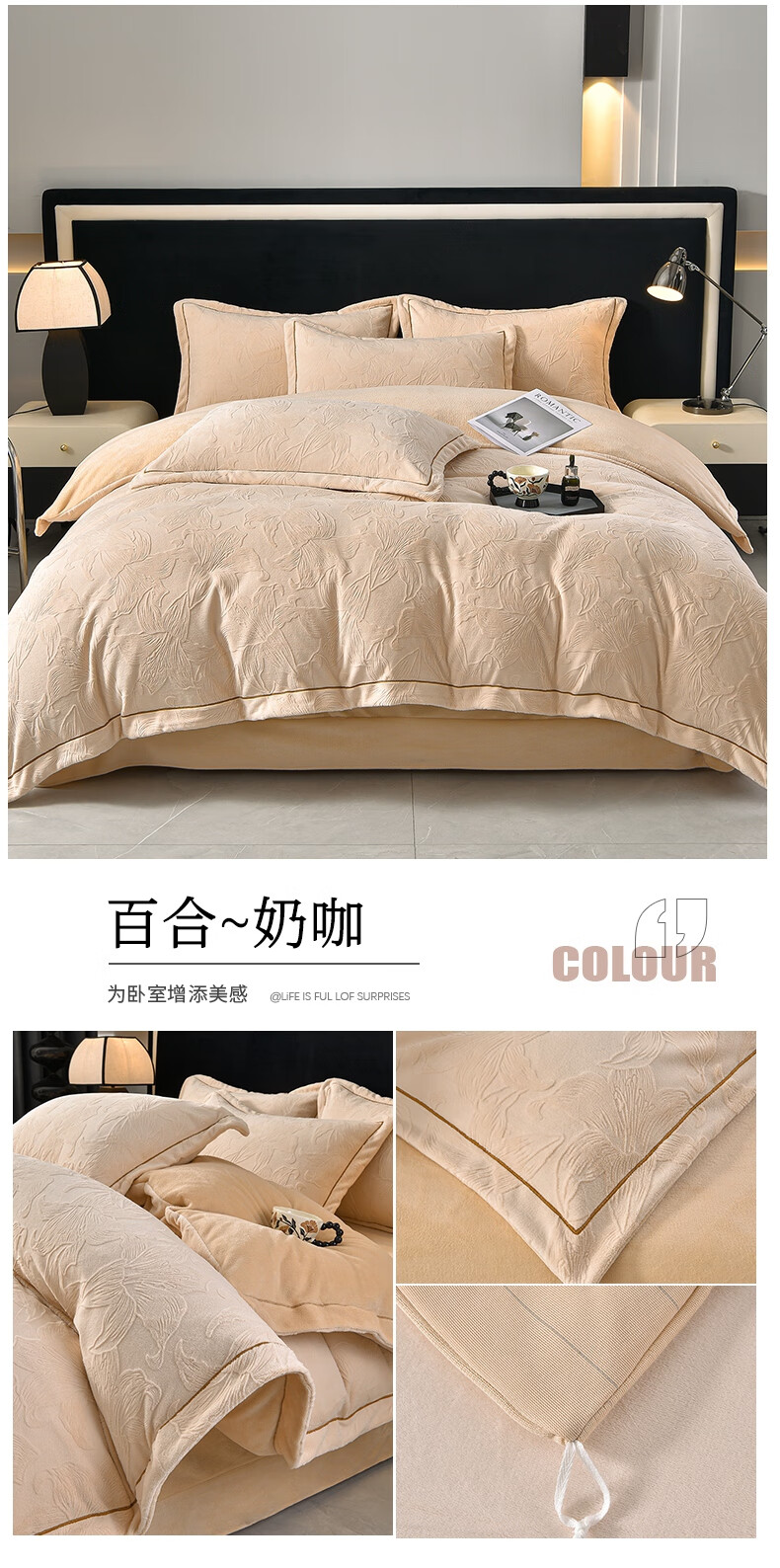 Mercury Series A Type Winter Thickened Carved Milk Four-piece Set Warm Coral Double-sided Velvet Plus Velvet Quilt Cover Sheet Bed Banana Leaf-Bean Green Antistatic + Thickened + No Shedding 1.8m Fitted Sheet Four-piece Set Antistatic + Thickened + No Shedding