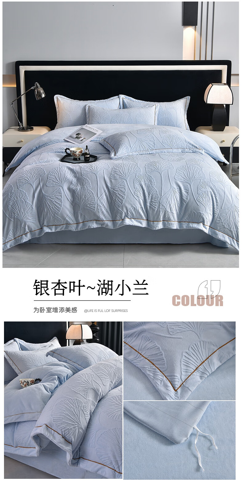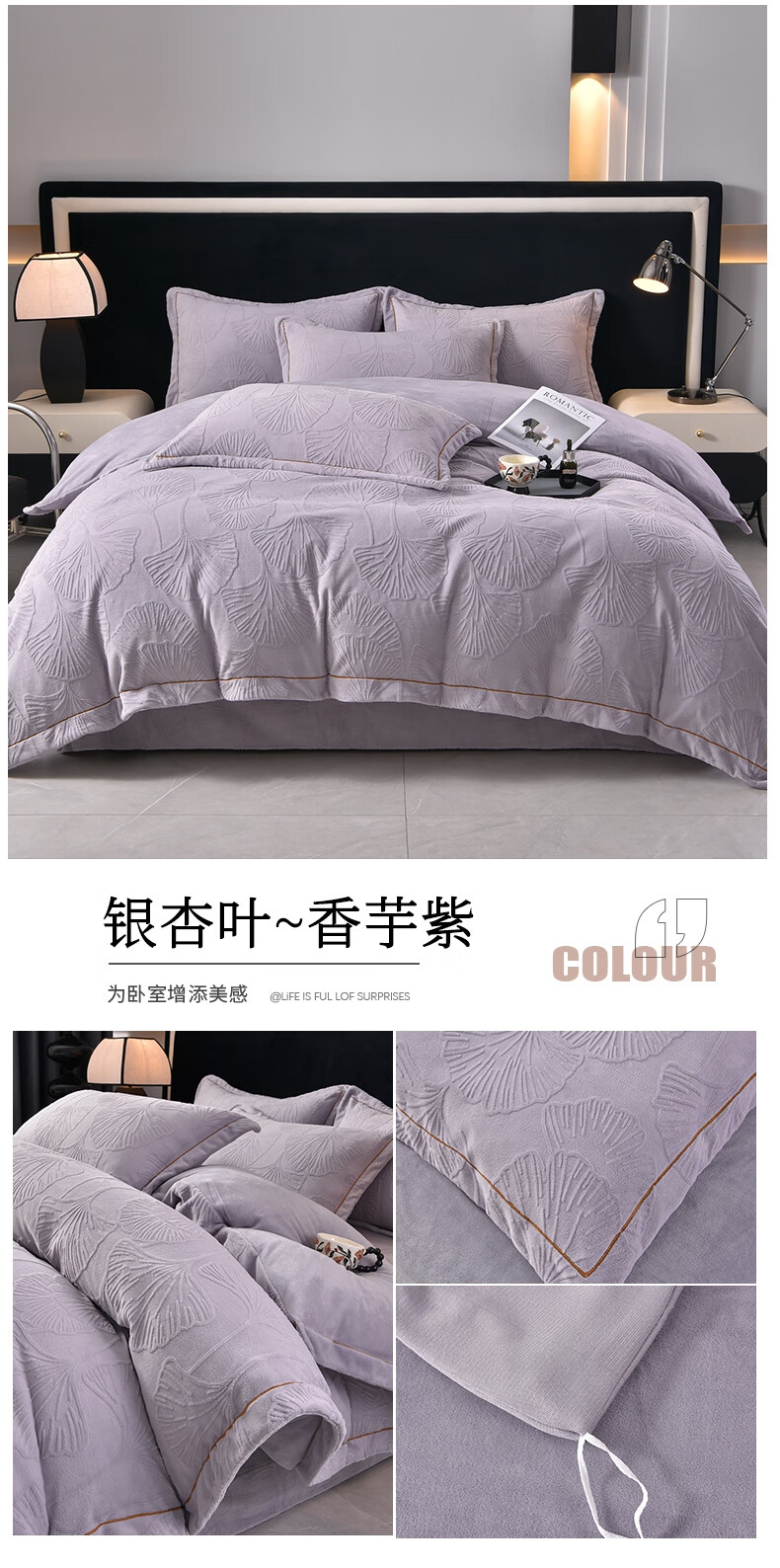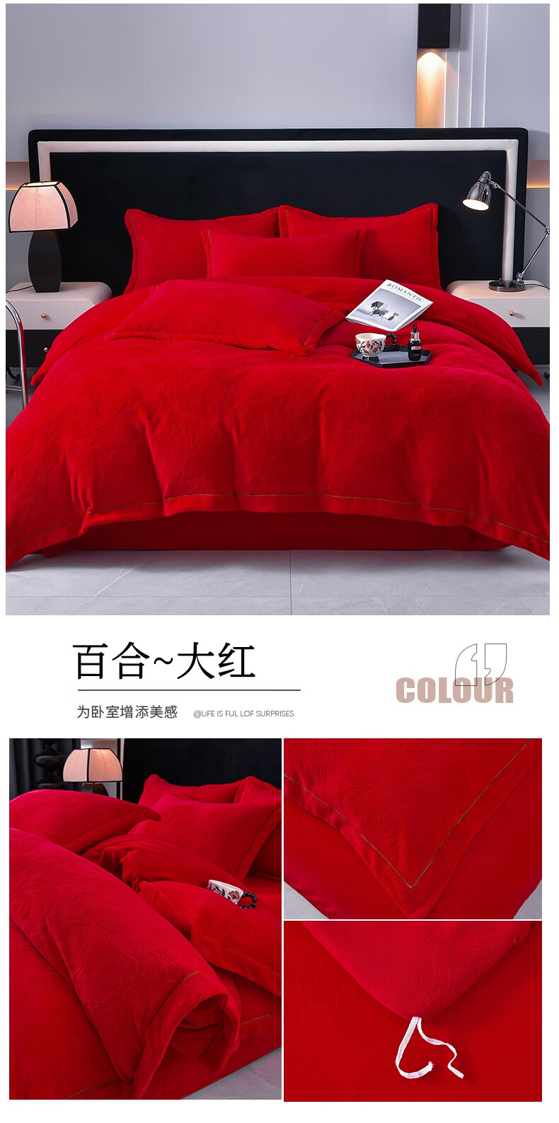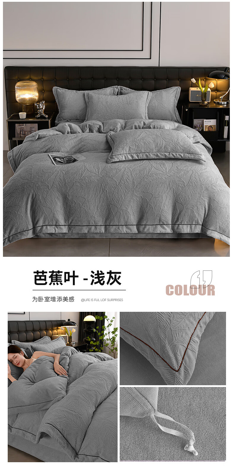 Mercury Series A Type Winter Thickened Carved Milk Four-piece Set Warm Coral Double-sided Velvet Plus Velvet Quilt Cover Sheet Bed Banana Leaf-Bean Green Antistatic + Thickened + No Shedding 1.8m Fitted Sheet Four-piece Set Antistatic + Thickened + No Shedding