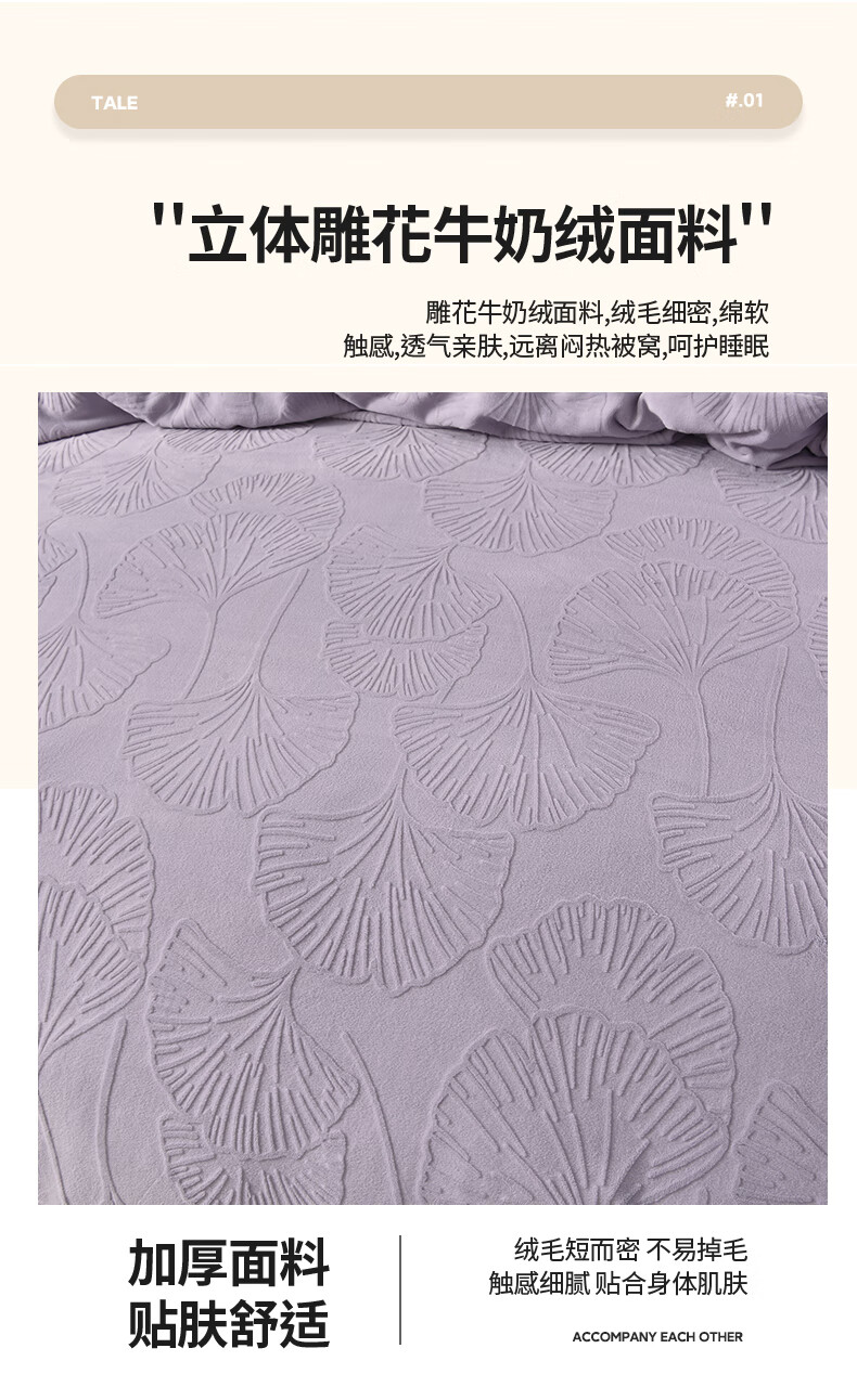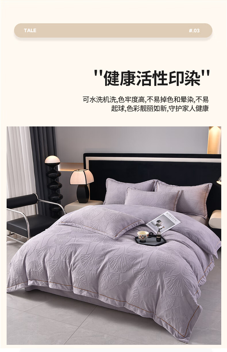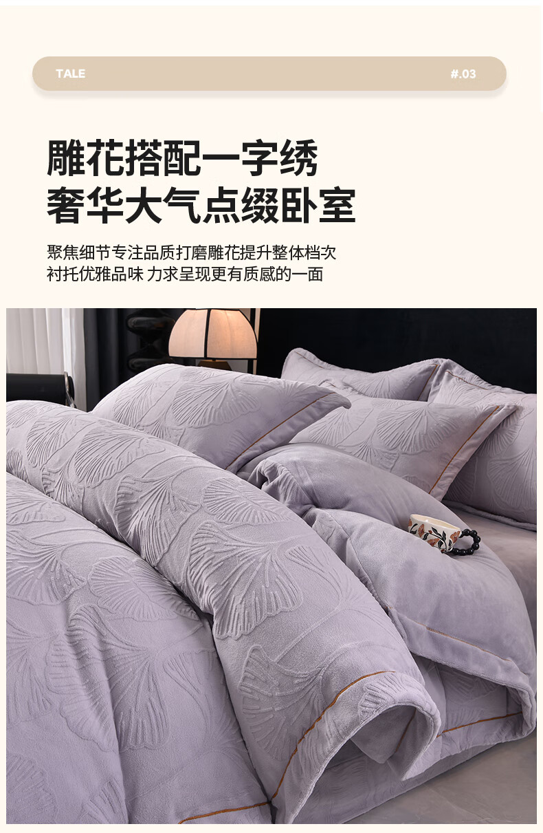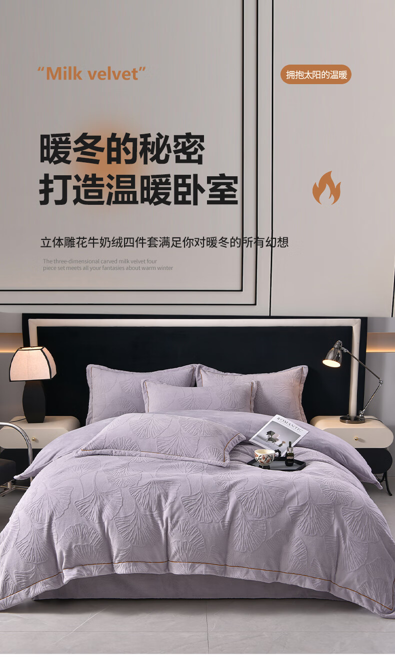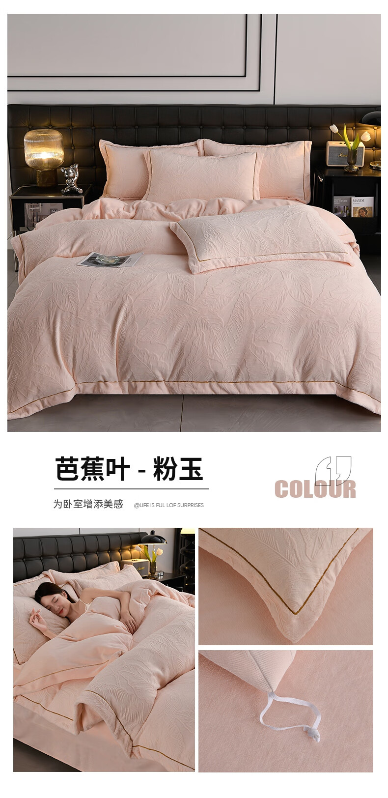 Mercury Series A Type Winter Thickened Carved Milk Four-piece Set Warm Coral Double-sided Velvet Plus Velvet Quilt Cover Sheet Bed Banana Leaf-Bean Green Antistatic + Thickened + No Shedding 1.8m Fitted Sheet Four-piece Set Antistatic + Thickened + No Shedding