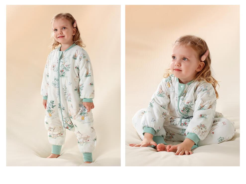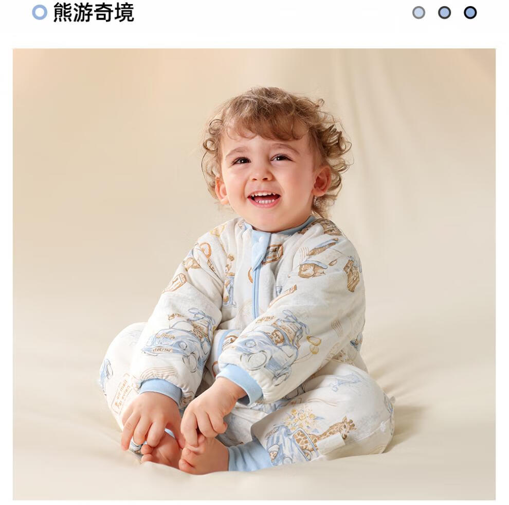 BETUS Autumn and Winter New Baby Split Leg Sleeping Bag All Seasons Anti-Kick Quilt Cat Belly Cotton Constant Temperature Spring and Autumn Double Layer Room Temperature 20-26 Bears in Wonderland M Size Suitable for Height 80-95cm Recommended Age 15 Months-2