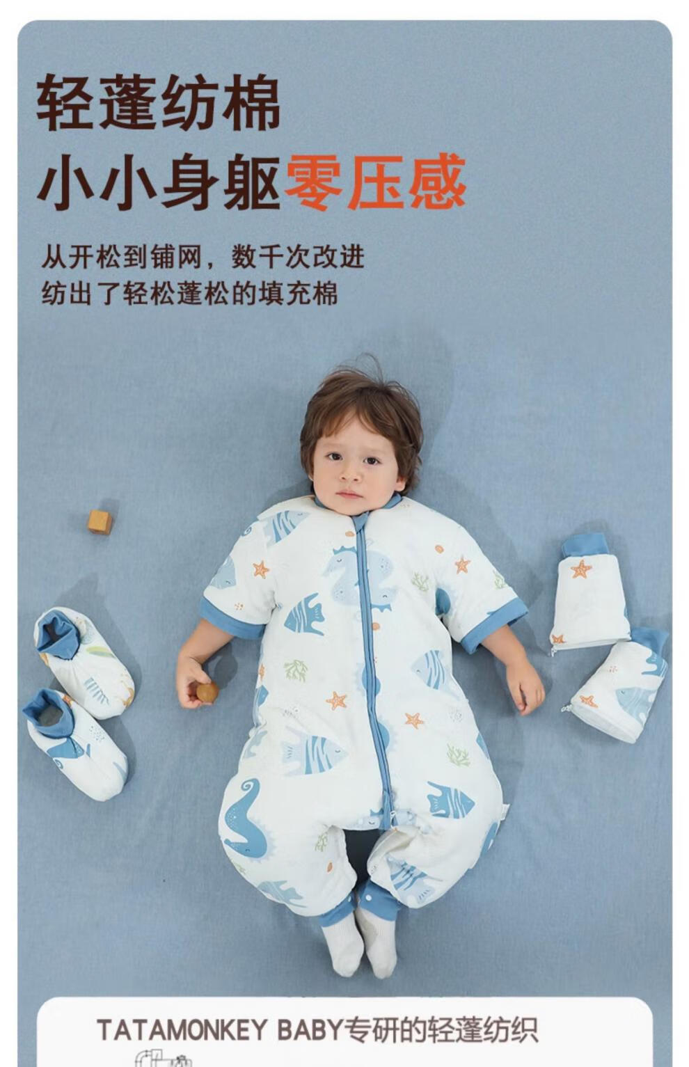 TATAMONKEY baby thermostatic sleeping bag, spring, autumn and winter split-leg anti-kicking quilt, visible constant temperature - autumn thin quilted footless cherry kitten, 15-20 degrees, 80 sizes (reference 65-85cm, half year old - 1 and a half years old)