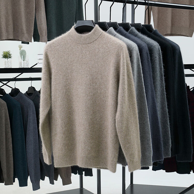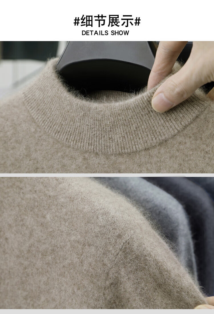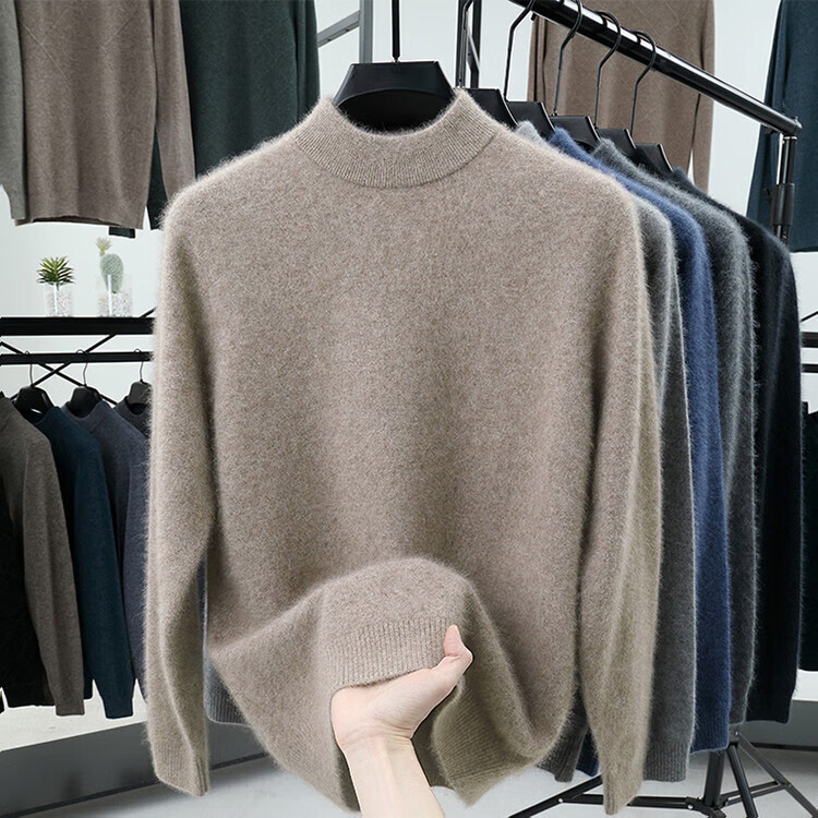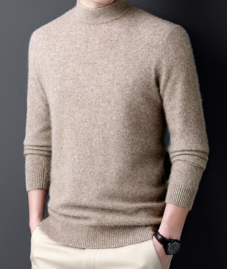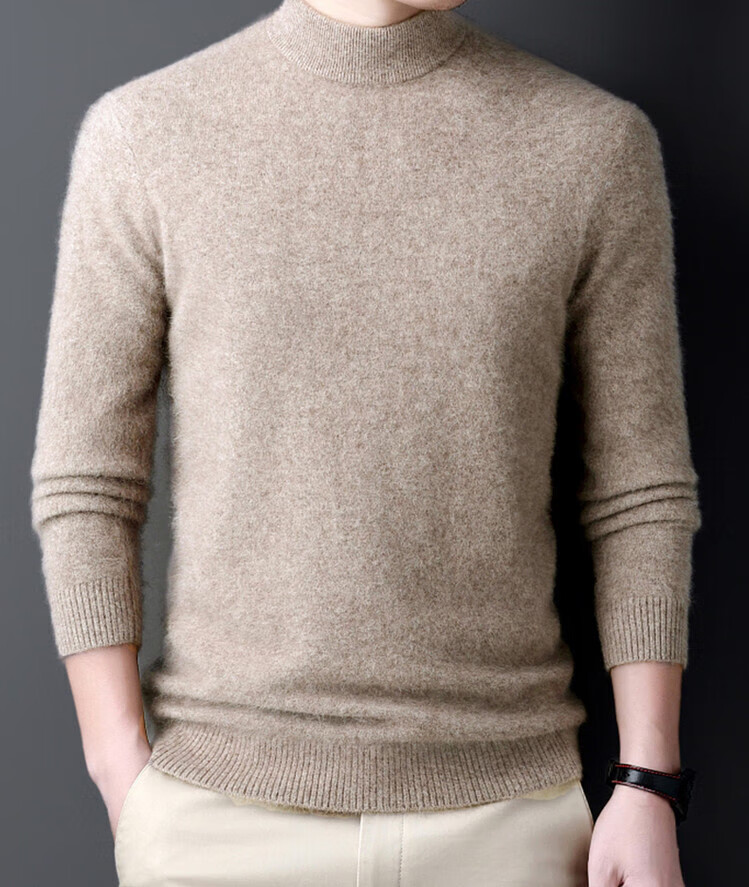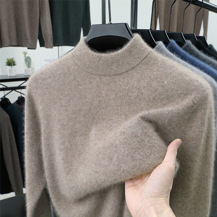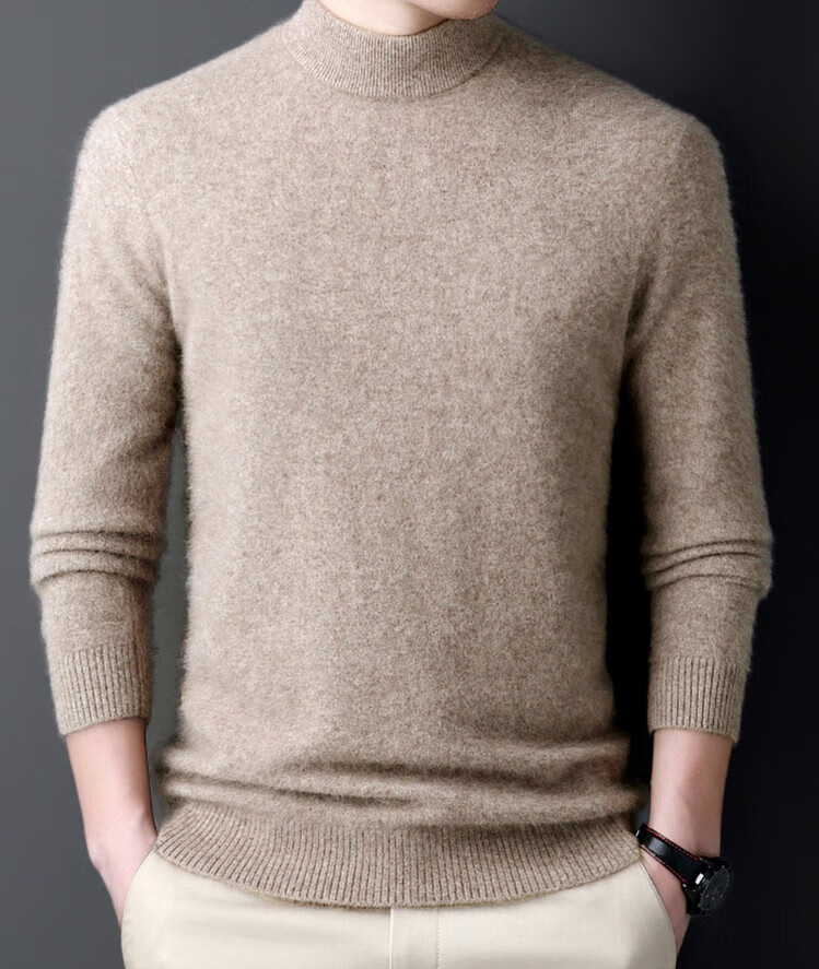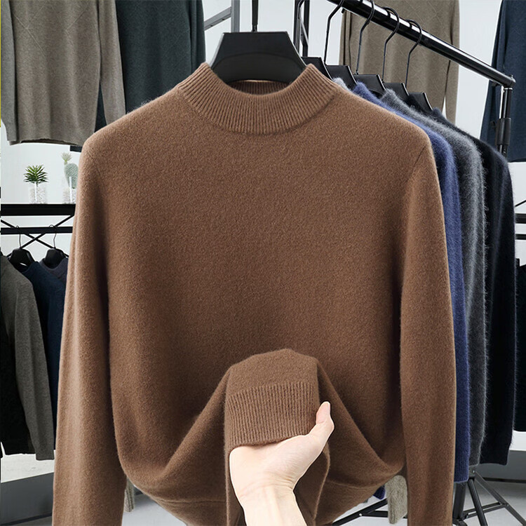Hengyuanxiang 100% pure wool sweater men's half turtleneck winter solid color simple casual thickened bottoming sweater pullover sweater camel L 175/88A