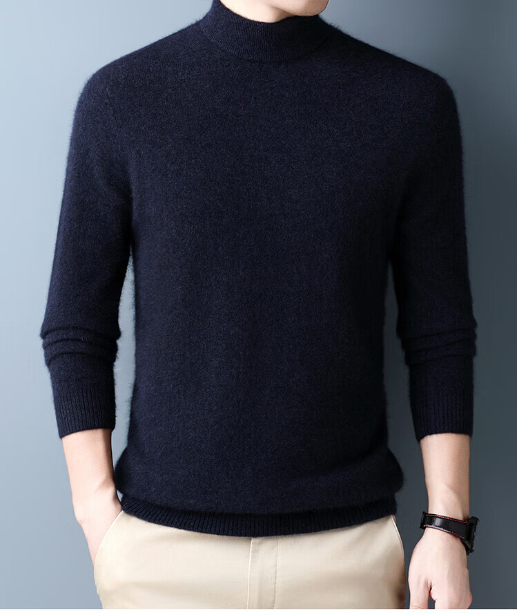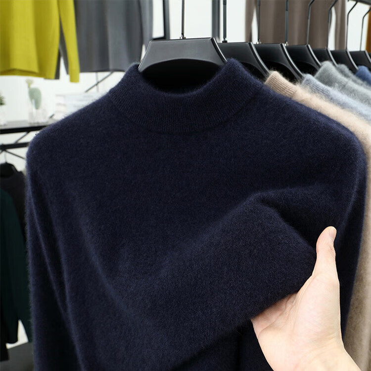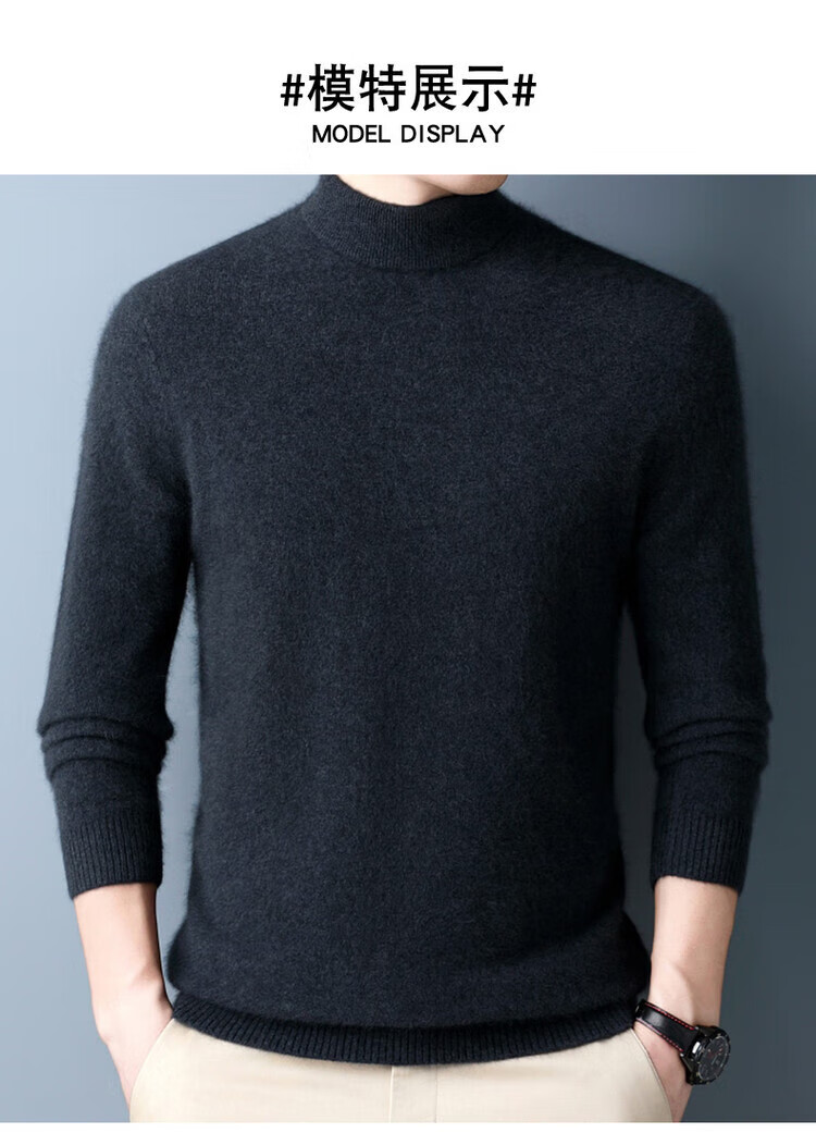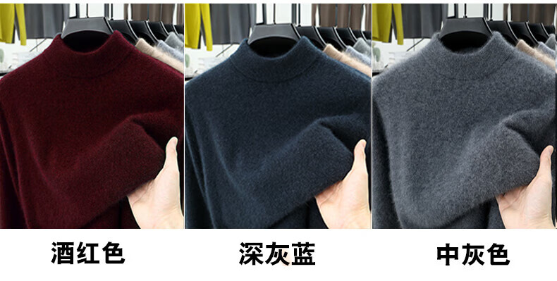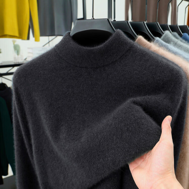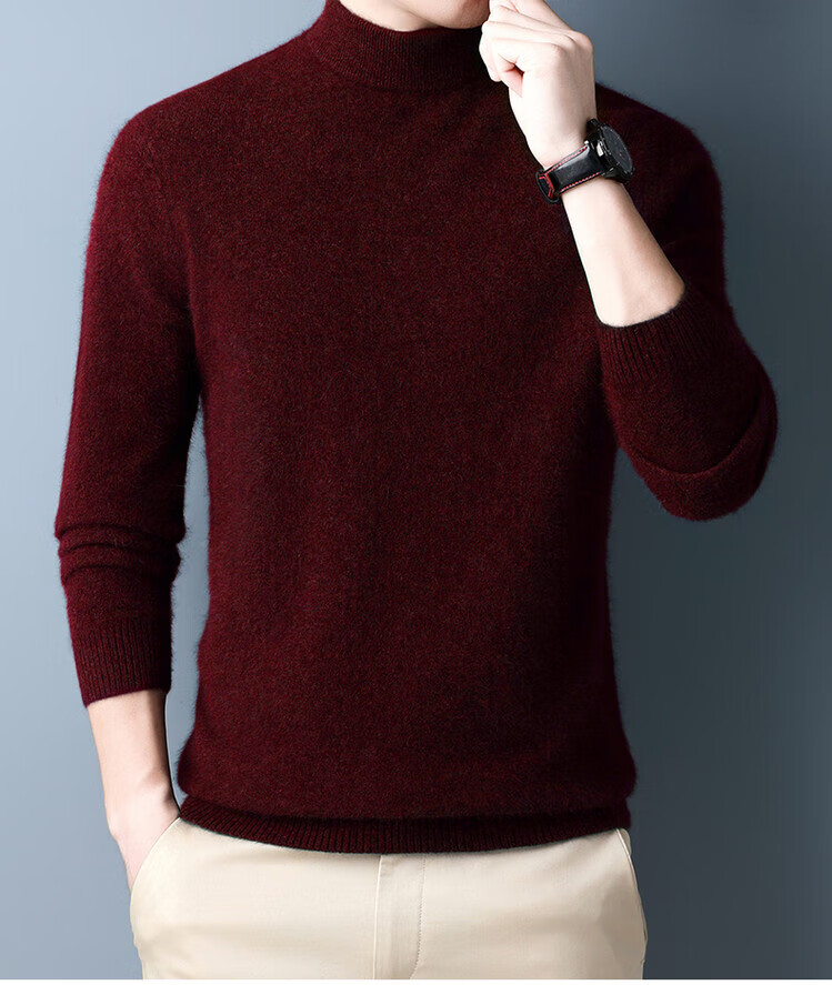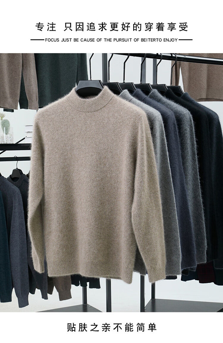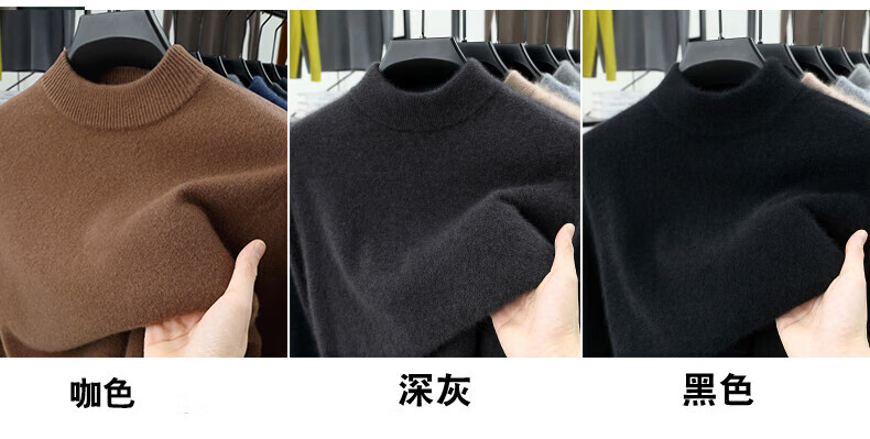 Hengyuanxiang 100% pure wool sweater men's half turtleneck winter solid color simple casual thickened bottoming sweater pullover sweater camel L 175/88A
