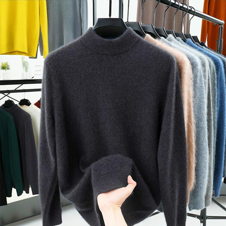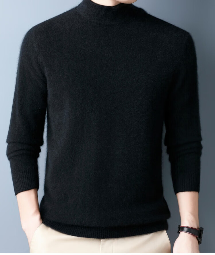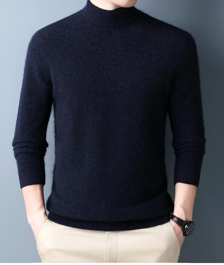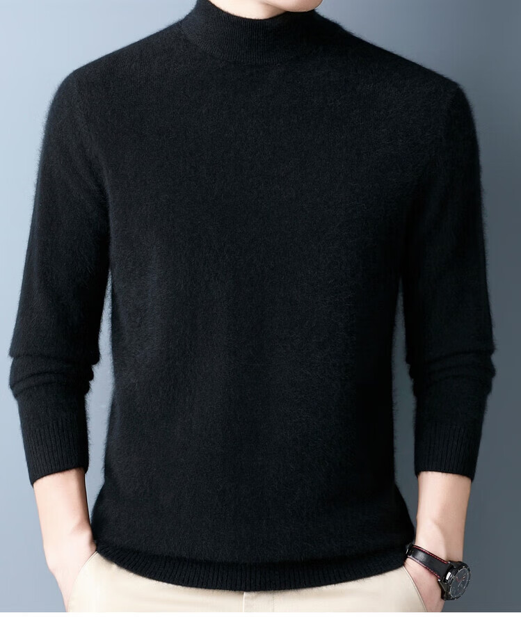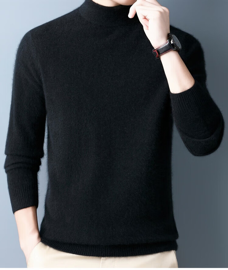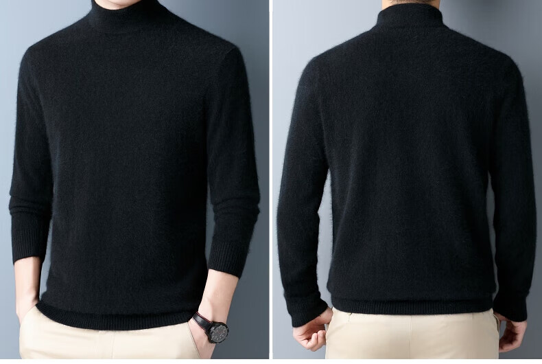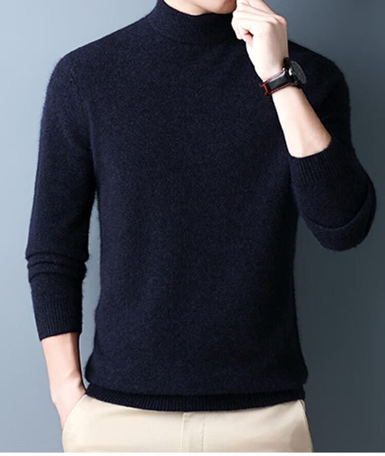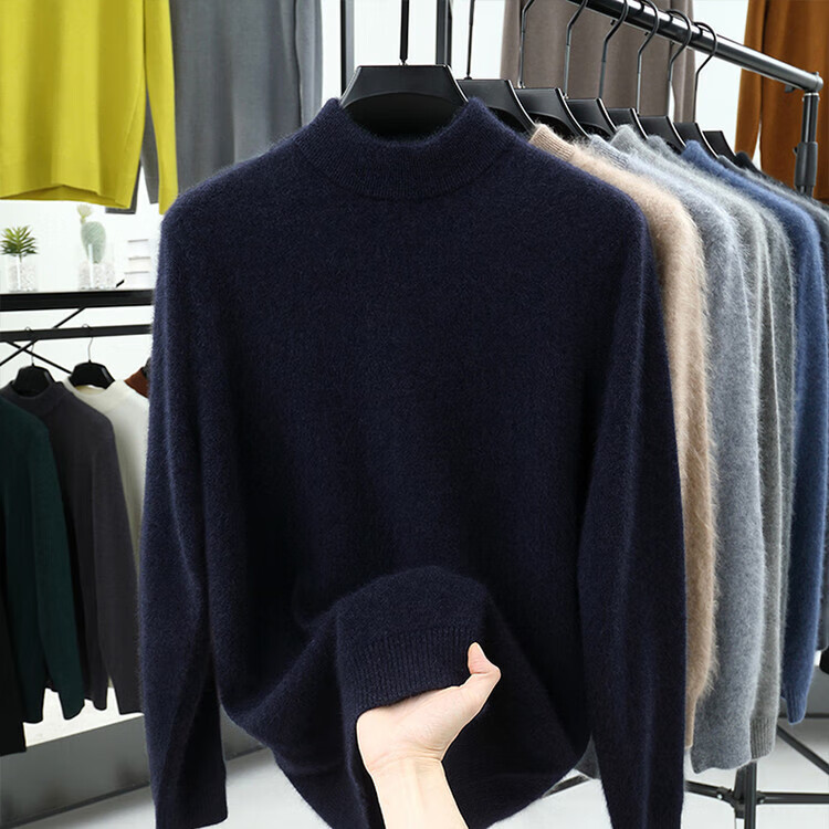 Hengyuanxiang 100% pure wool sweater men's half turtleneck winter solid color simple casual thickened bottoming sweater pullover sweater camel L 175/88A
