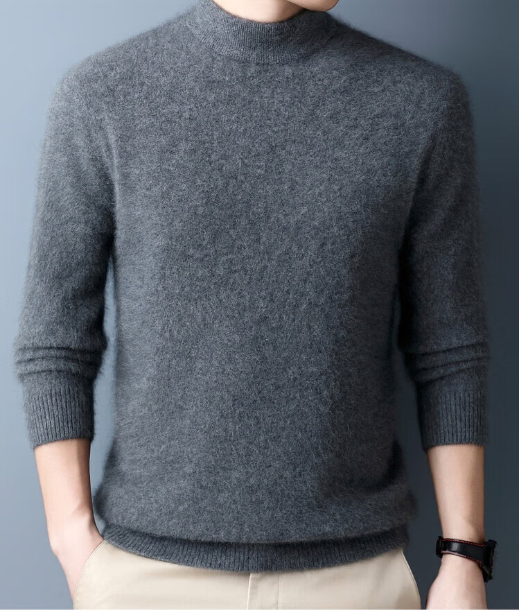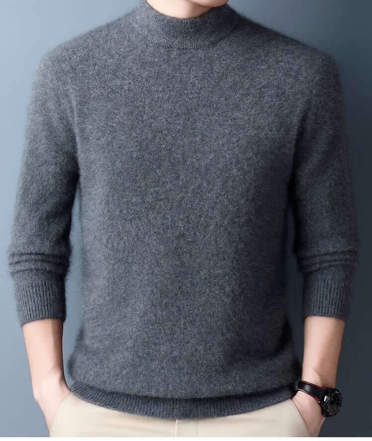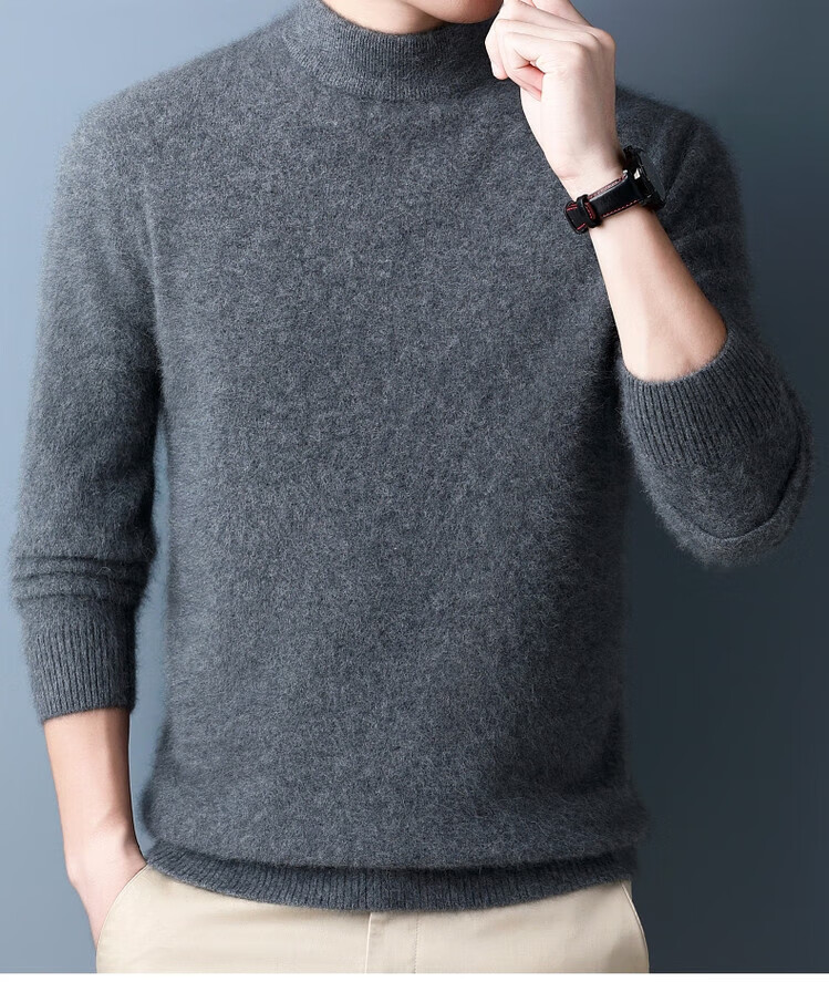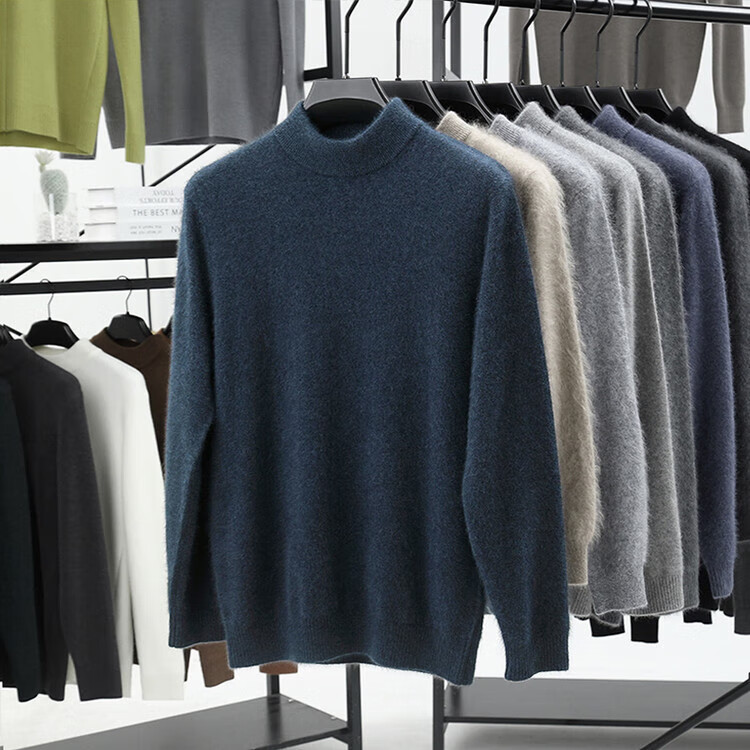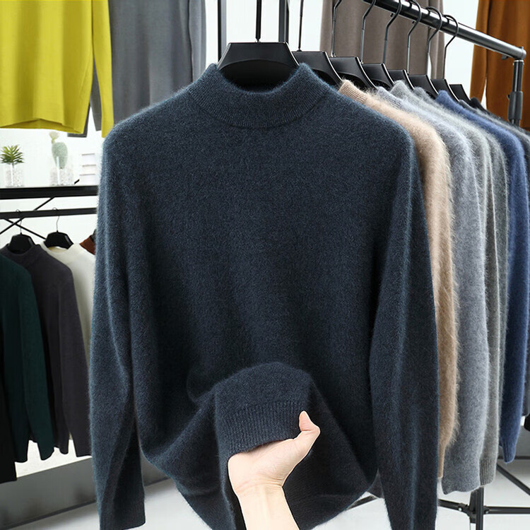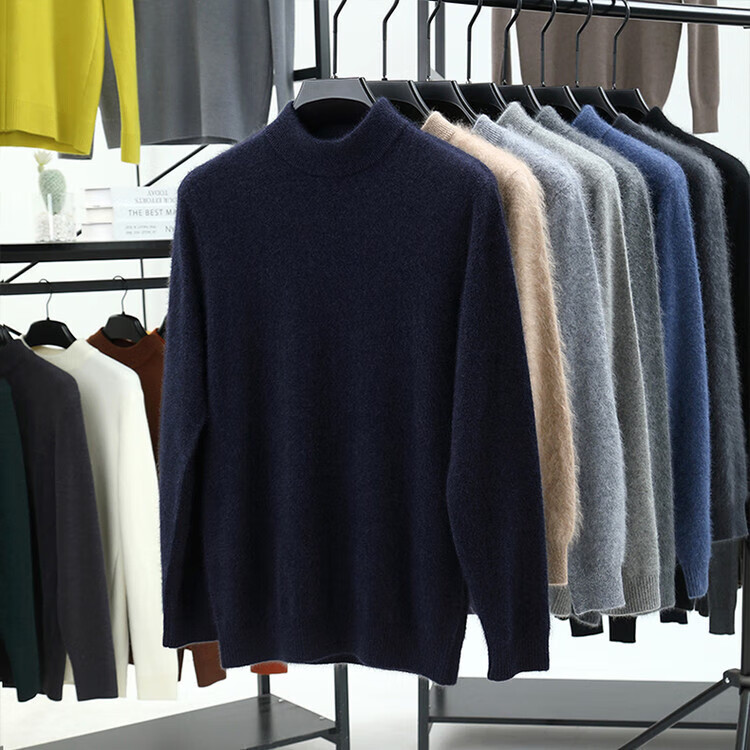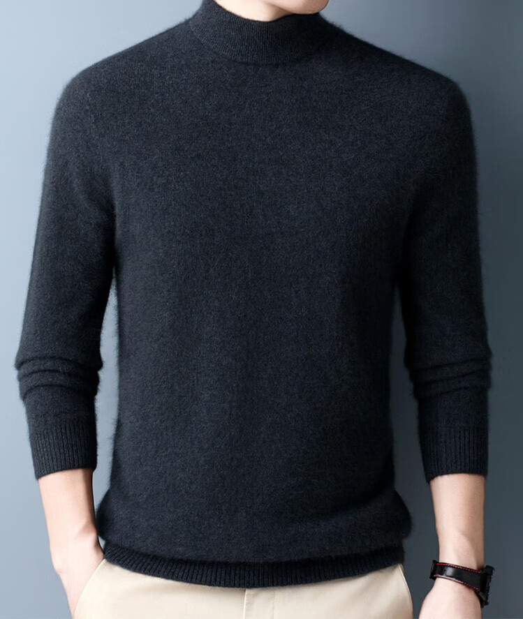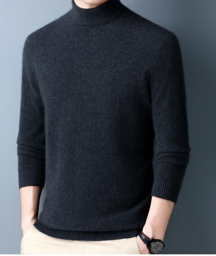 Hengyuanxiang 100% pure wool sweater men's half turtleneck winter solid color simple casual thickened bottoming sweater pullover sweater camel L 175/88A