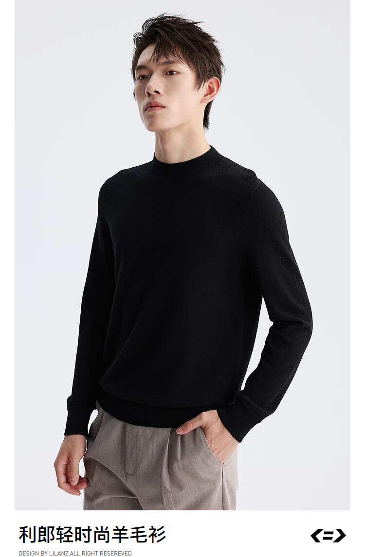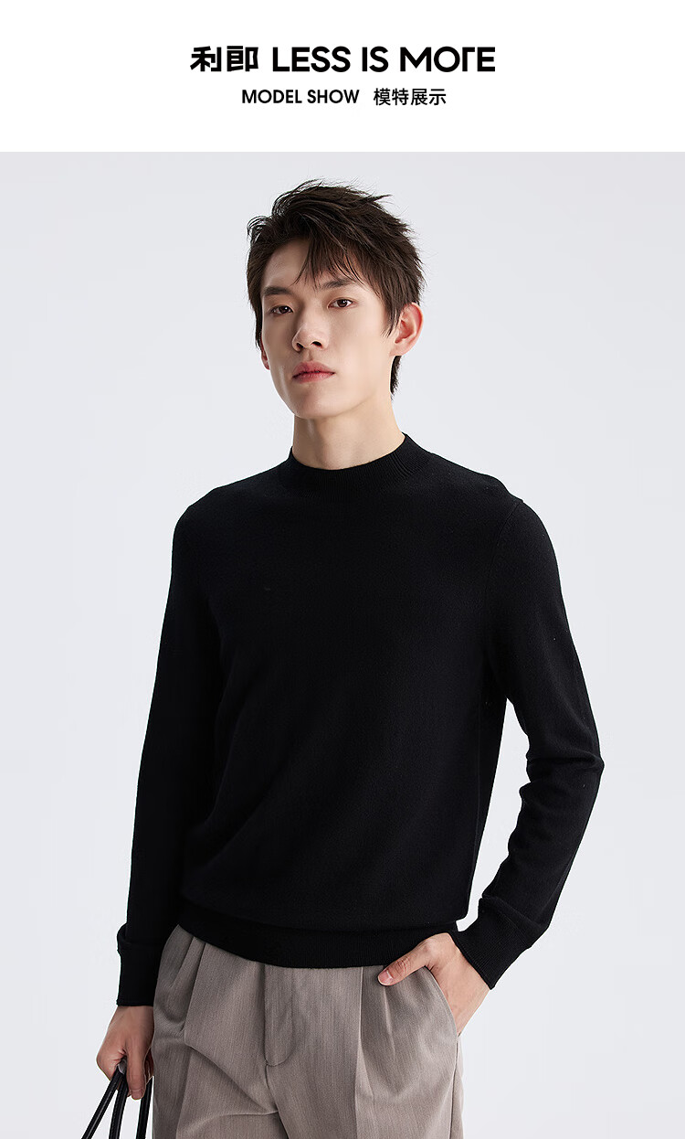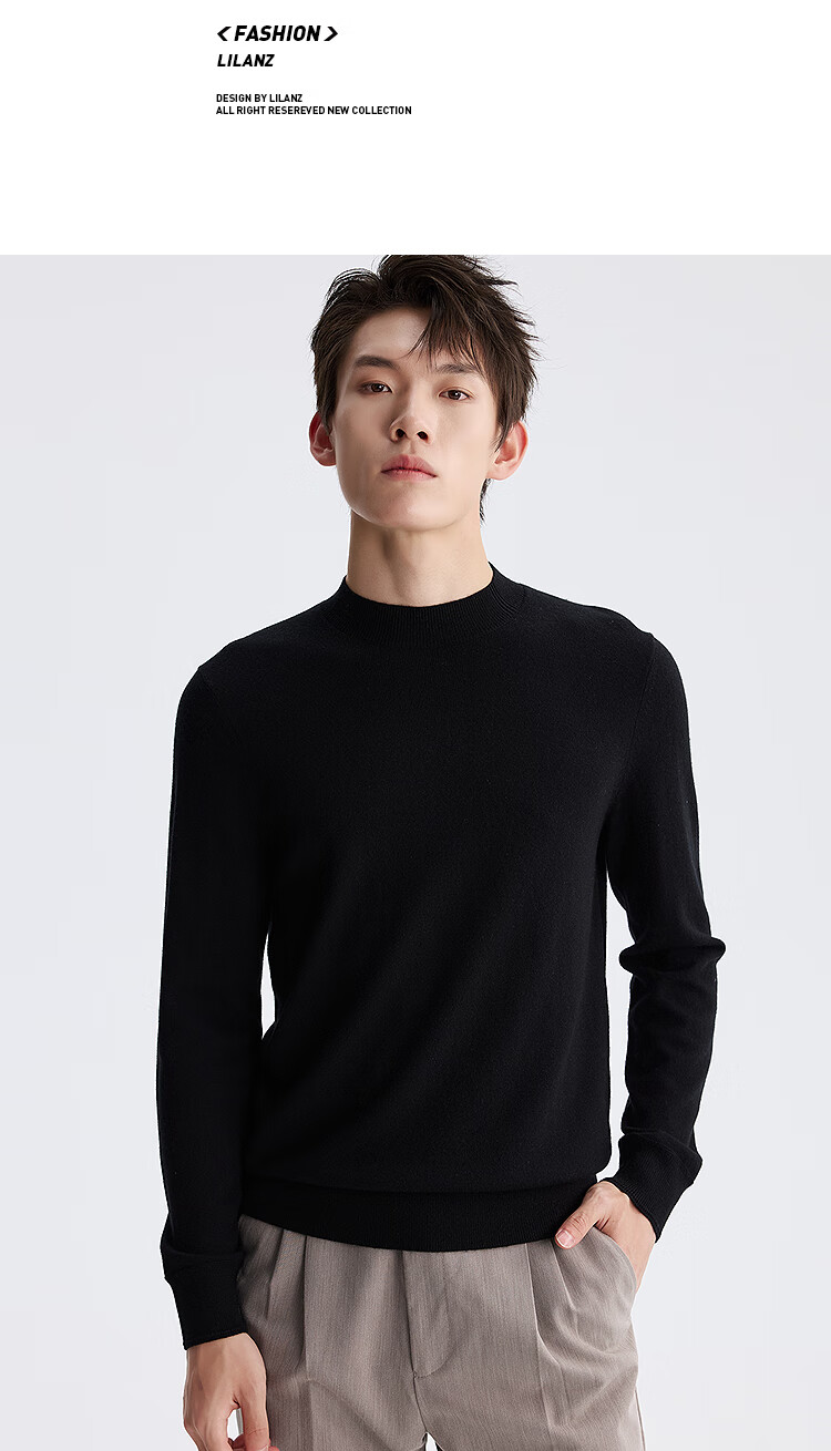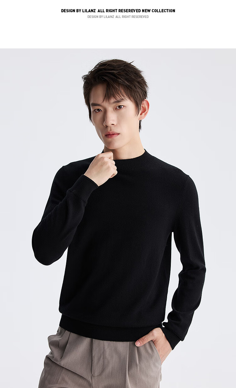 Lilan Light Fashion Men's Cashmere Blended Cardigan Sweater Men's Half Turtle Collar Solid Color Warm Long Sleeve Knitted Sweater Black (1Y) 2XL (180)