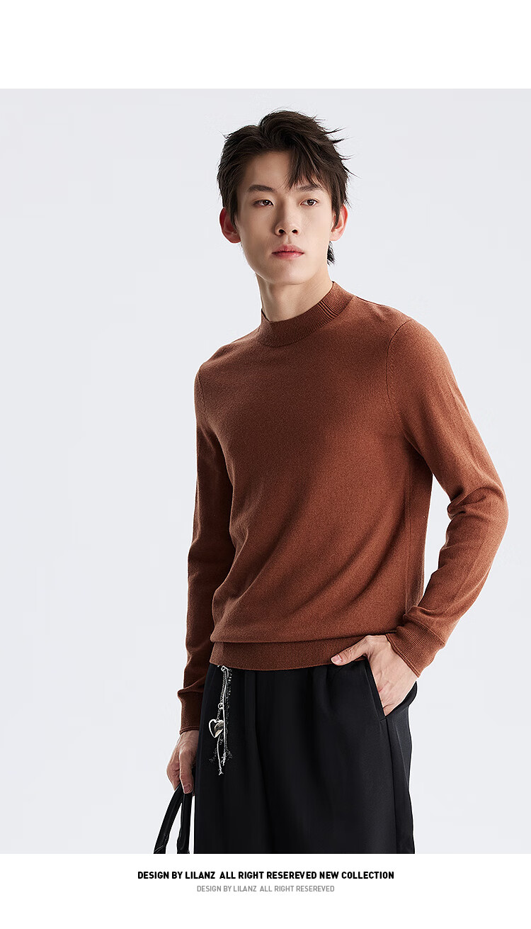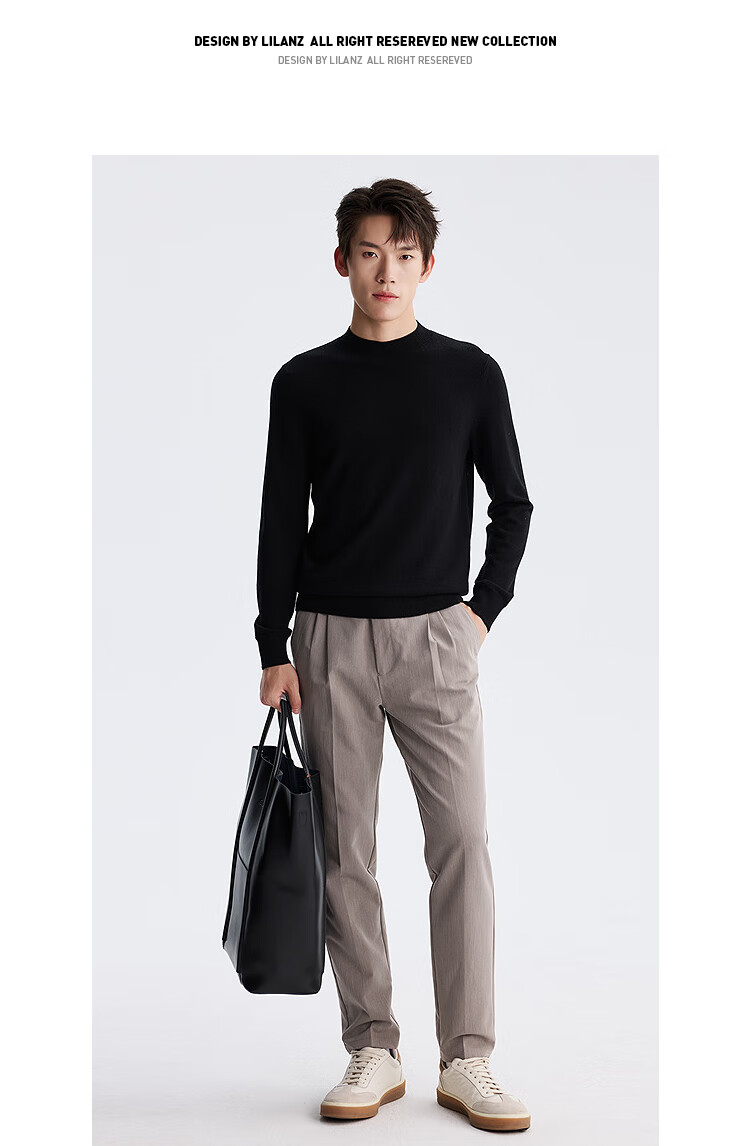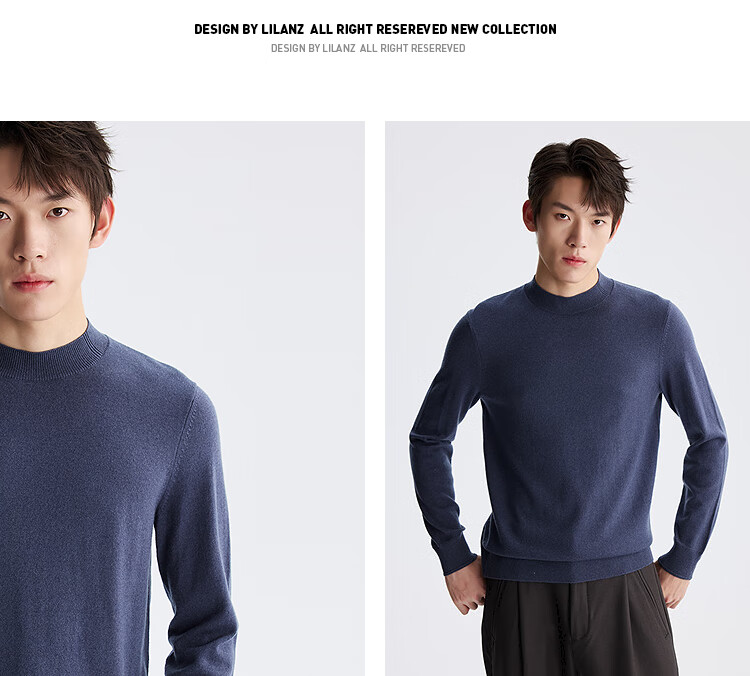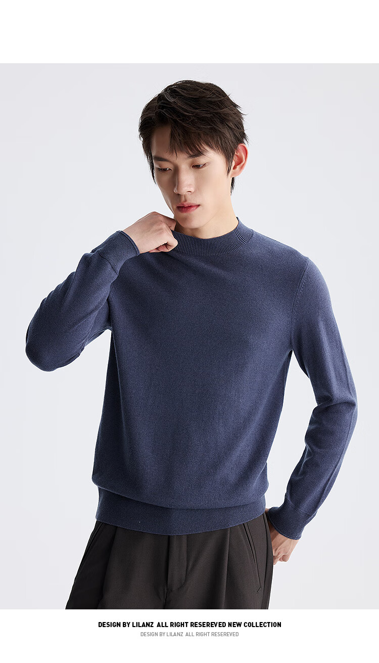 Lilan Light Fashion Men's Cashmere Blended Cardigan Sweater Men's Half Turtle Collar Solid Color Warm Long Sleeve Knitted Sweater Black (1Y) 2XL (180)