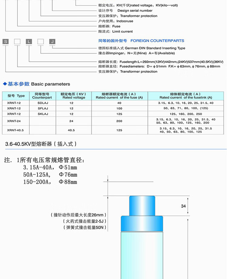 SDLAJ/XRNT1-35-40.5KV/3.15A-40A high breaking capacity high voltage fuse fuse 31.5A