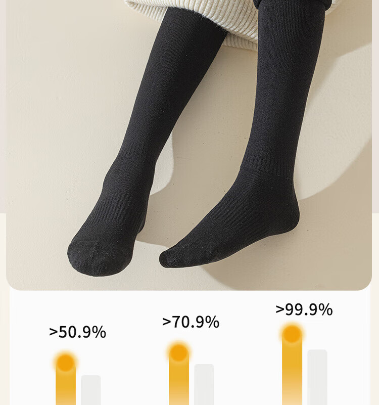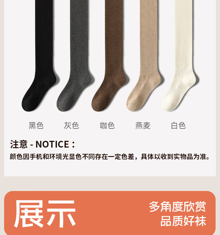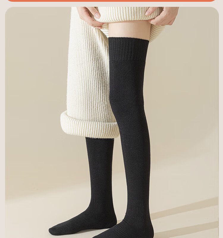 Urban Beauty Over-the-Knee Socks Long Socks Women's Autumn and Winter Velvet Thickened Warm Thigh Socks Long Legs Pure Cotton Extended Height Plus Velvet Thickened 2 Black M One Size (34-40) Can Wear Up to 85-100c