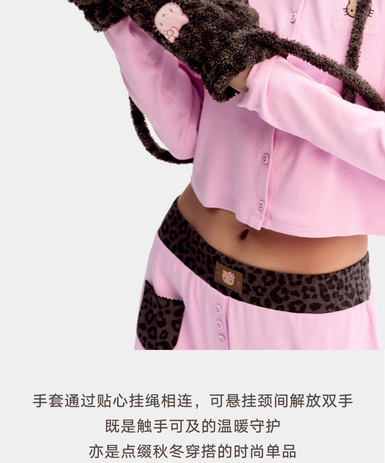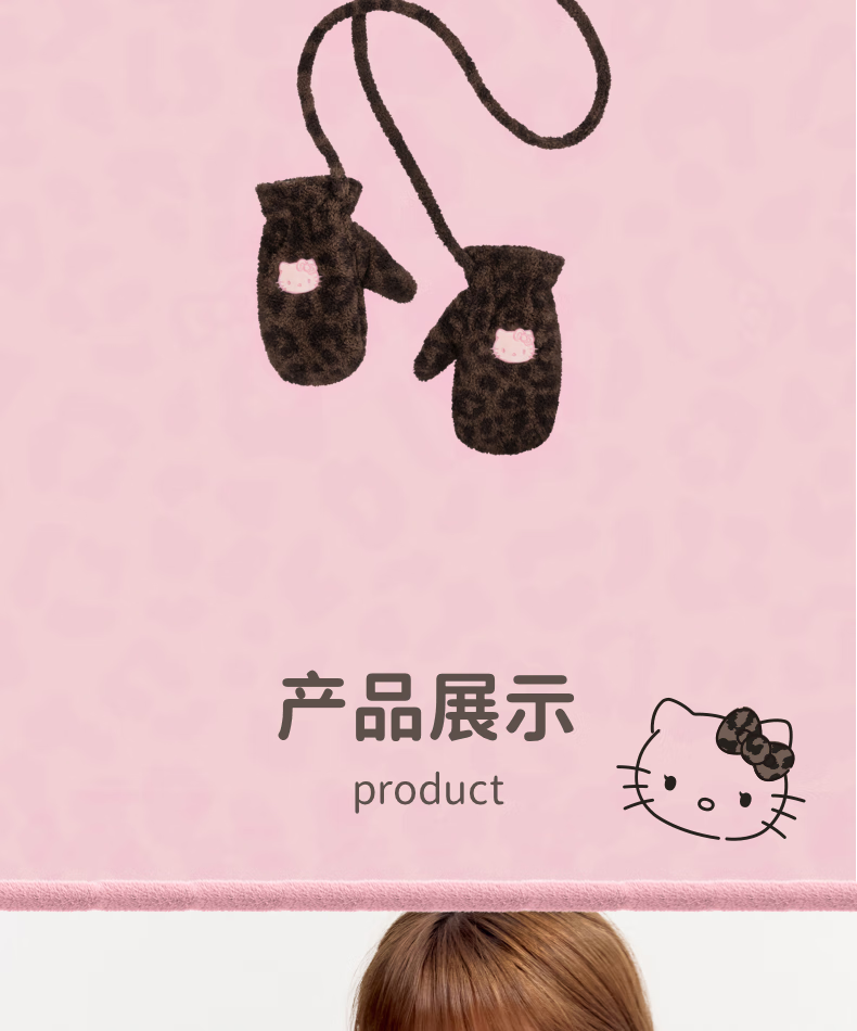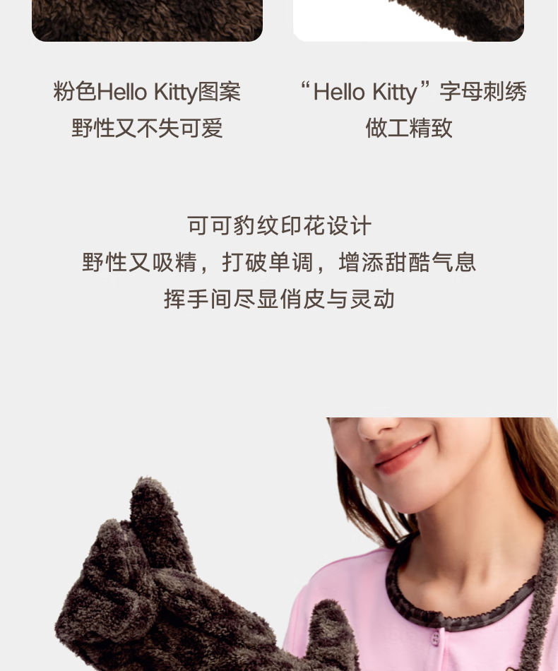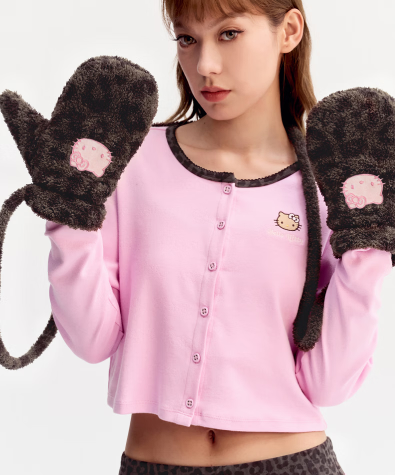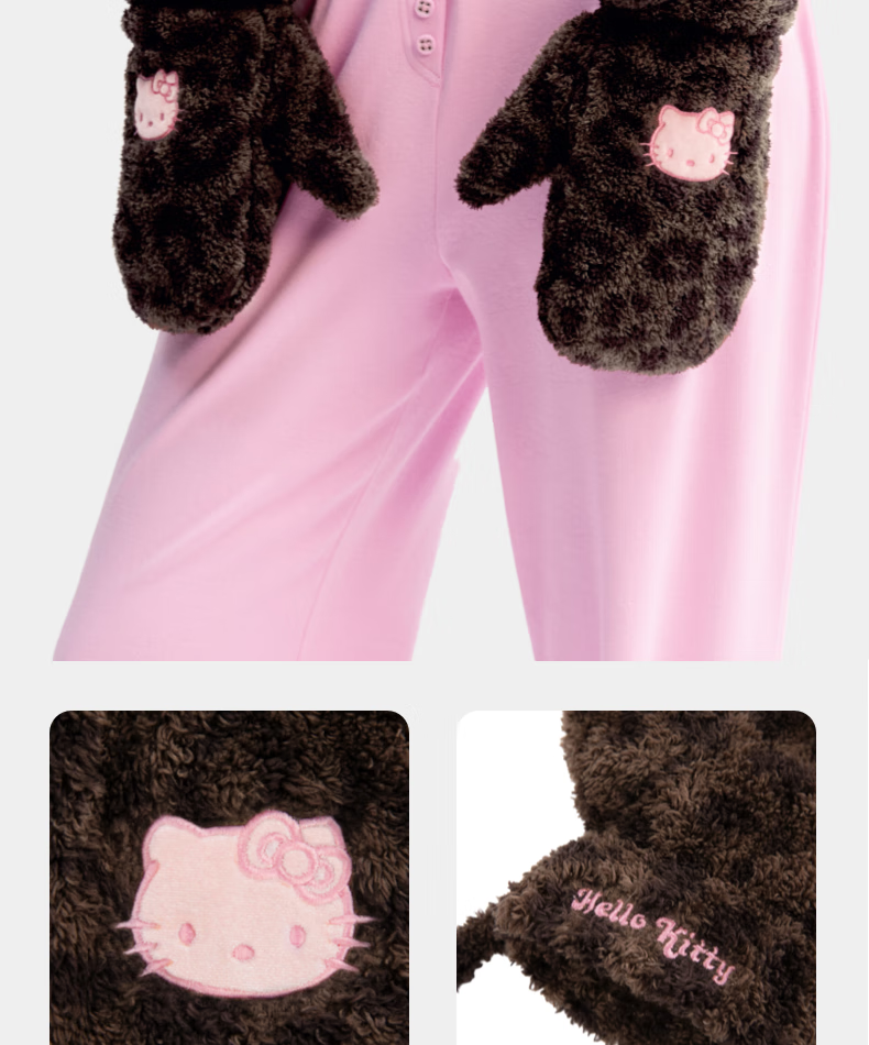 Brutalist Home (tbh) Hello Kitty Plush Gloves Winter Thickened Warm Windproof Gloves for Women Hello Kitty Plush Gloves - Coco Leopard Print