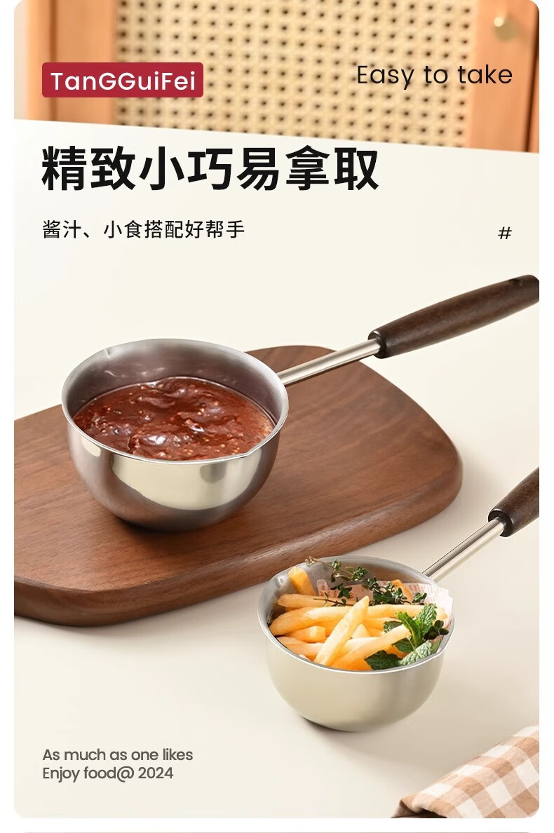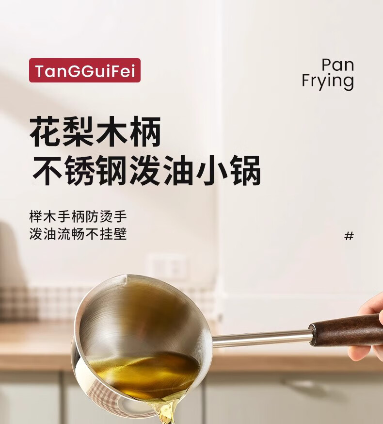 Stainless steel oil-burning oil-pressing oil-burning mini oil-soaking pan kitchen oil-splashing small pot household hot oil special artifact food grade 500ML gold thickened extended anti-scald 12cm