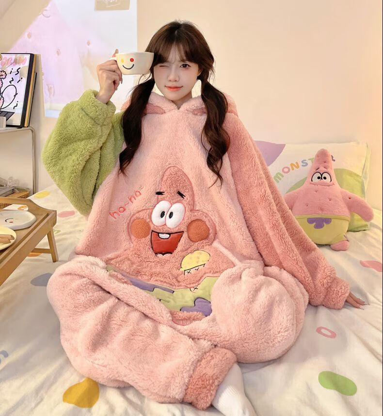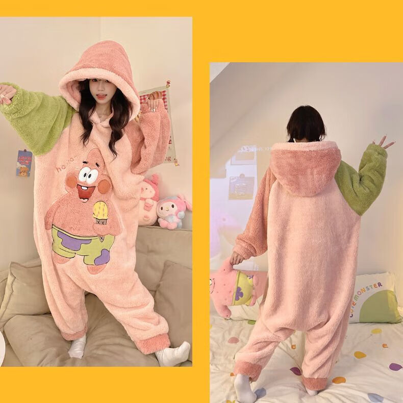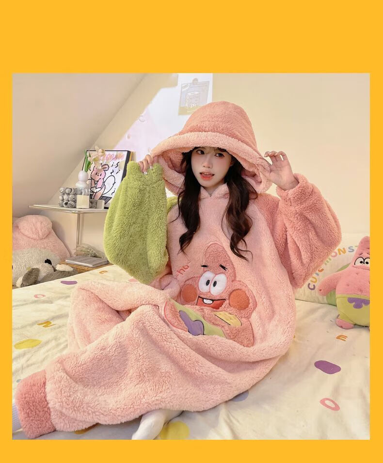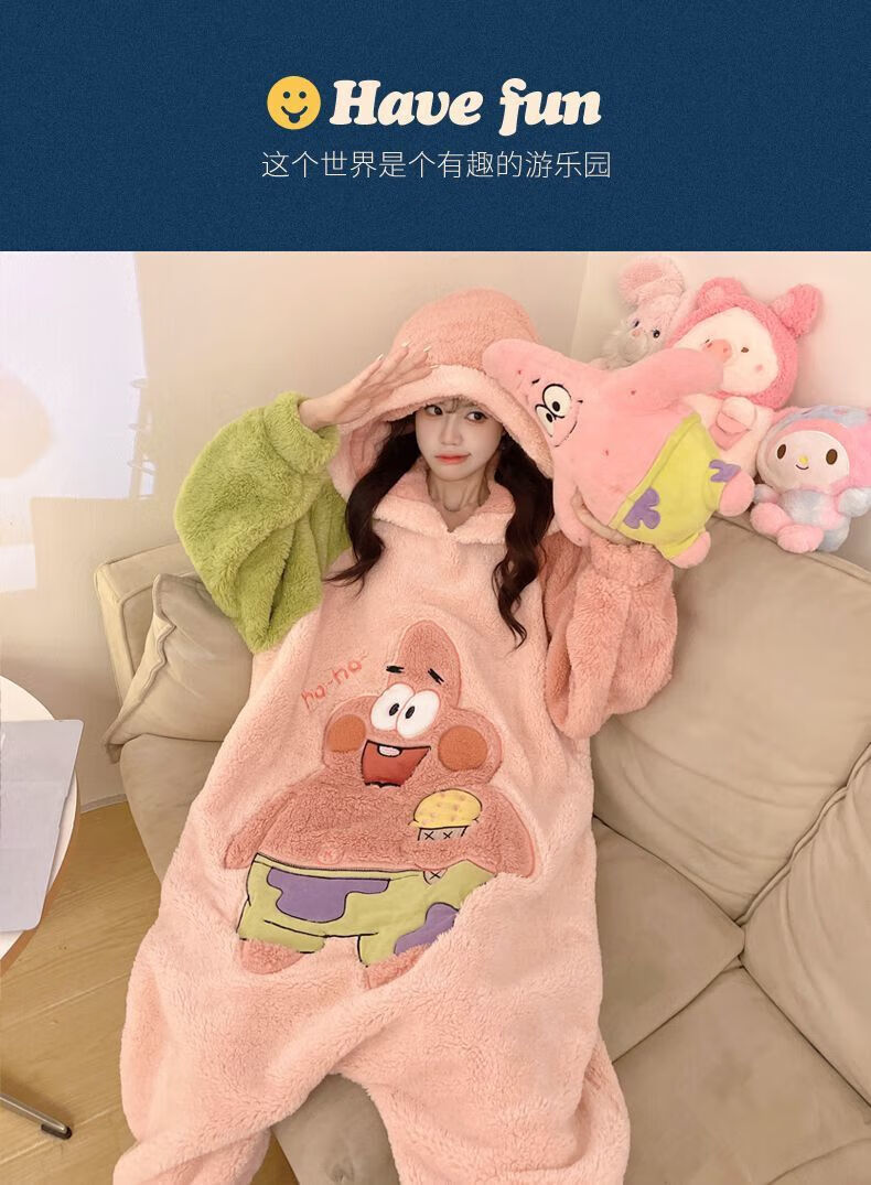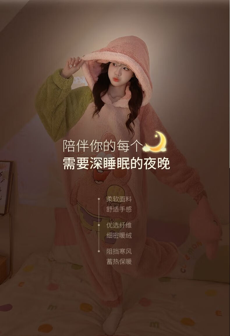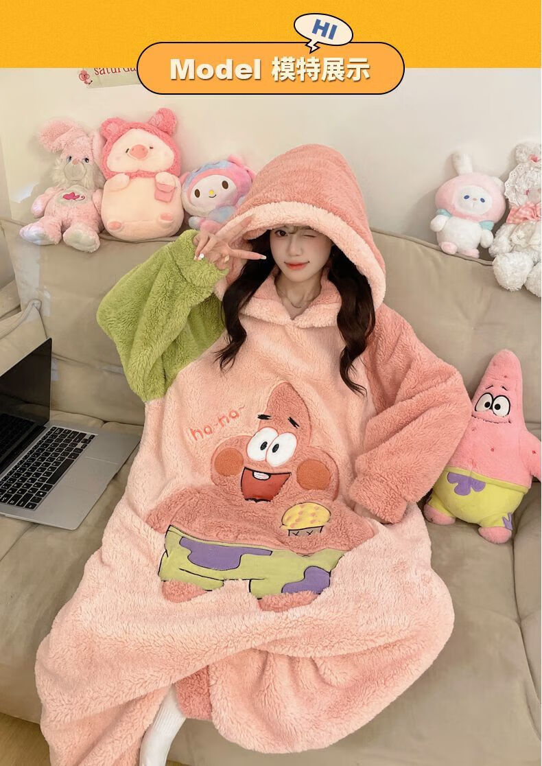 Sweet Fish Pie Big Star Hooded Nightgown 2025 Winter Girls Cartoon Coral Fleece One-piece Women's Plush Thickened Plush Home One-piece Fleece MQ 5412 Pie Big Star S Height 143-153 Weight 70-85 Jin Jin is equal to 0.5 kg