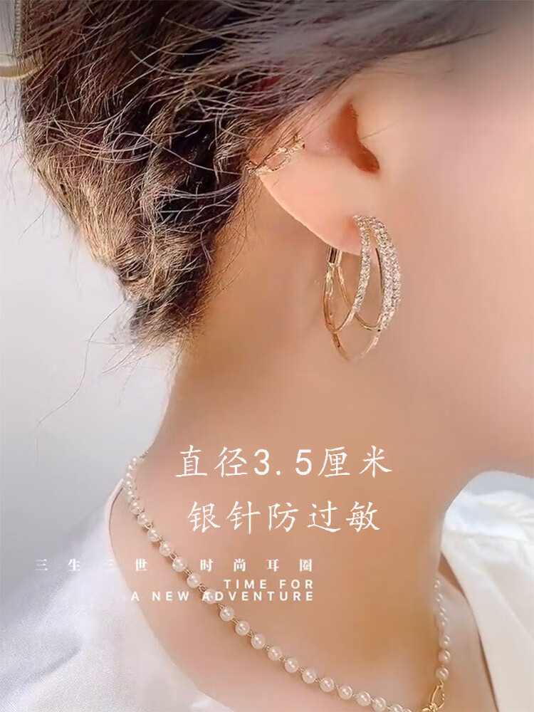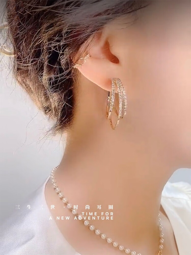 DAVA Outlet Price 18K Gold Three Lives Three Worlds Diamond Earrings High-end Earrings Earrings Earrings Earrings Earrings for Women 251 Three Lives Three Worlds Diamond Earrings