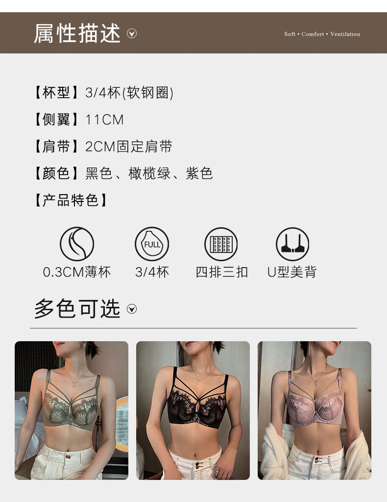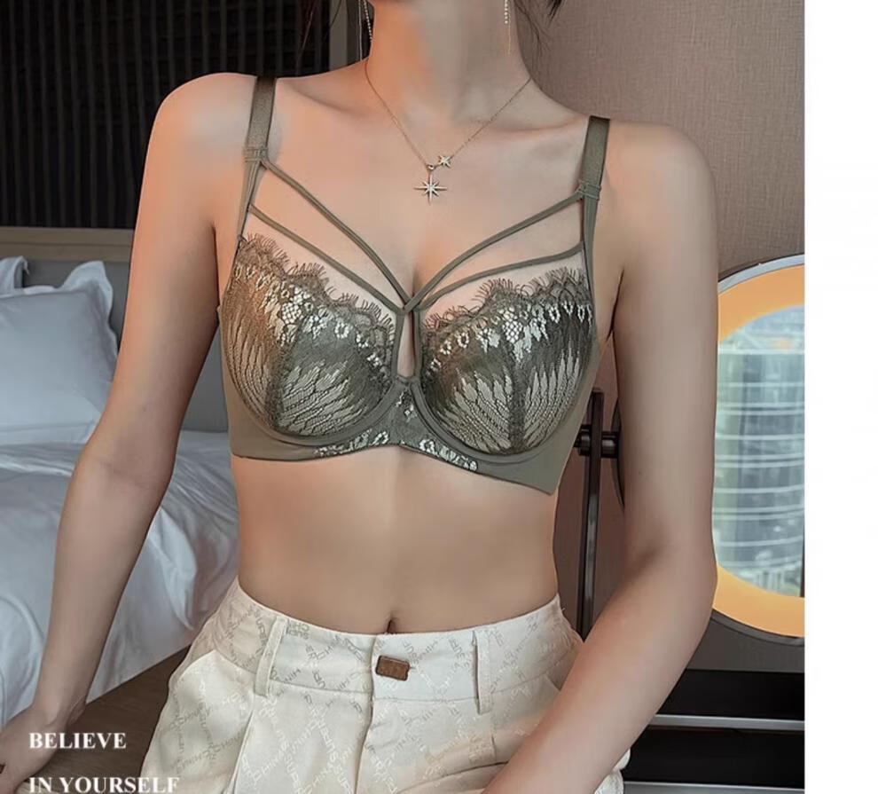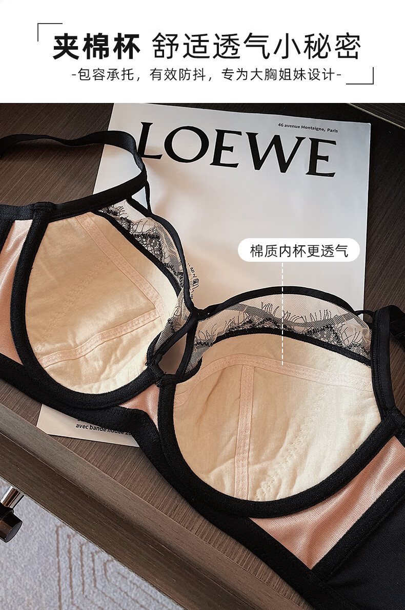Adore Autumn and Summer Zodiac Year Lace Underwear for Women with Big Breasts Showing Smaller Soft Wire Rings Adjustable Breast Retraction and Anti-sagging Expansion Bra Set Burgundy (Set) 75B 34