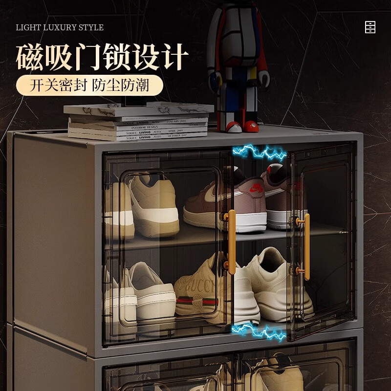 He Jiagong Shoe Box Storage Box Transparent Shoe Storage Artifact Shoe Cabinet Home Door Plastic Shoe Rack Imitation Acrylic Shoe Wall New Thickened 1 Column 10 Layers 20 Grids - Gray (Bottom Storage Boots)