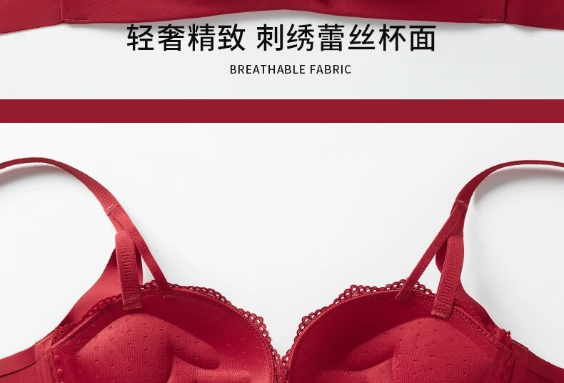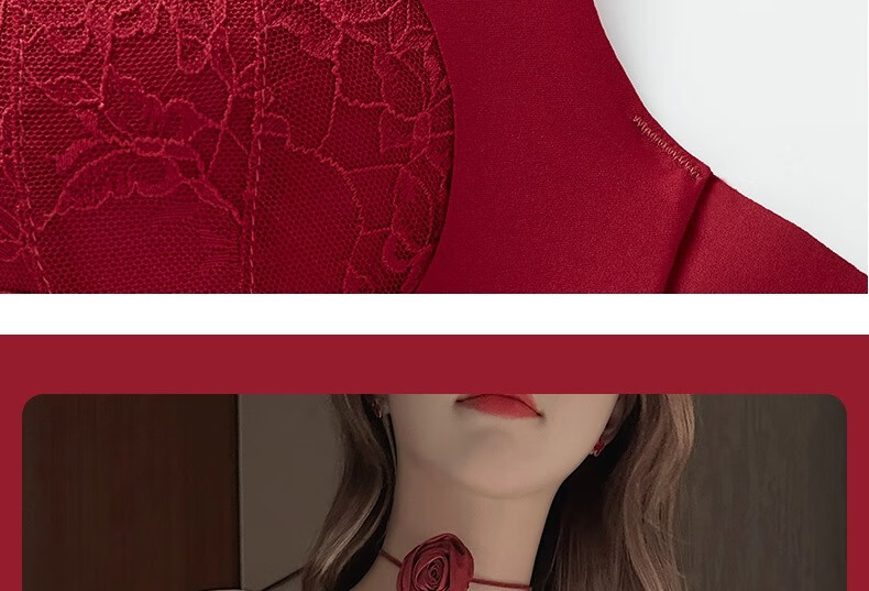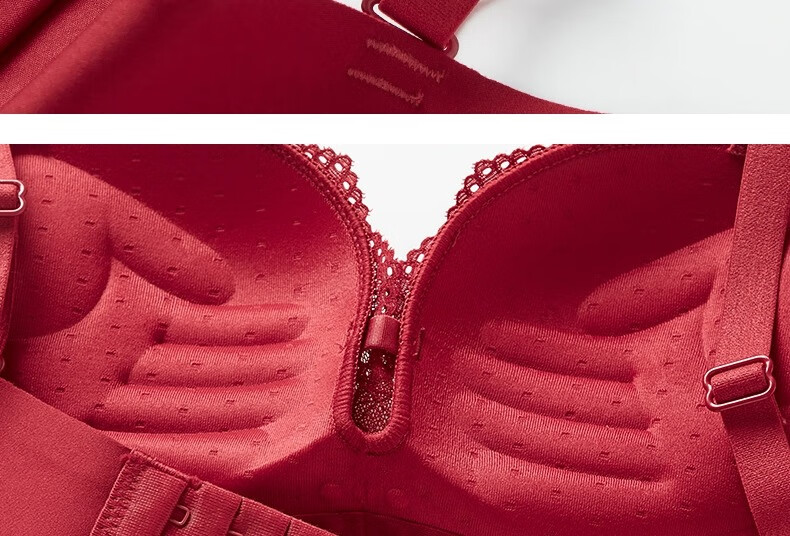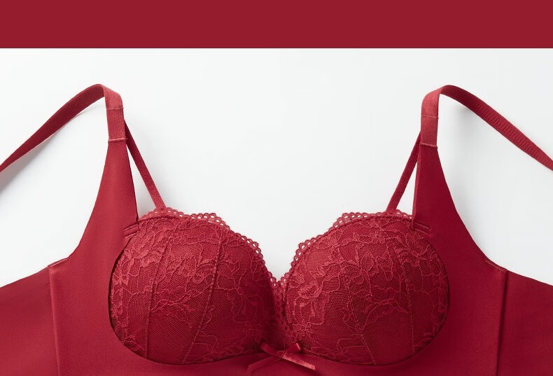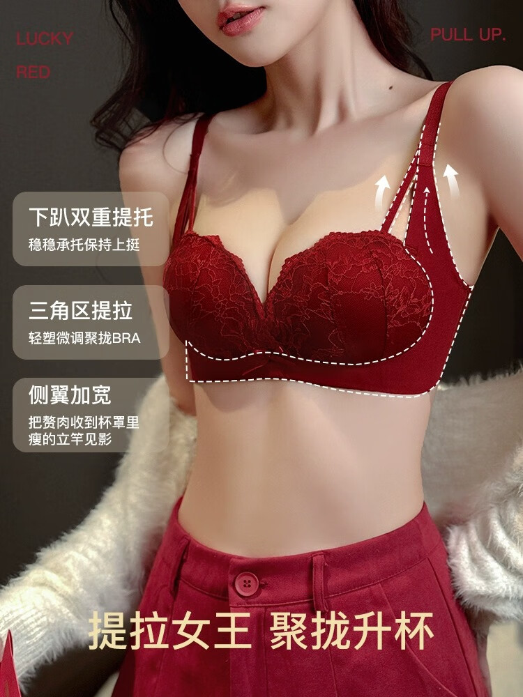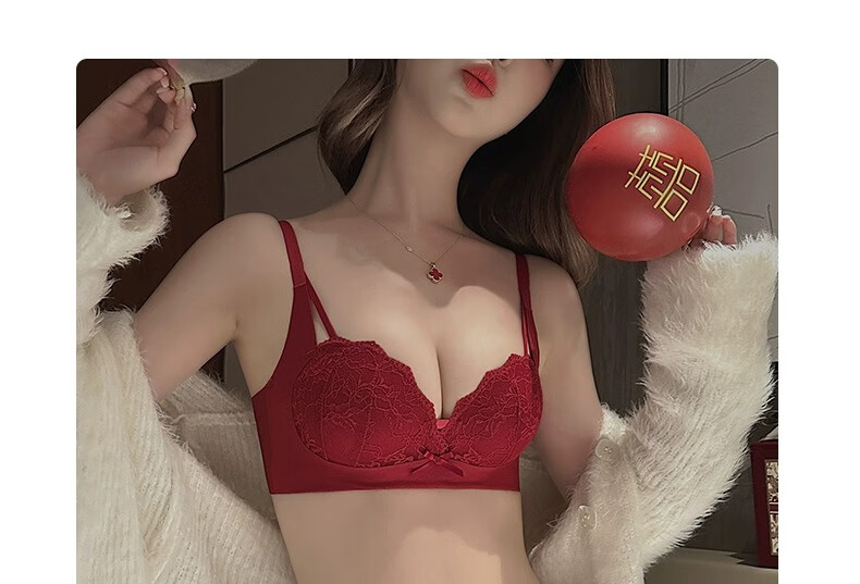 Adoring Autumn and Summer Zodiac Horse Red Underwear Small Breasts Gathered to Make Big Women Wedding Bride Underwear Sexy Lace Bra Set Wine Red Set 75B 75/34B