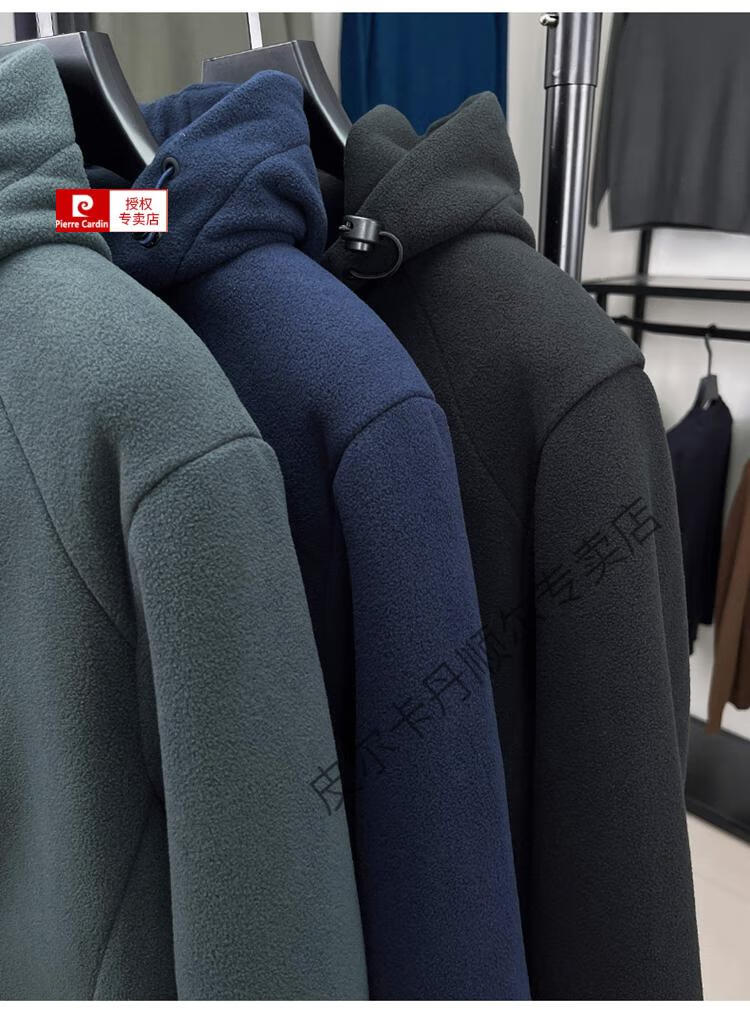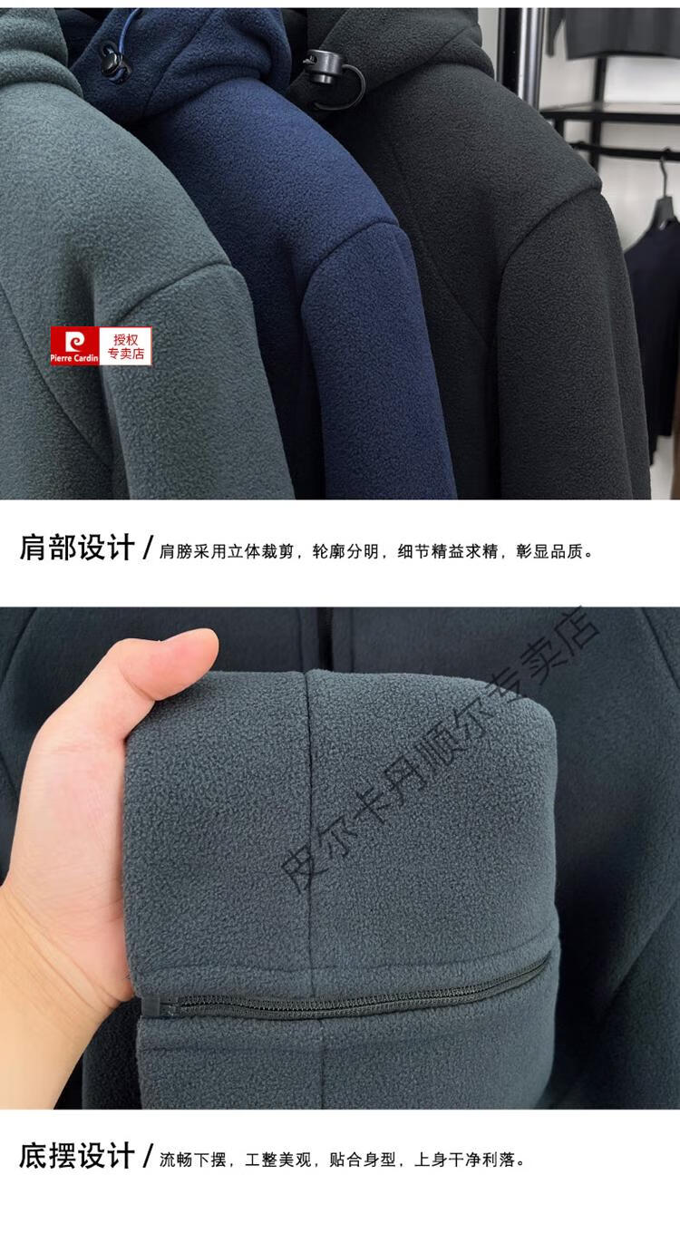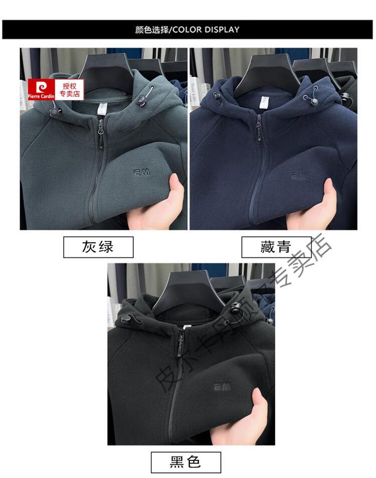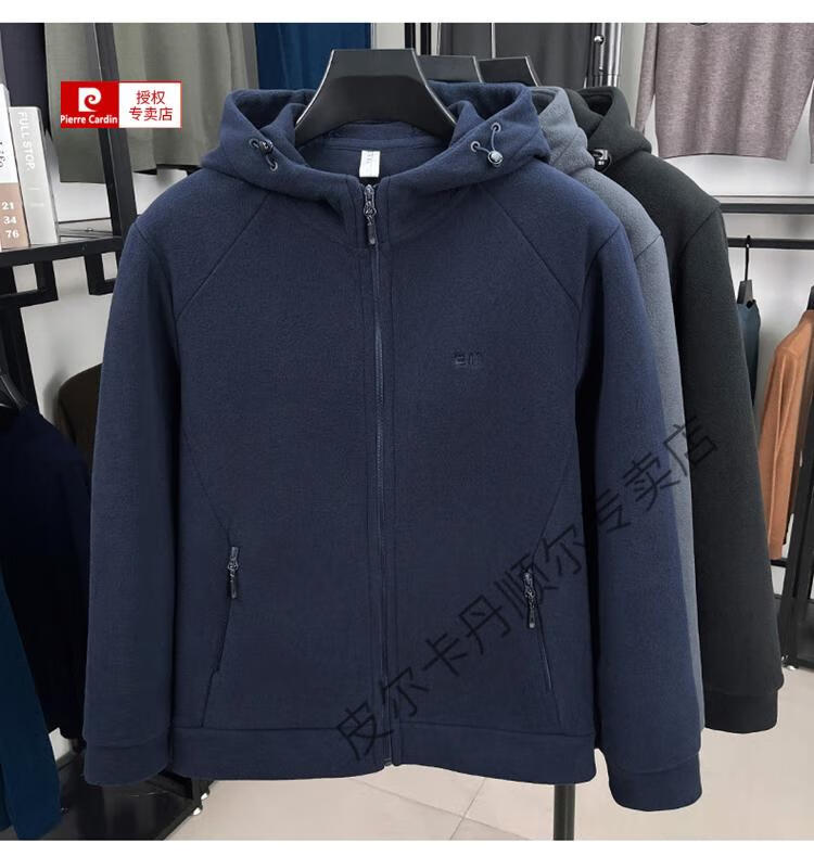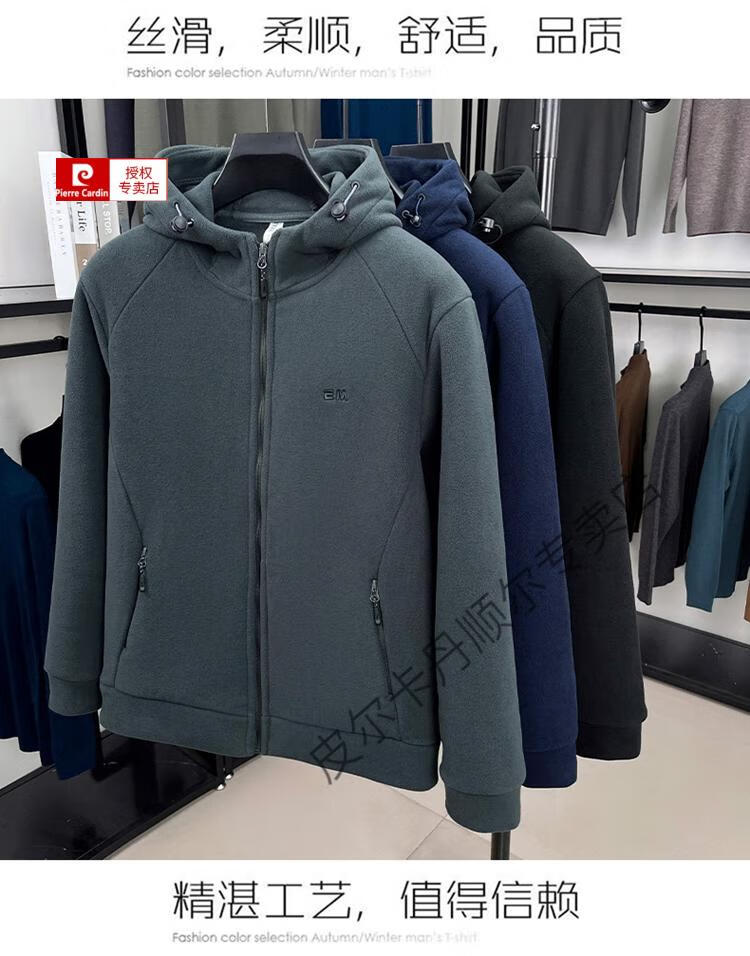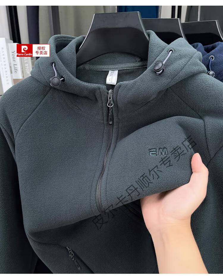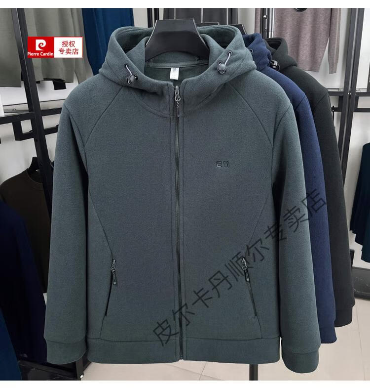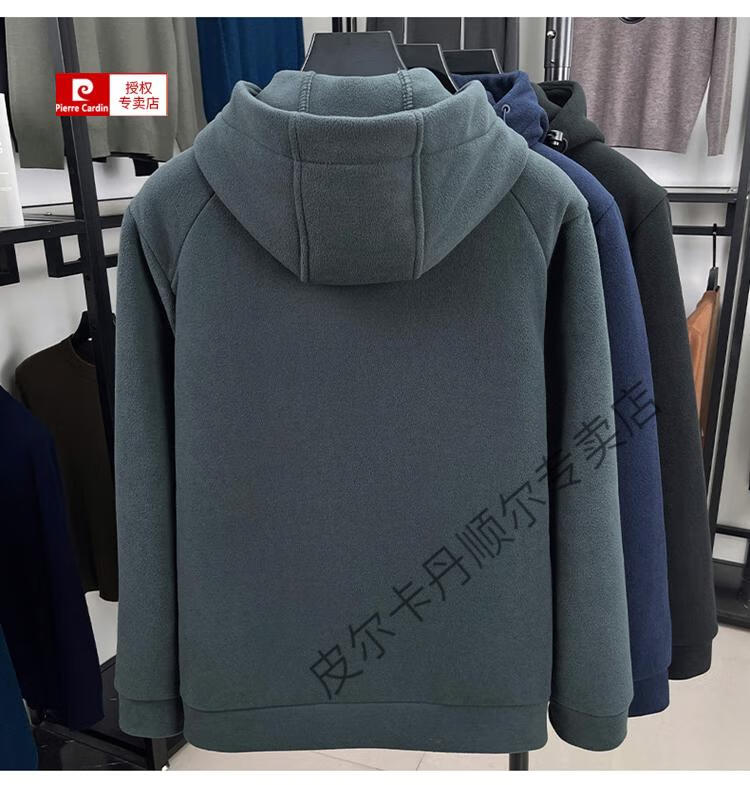 Pierre Cardin double-sided Austrian velvet sweatshirt cardigan men's hooded solid color thickened coat autumn and winter trendy casual warm jacket for men gray green 2XL 100-130Jin Jin equals 0.5 kg
