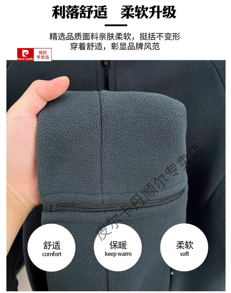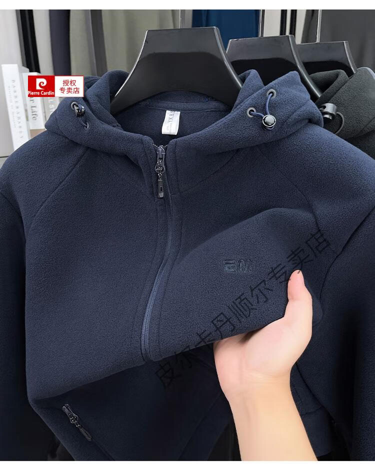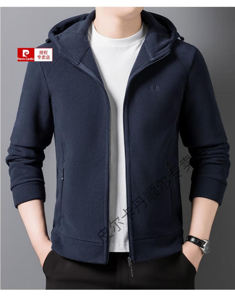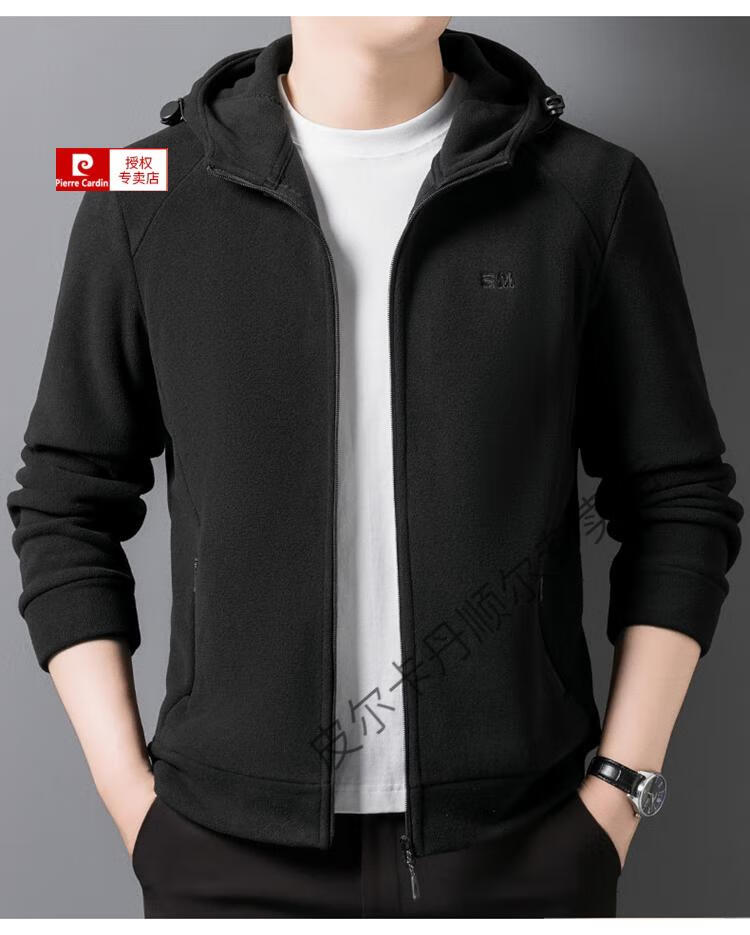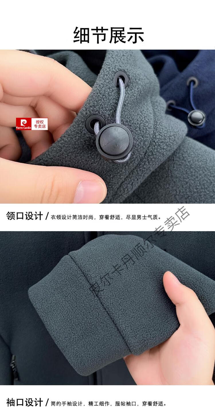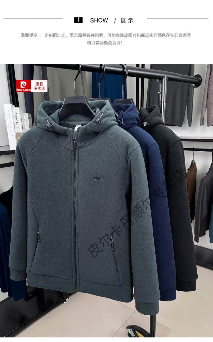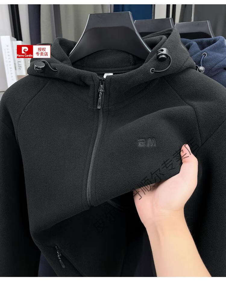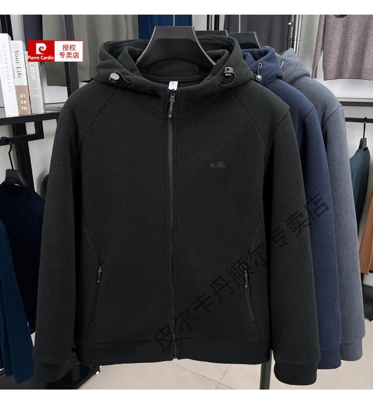 Pierre Cardin double-sided Austrian velvet sweatshirt cardigan men's hooded solid color thickened coat autumn and winter trendy casual warm jacket for men gray green 2XL 100-130Jin Jin equals 0.5 kg