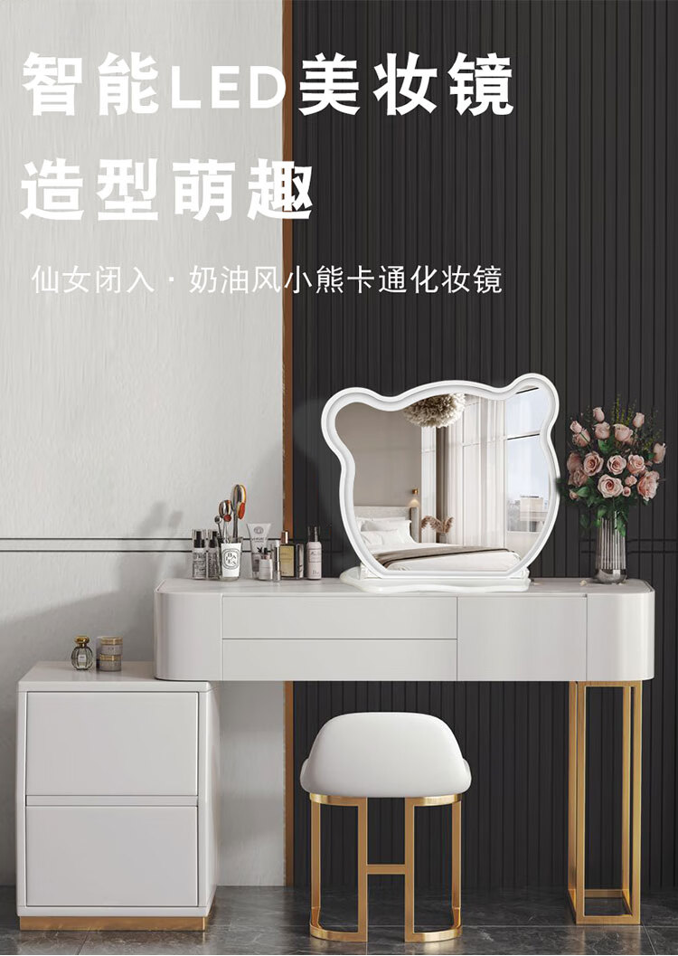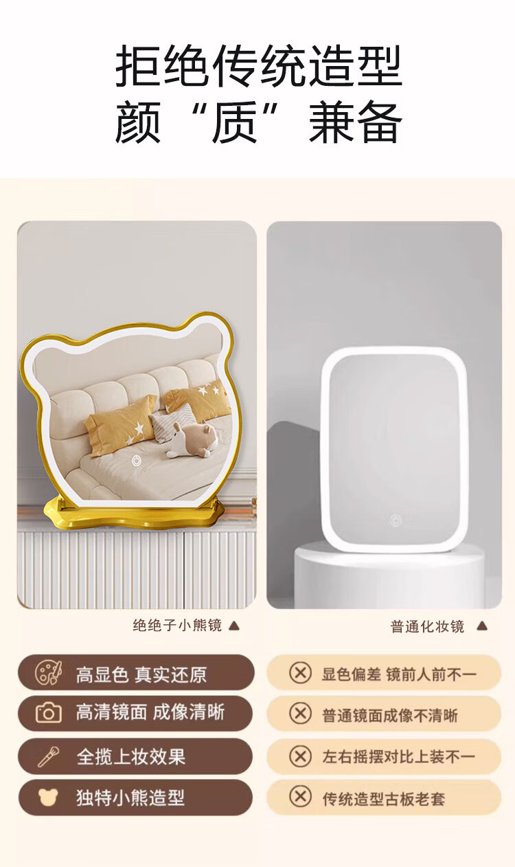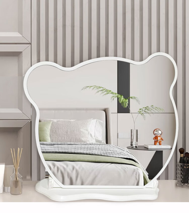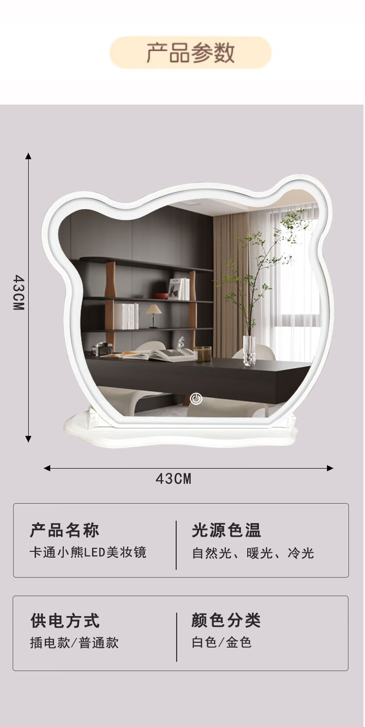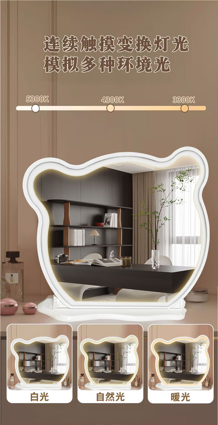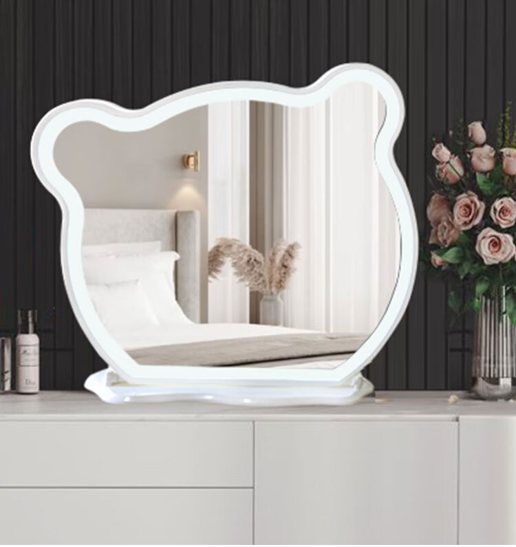 New LED makeup mirror large dressing table Bear Adjustable Desktop Rotating Fill-in Light Beauty Bedroom Dormitory Dressing Mirror Panda with Lights White