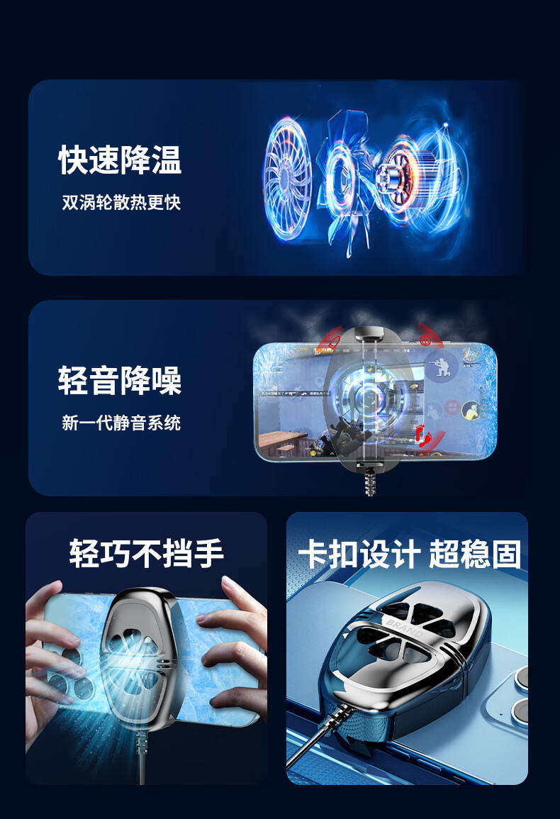 Hurricane mobile phone radiator king chicken game live broadcast must-have back clip-type Apple and Android universal rapid cooling artifact white silent version plug-in version