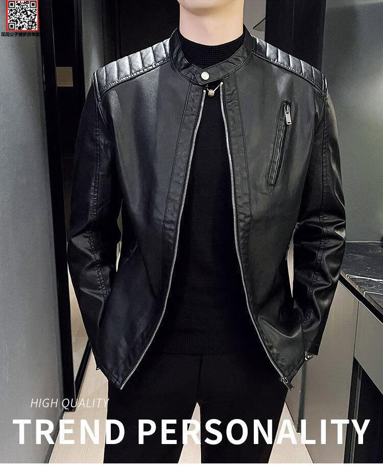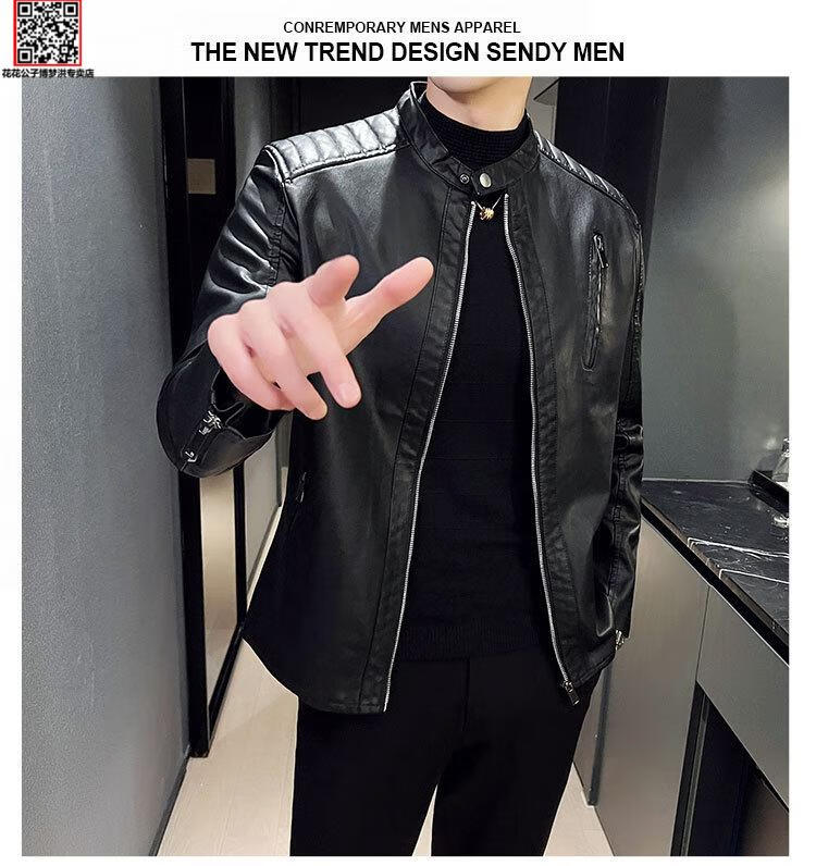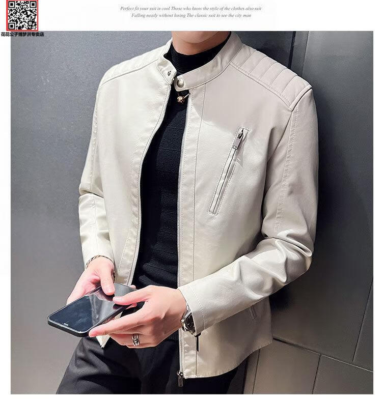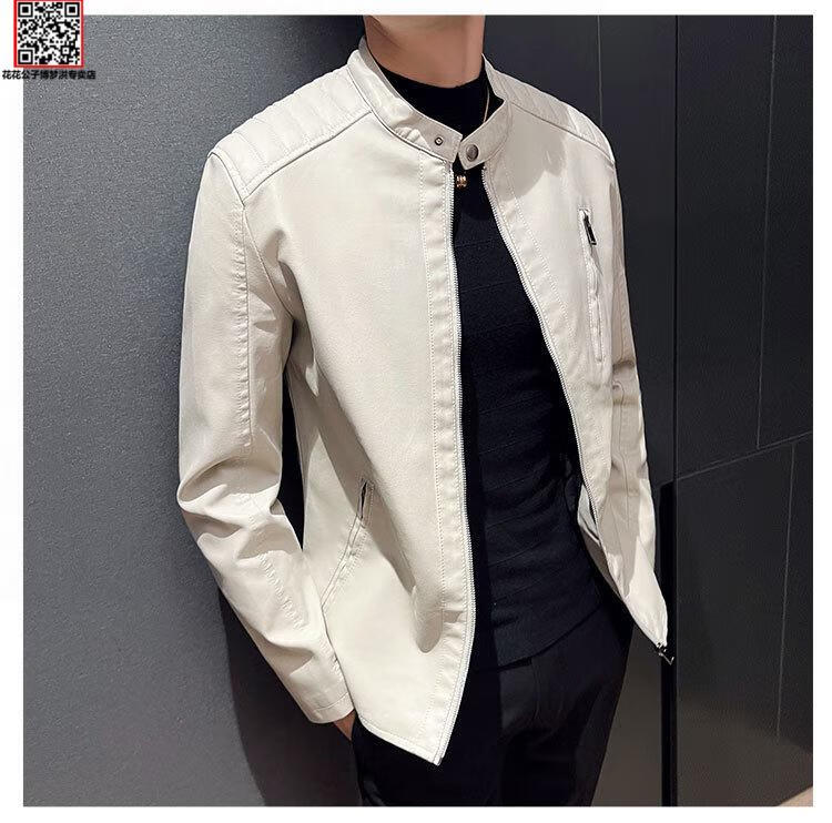Playboy (PLAYBOY) Leather Men's Jacket 2025 Spring and Autumn New Men's Korean Style Slim Beige Casual Jacket Top Jacket Trendy Beige M