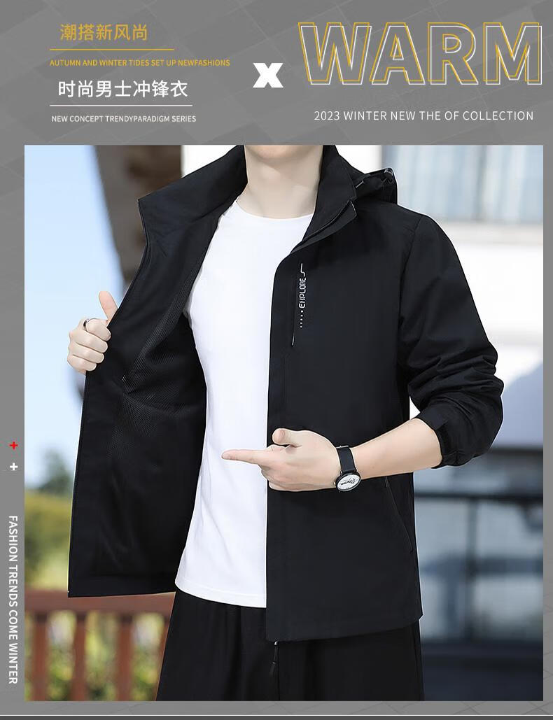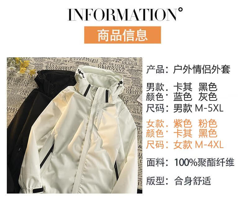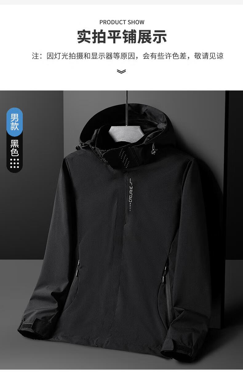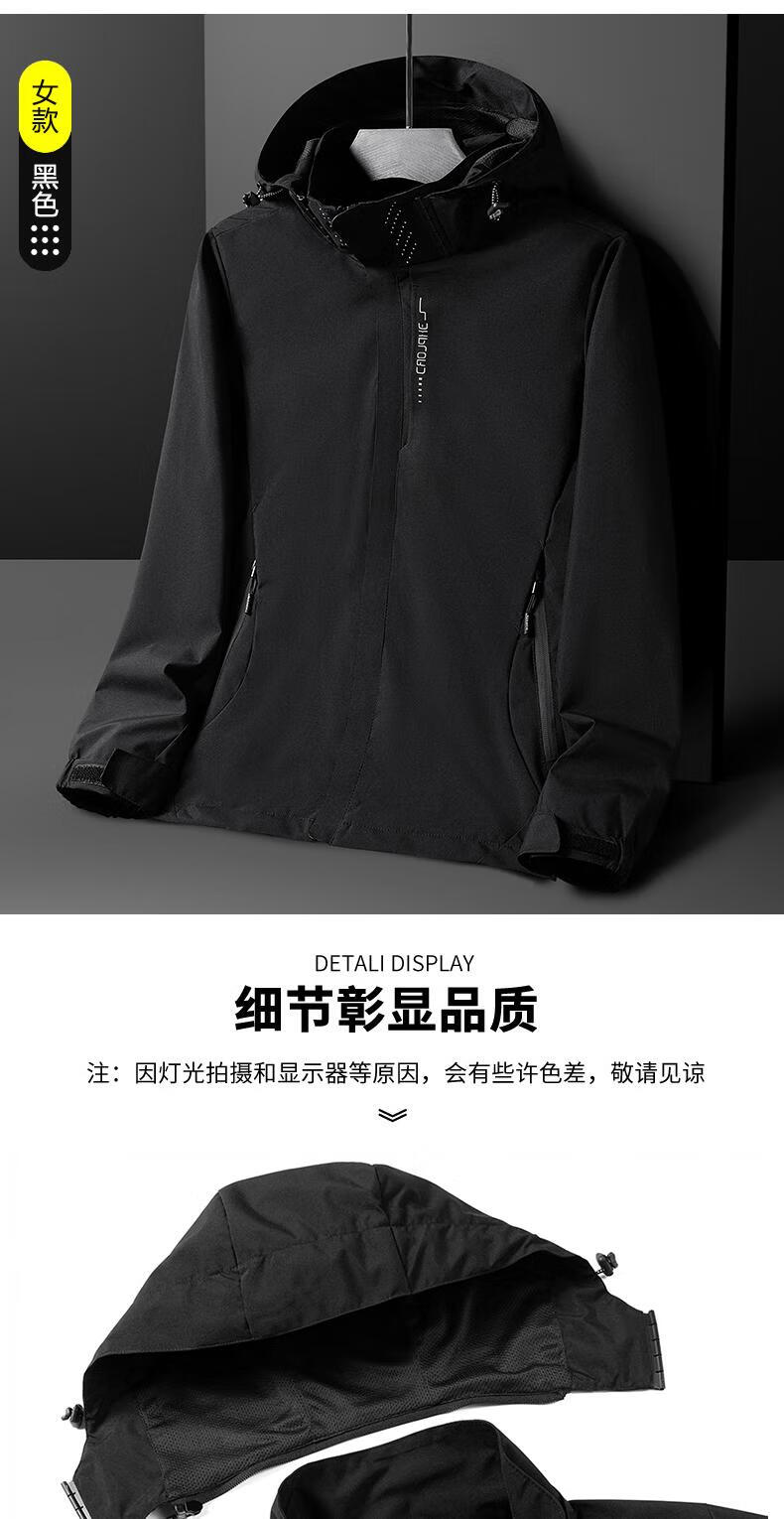 New style jacket for men and women outdoor spring and autumn new couple windproof and waterproof sports jacket mountaineering jacket black 3XL recommended 155-170Jin Jin equals 0.5 kg