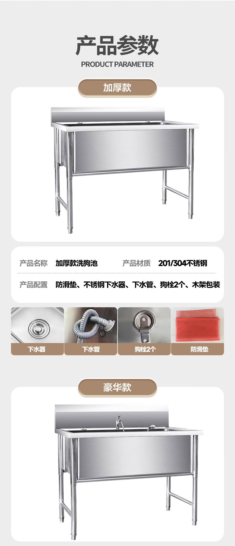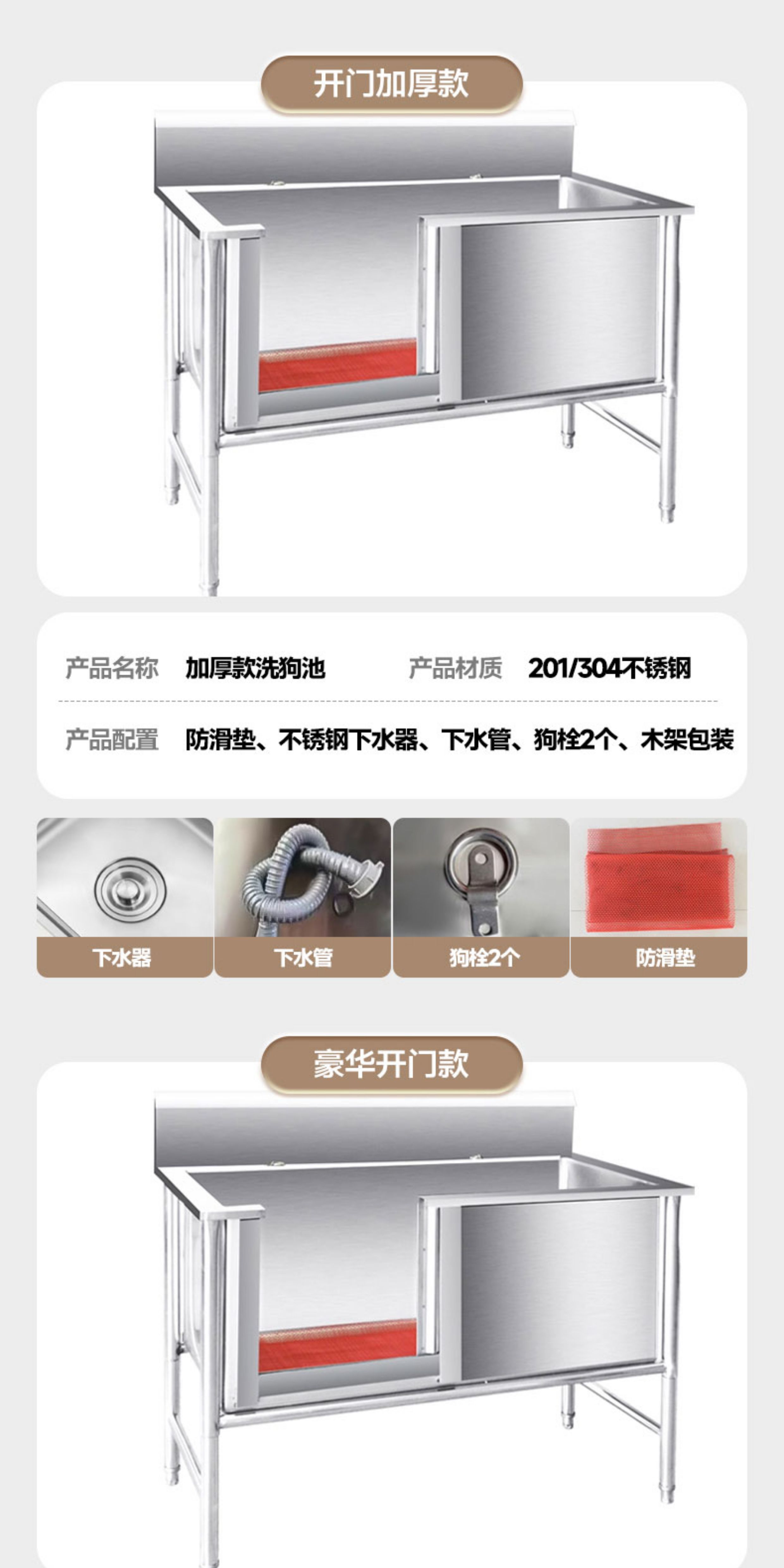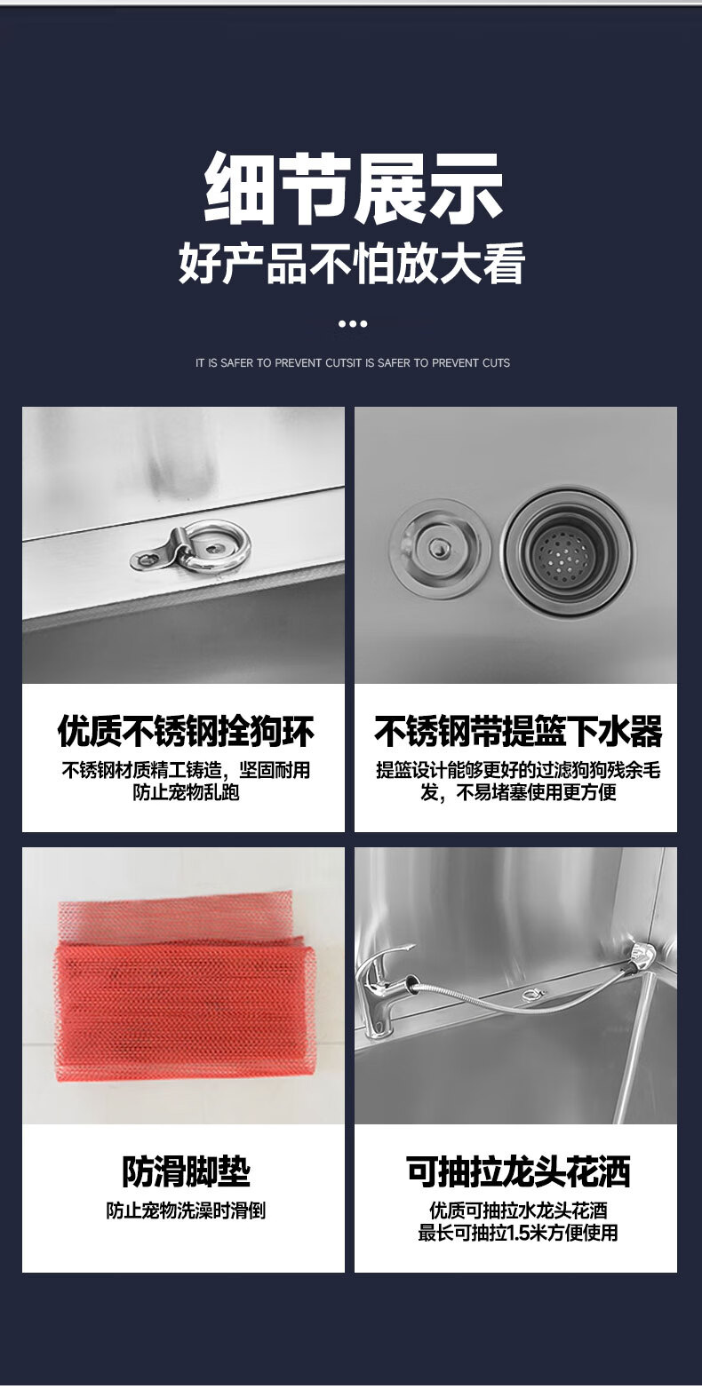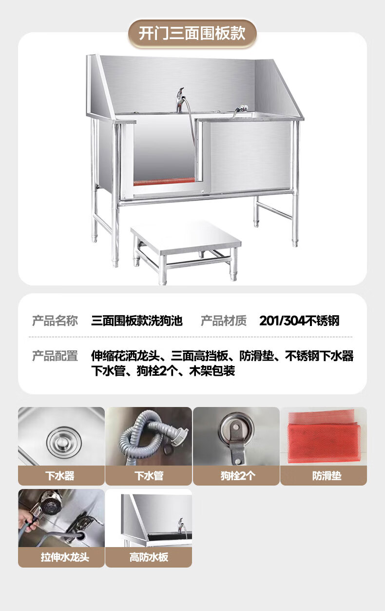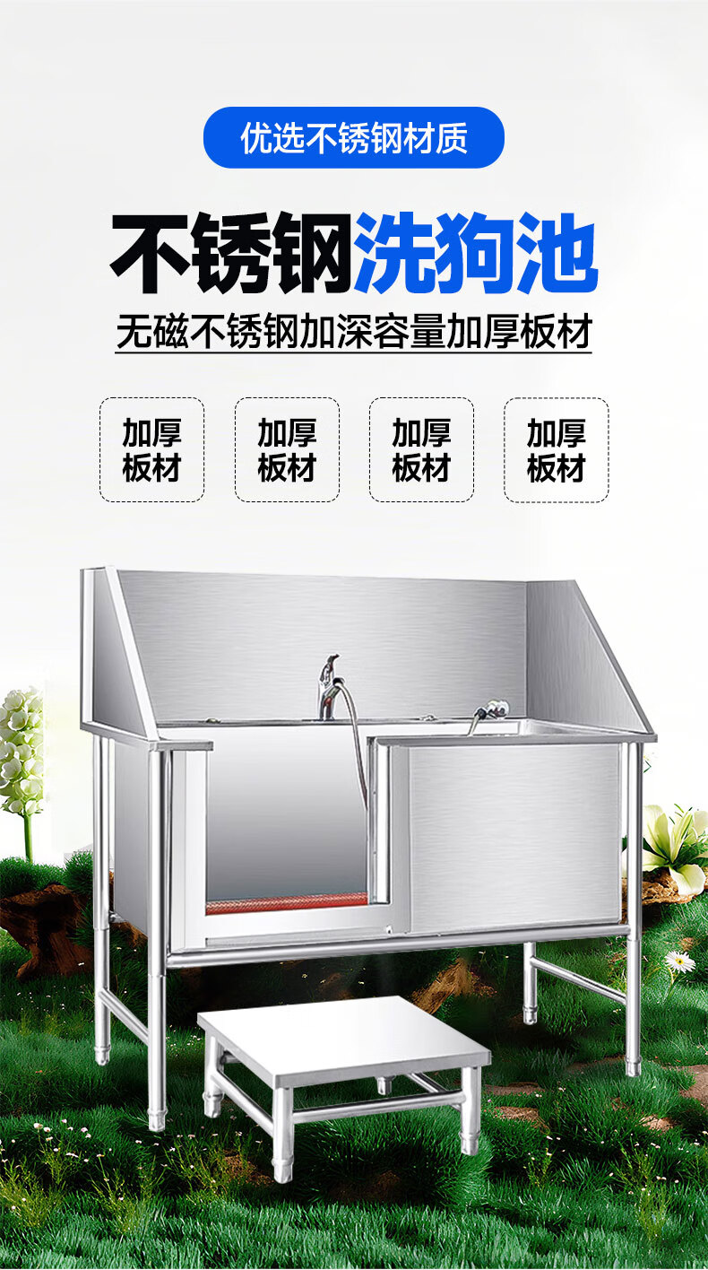 Pet bathing pool, stainless steel dog washing pool, cat and dog pet bathing pool, pet shop small and large dog bathtub, open door, luxurious extra thick model 135*70*90, depth 50cm (14