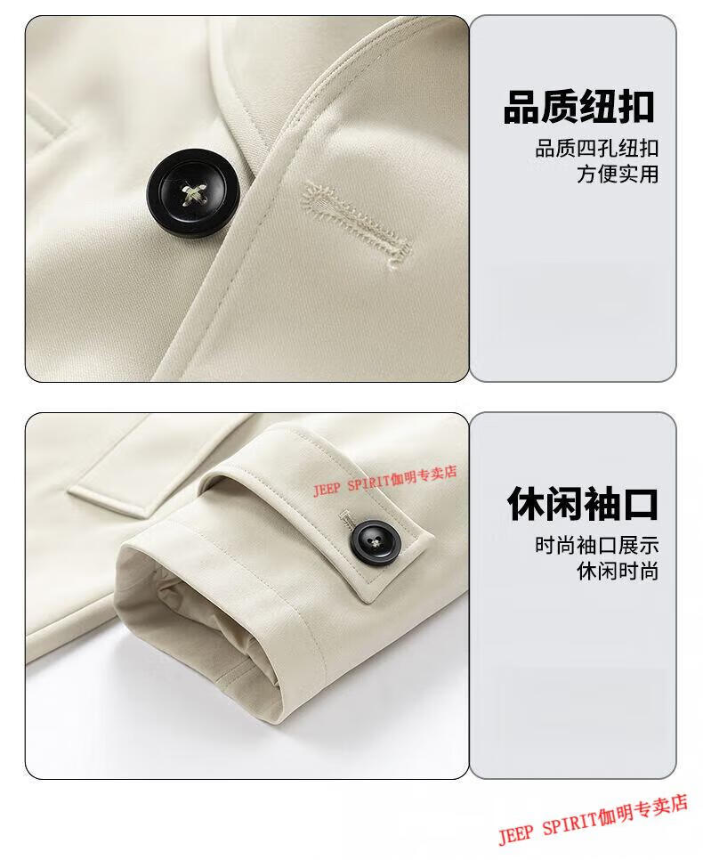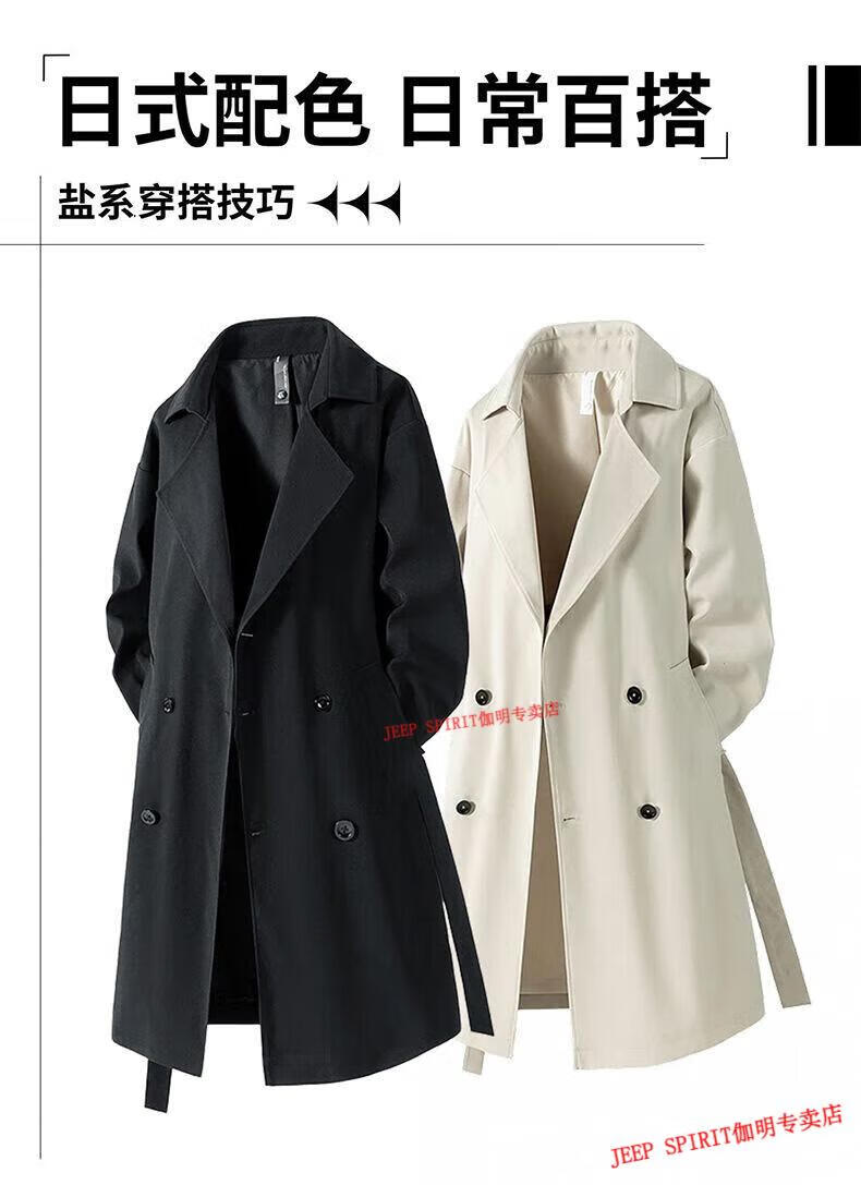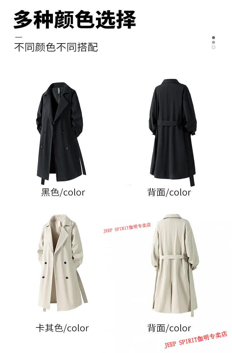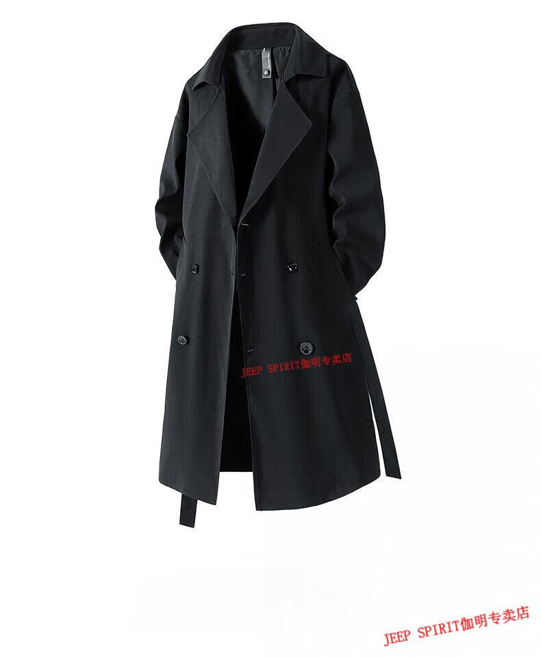 JEEP SPIRIT light luxury German mid-length windbreaker men's British style casual knee-length woolen coat spring, autumn and winter thickened black regular style 3XL recommended weight 180-200Jin Jin equals 0.5 kg