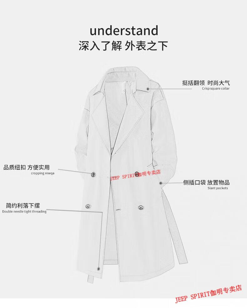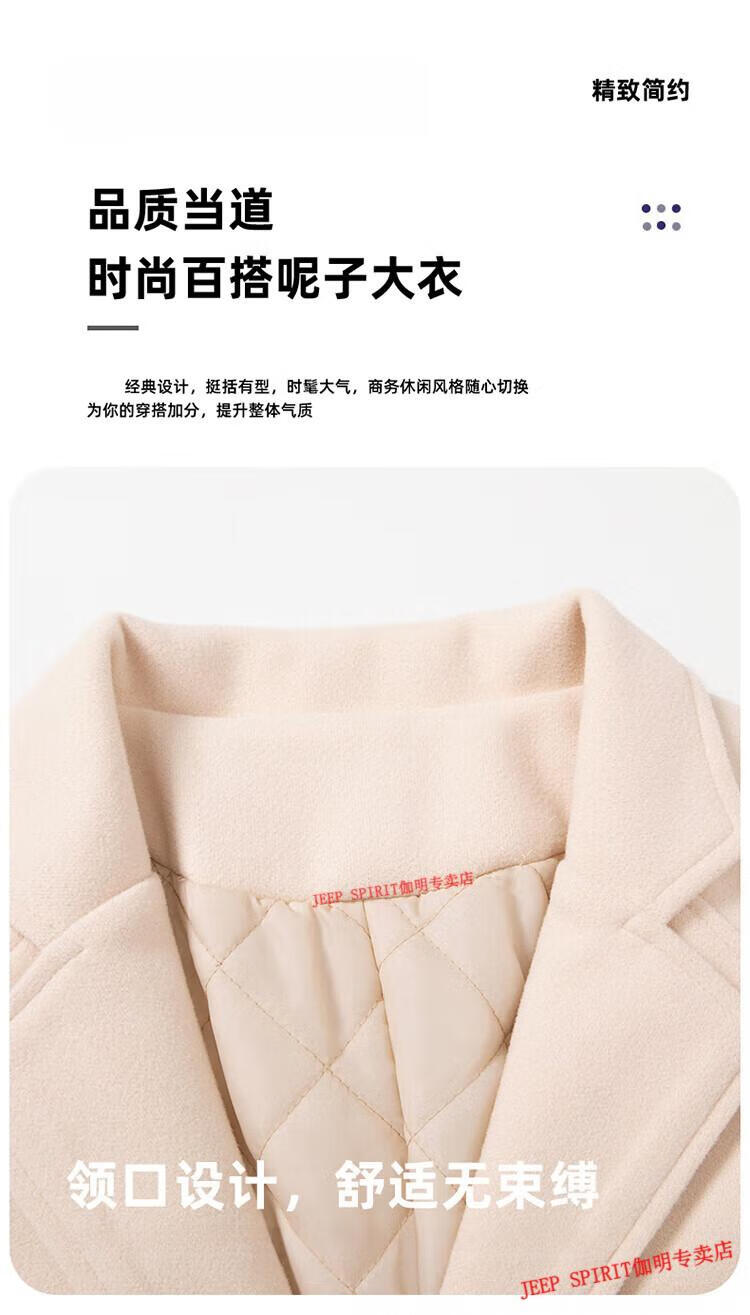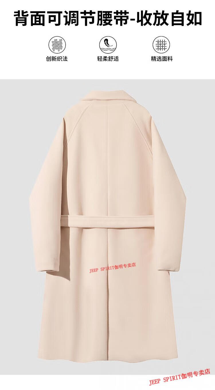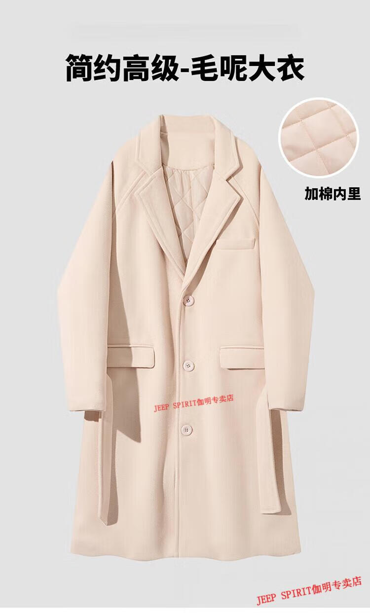 JEEP SPIRIT light luxury German mid-length windbreaker men's British style casual knee-length woolen coat spring, autumn and winter thickened black regular style 3XL recommended weight 180-200Jin Jin equals 0.5 kg