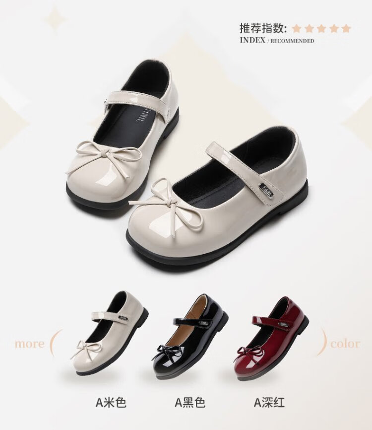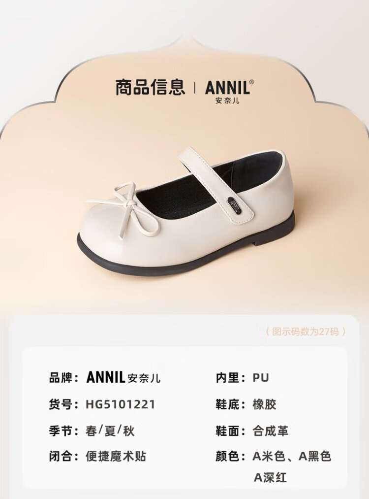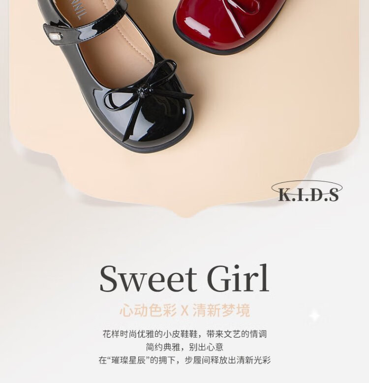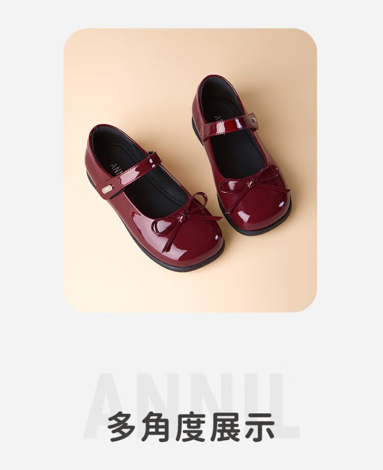 Annil (Annil) Girls' Leather Shoes Spring New Princess Shoes with Dresses Children's Red Leather Shoes Little Girls Mary Jane Shoes Dark Red Velcro 27 Inner Length 17.7cm, Recommended Foot Length 16.7cm