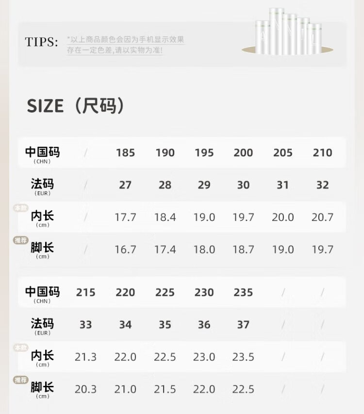 China (cm) 36 - 37 38 - 39 40 - 42 43 - 44 45 - 47