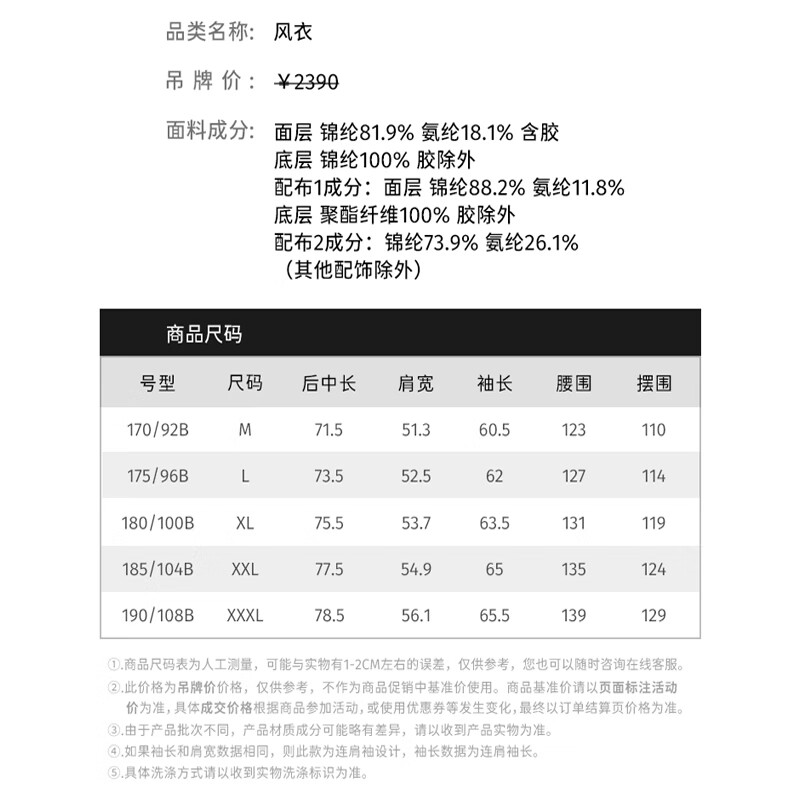 China (cm) 165 / 88-90 170 / 96-98 175 / 108-110 180 / 118-122 185 / 126-130