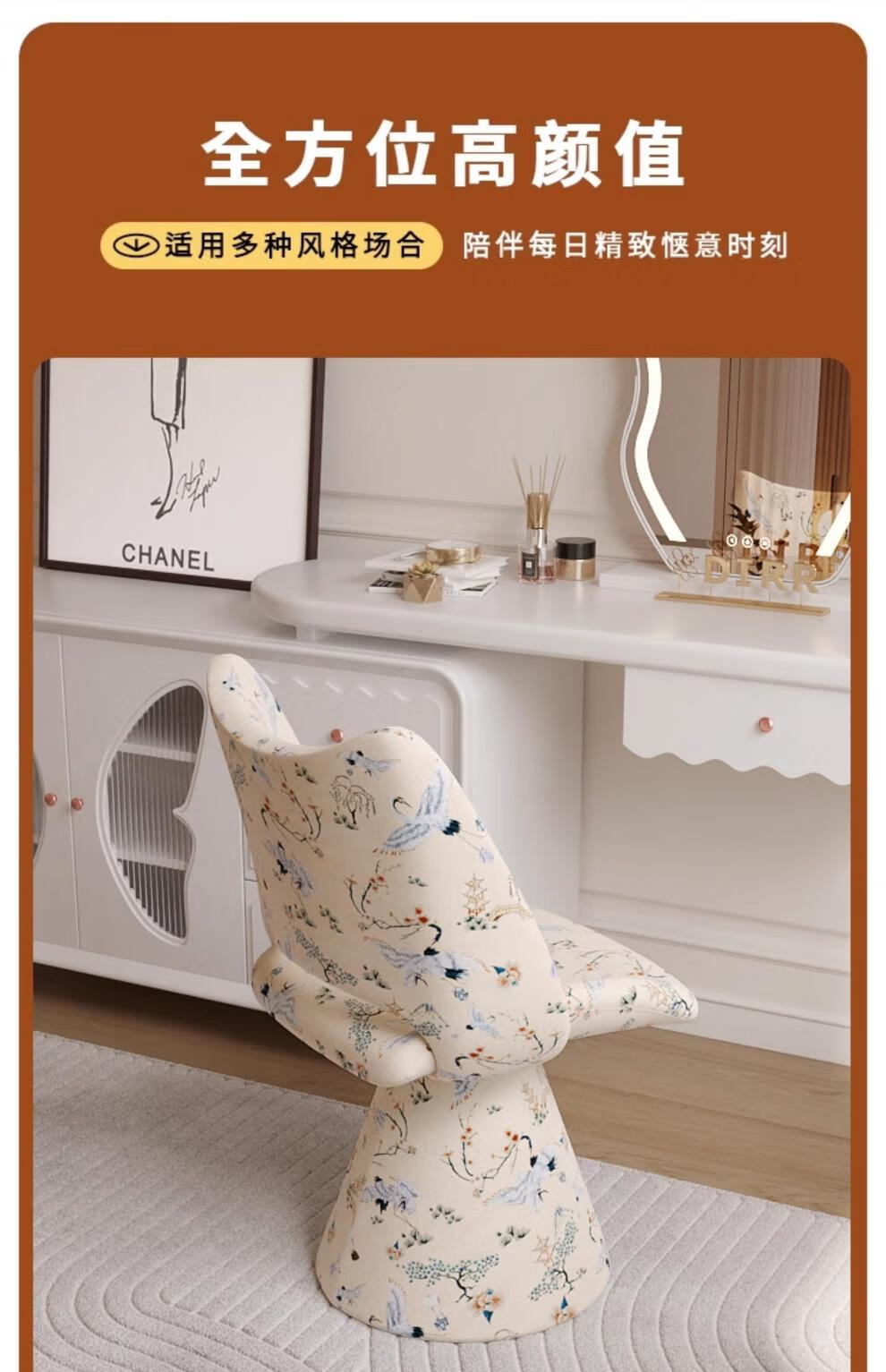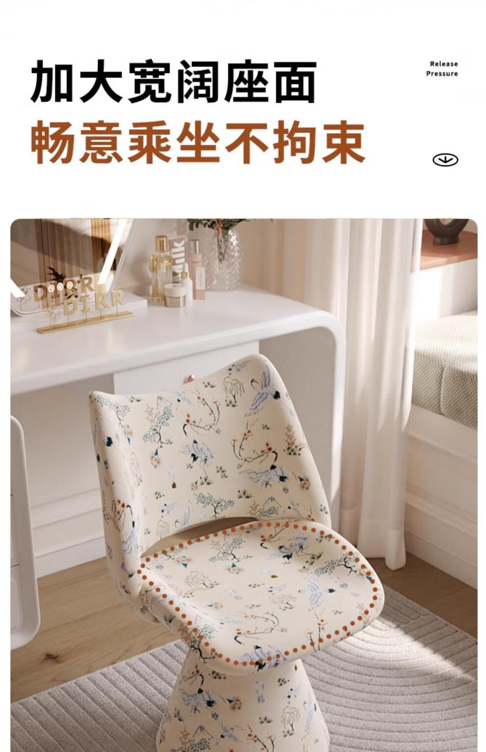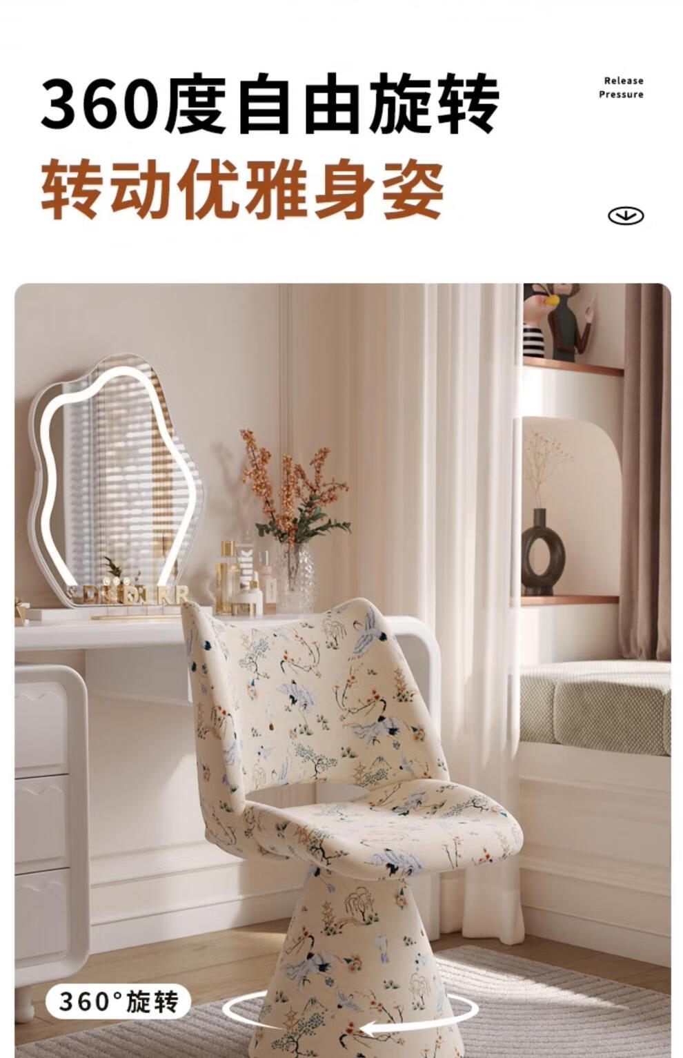 Shantou Lincun Cream Style Makeup Stool Home Bedroom Backrest Girls Dressing Stool Middle Ages Style Rotatable Makeup Chair Crane Milk White - Non-rotatable
