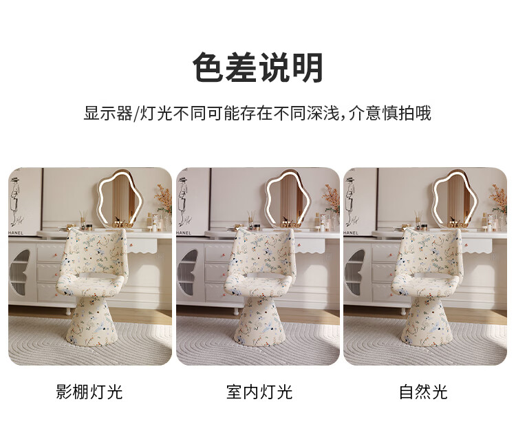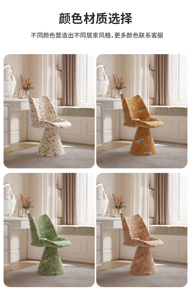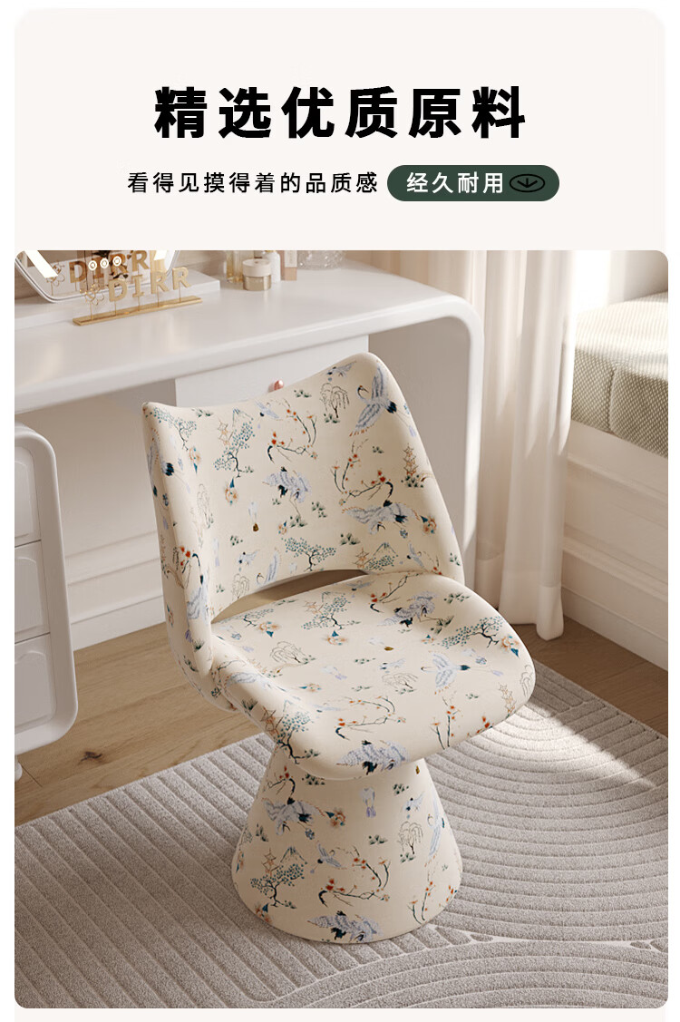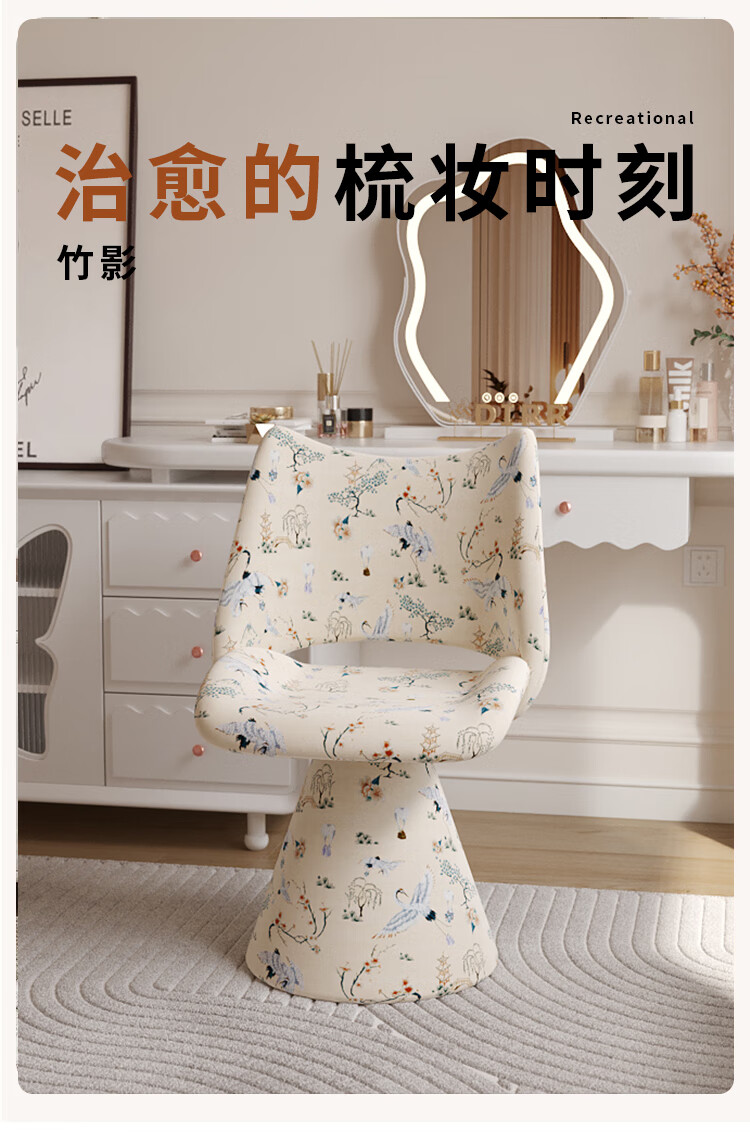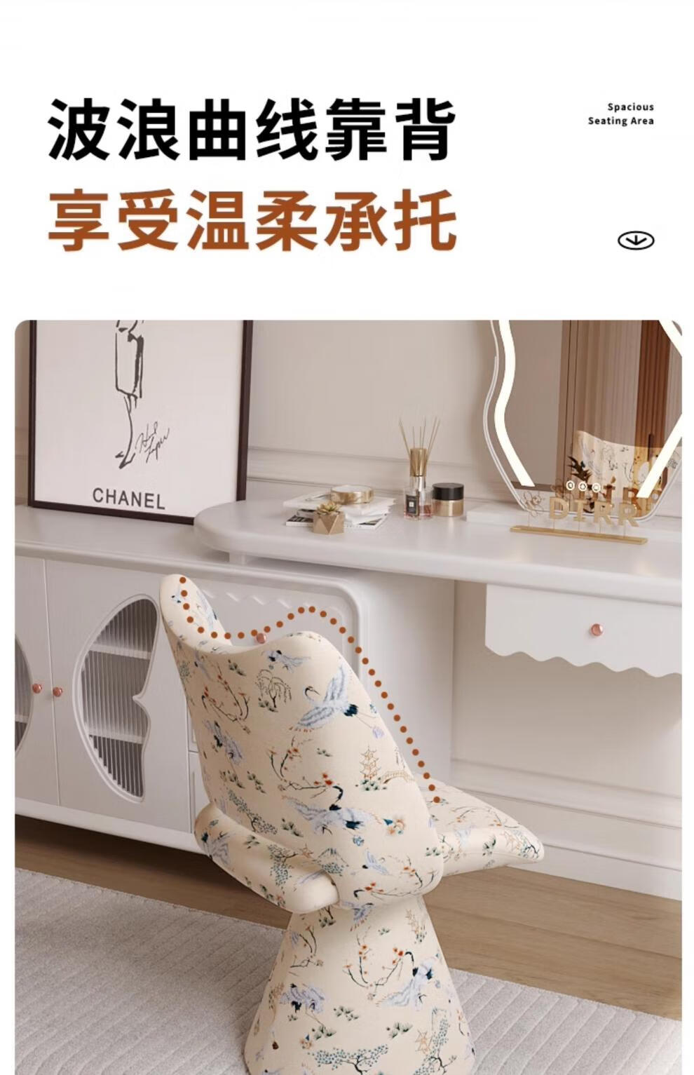 Shantou Lincun Cream Style Makeup Stool Home Bedroom Backrest Girls Dressing Stool Middle Ages Style Rotatable Makeup Chair Crane Milk White - Non-rotatable