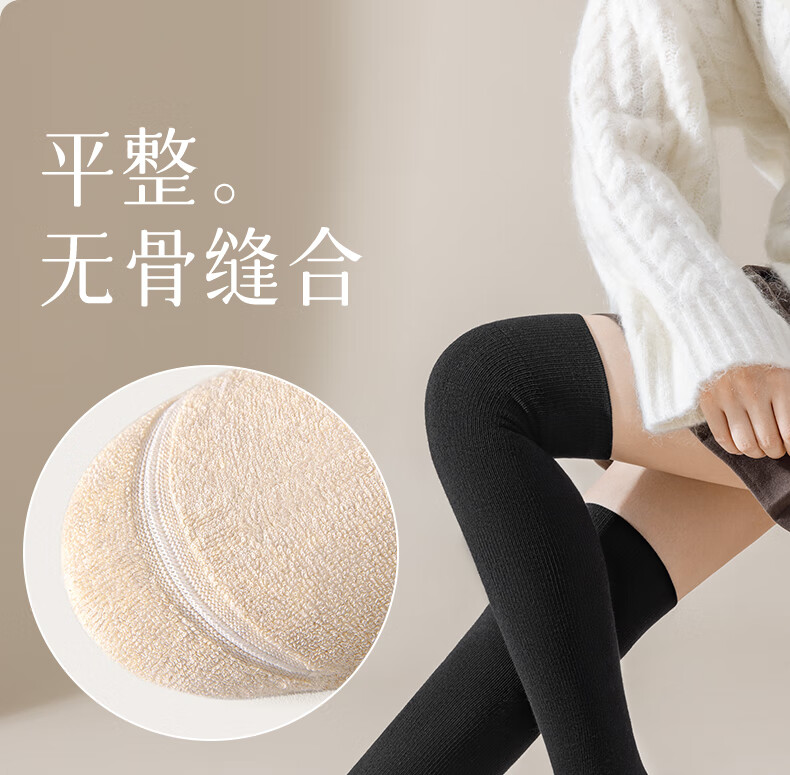 Mianzhuwu over-the-knee long socks for women in autumn and winter knee pads, warm terry plus velvet, thickened pressure, slimming black high-high thigh socks, combination seven (black + dark gray), one size fits all, 2 pairs_35-39 over-the-knee pressure_warm and not bulky_non-slip