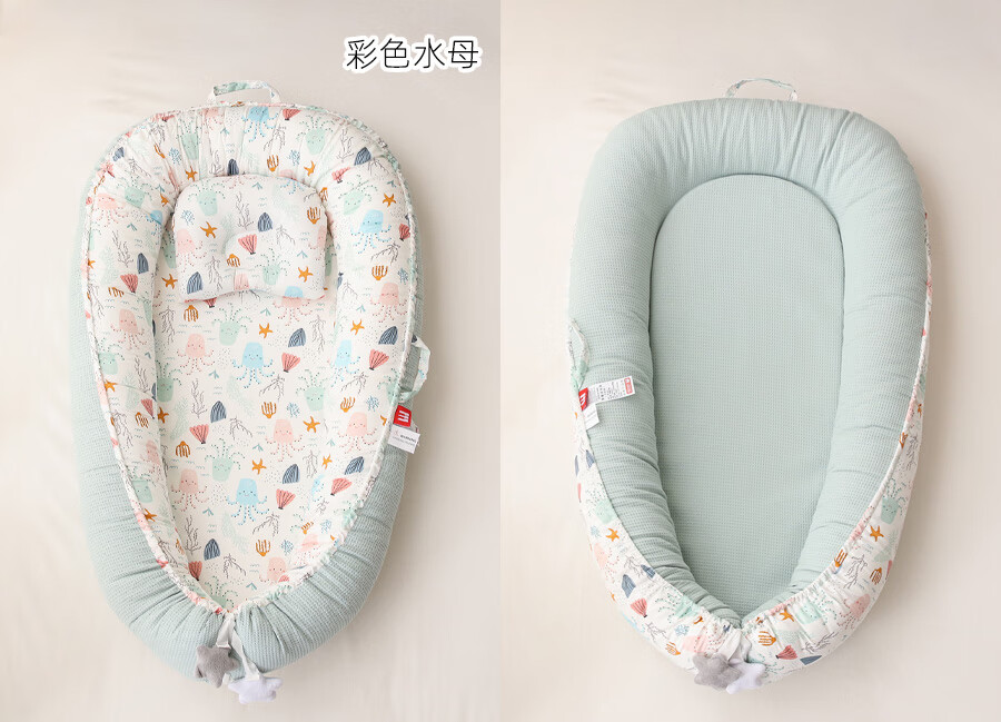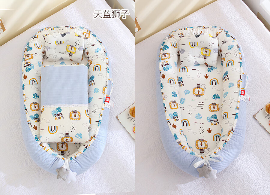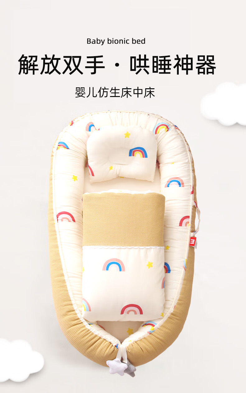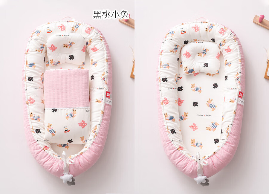Shantou Lincun bed-in-bed crib for newborns to coax them to sleep, anti-jumping uterine bionic bed, baby's sleeping safety artifact, polka-dot bunny - no quilt (comes with shaped pillow) - removable and washable, reversible