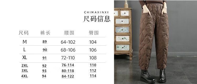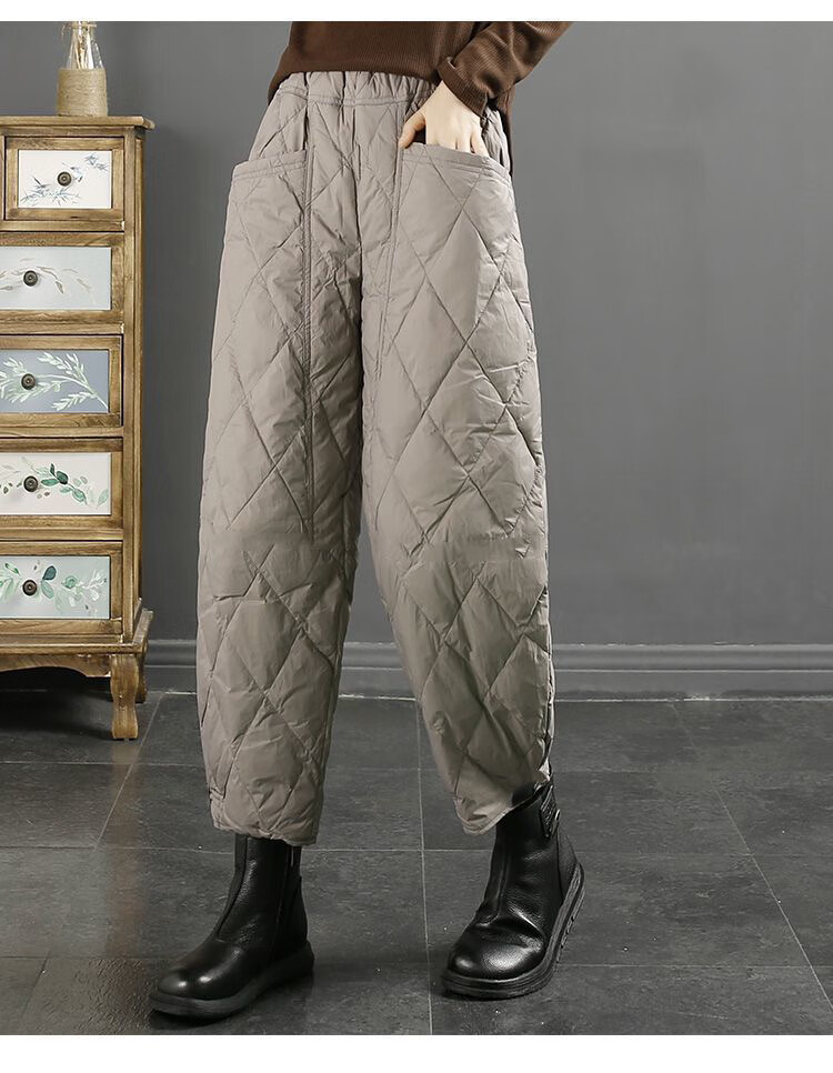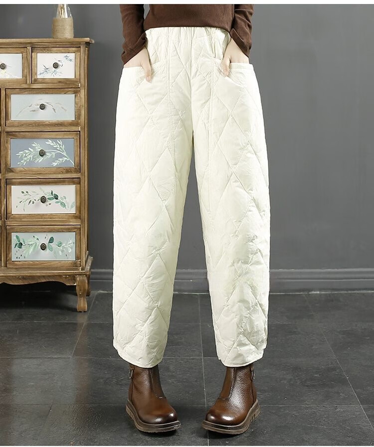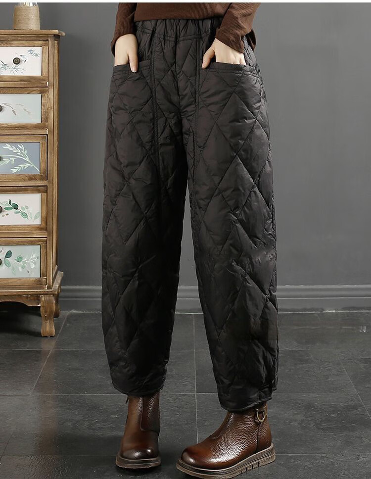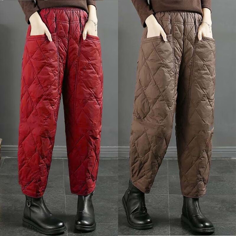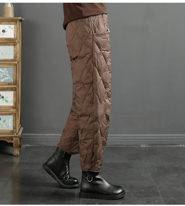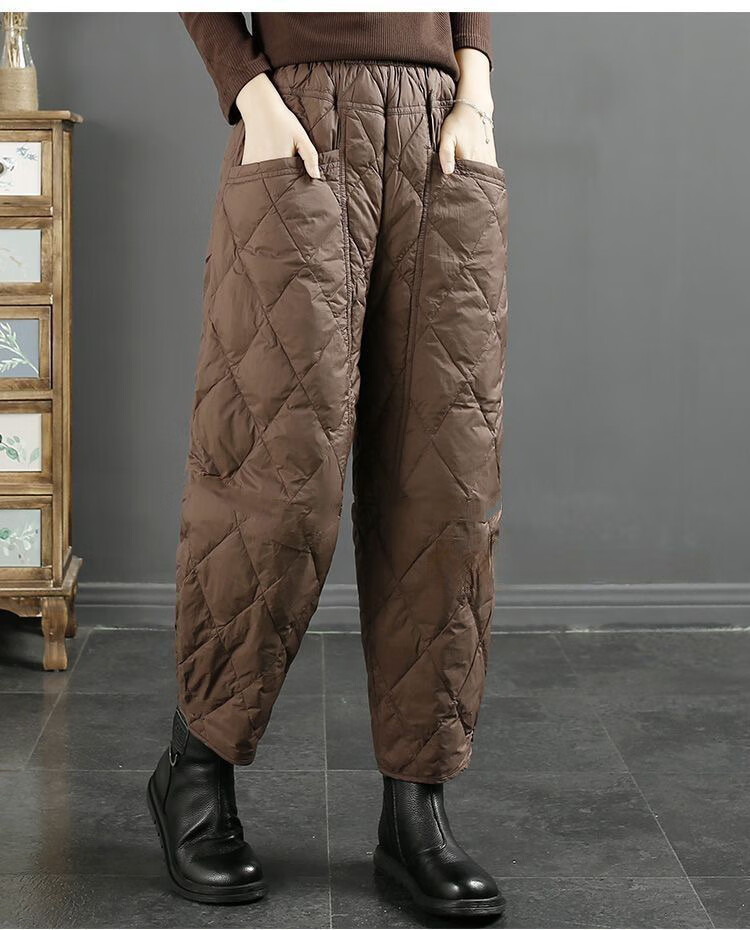 Jibai elderly down cotton pants women's outer wear loose plus fat plus size 2025 winter new thickened warm casual pants brown high quality quilted, card code size up one size XL recommended 115-130Jin Jin is equal to 0.5 kg