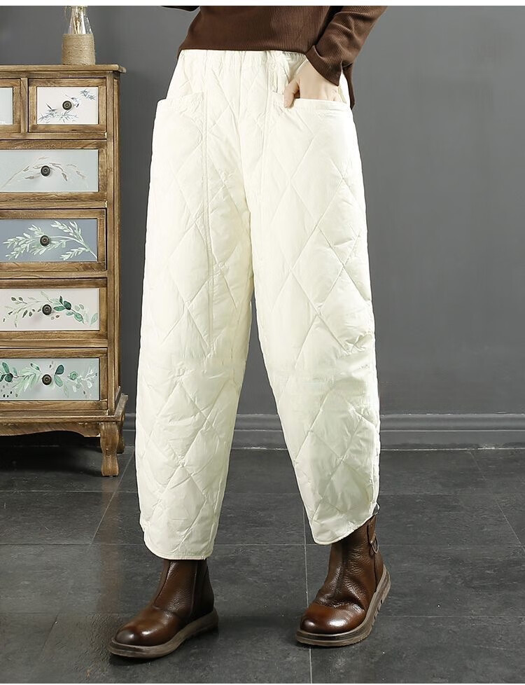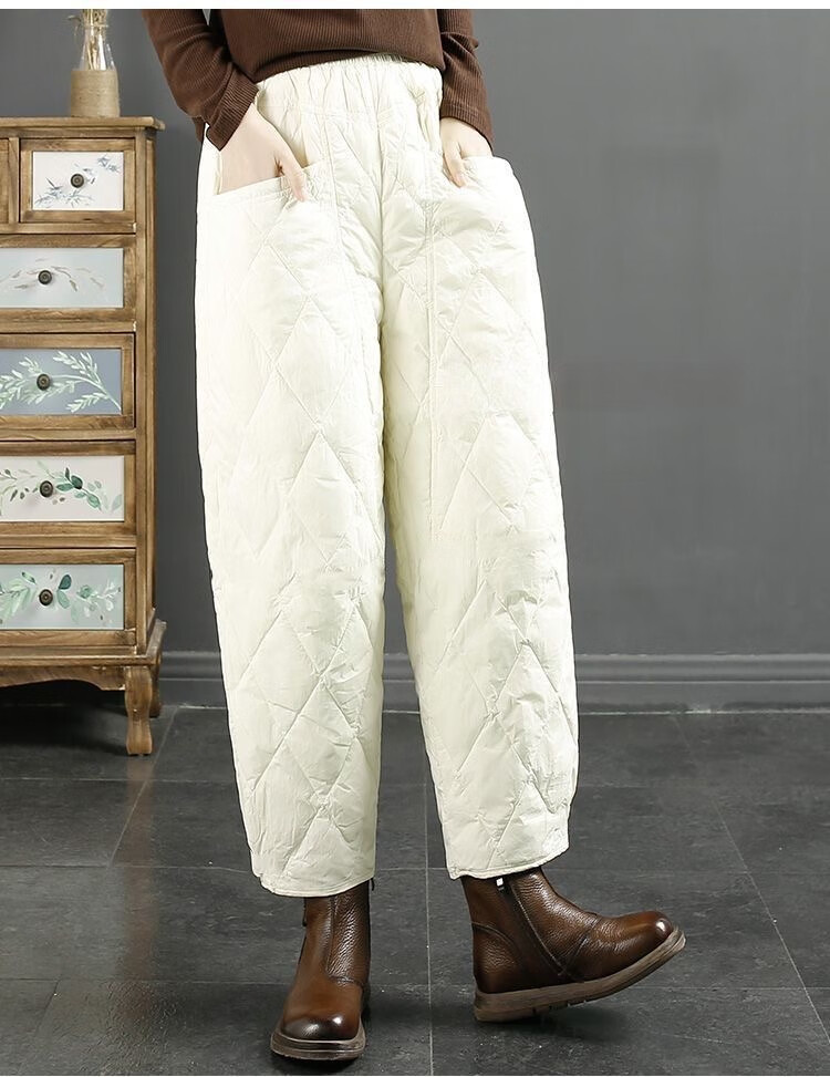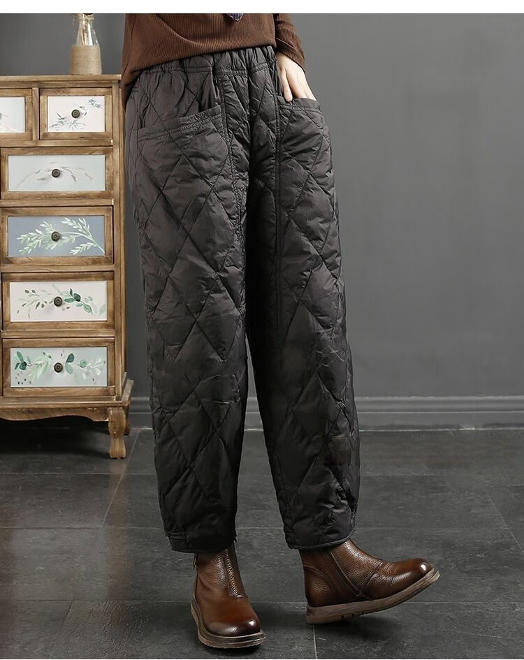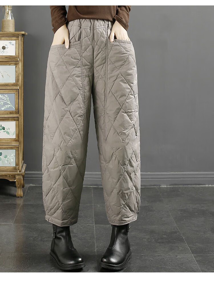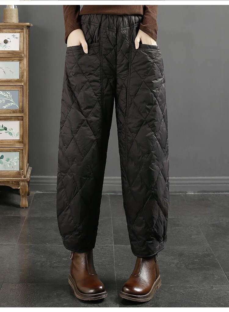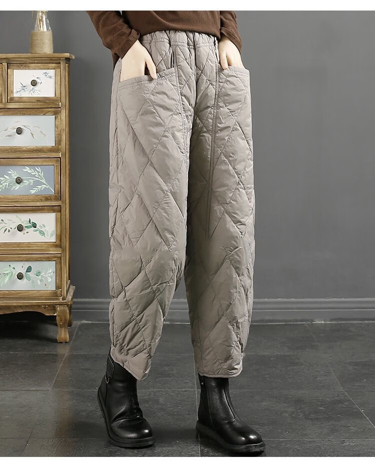 Jibai elderly down cotton pants women's outer wear loose plus fat plus size 2025 winter new thickened warm casual pants brown high quality quilted, card code size up one size XL recommended 115-130Jin Jin is equal to 0.5 kg