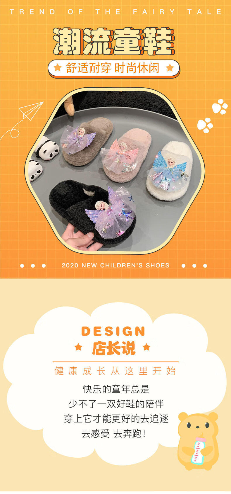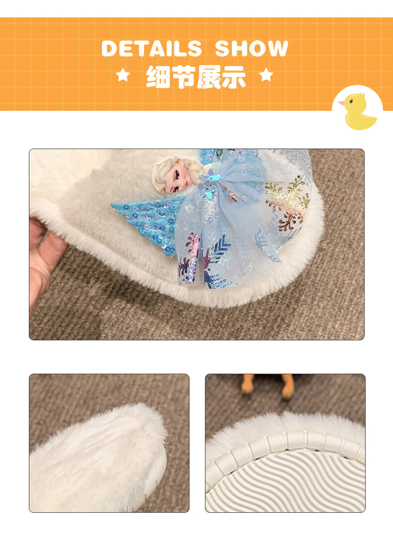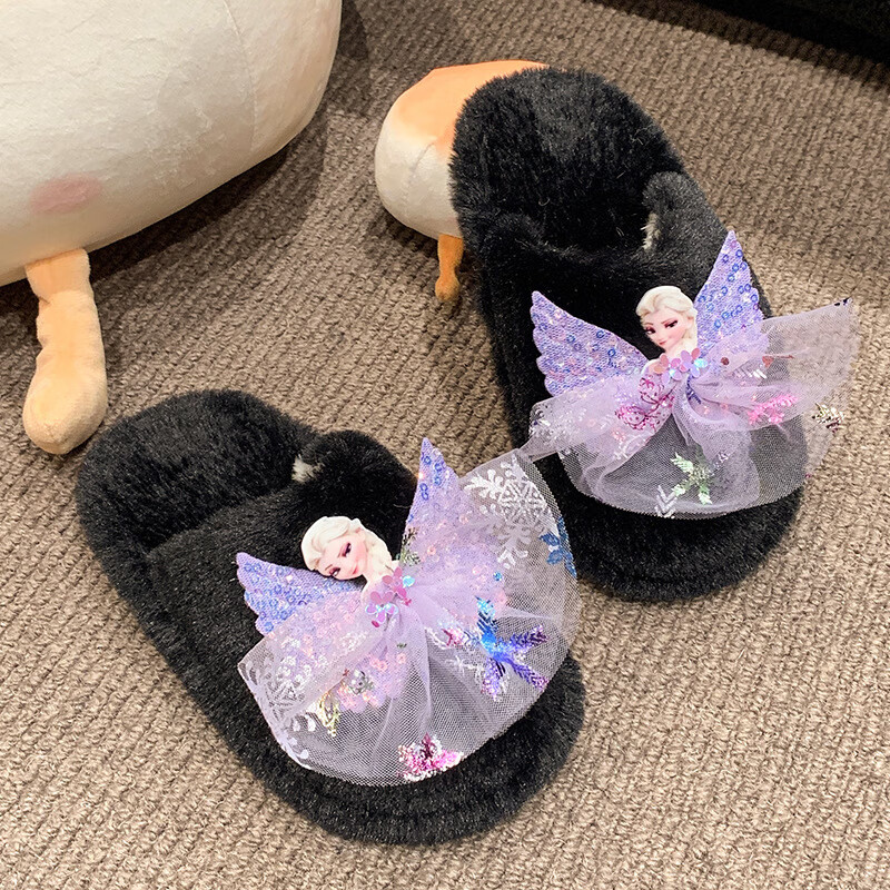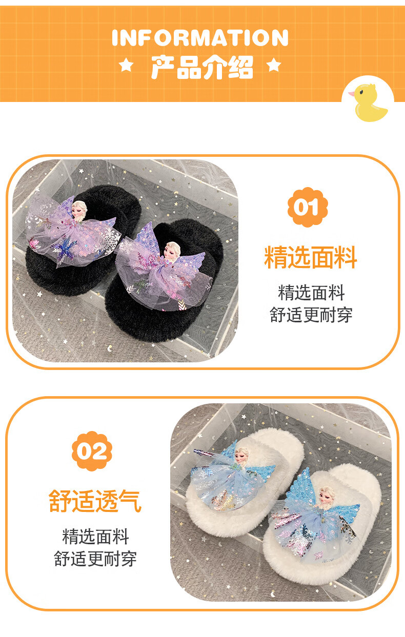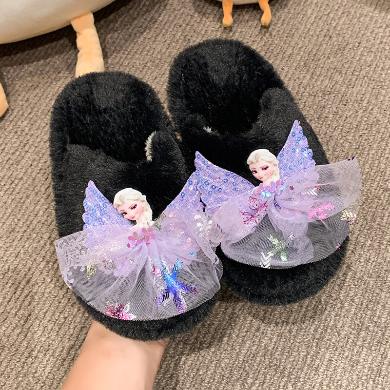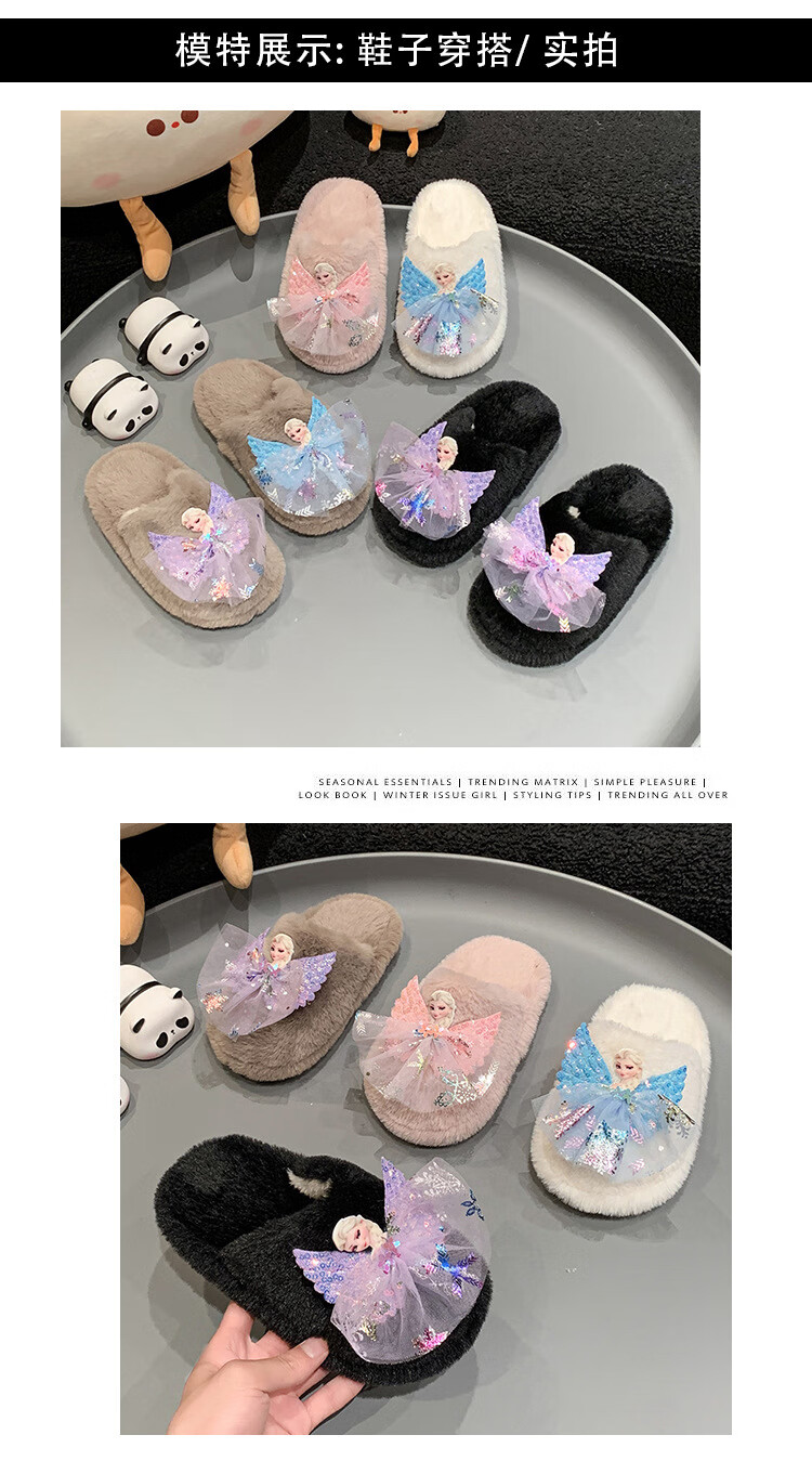 SKONWAT children's winter plush plush slippers, fashionable new girls' Elsa Princess home flat heel Baotou warm cotton slippers, white, size 26-27, inner length 18cm