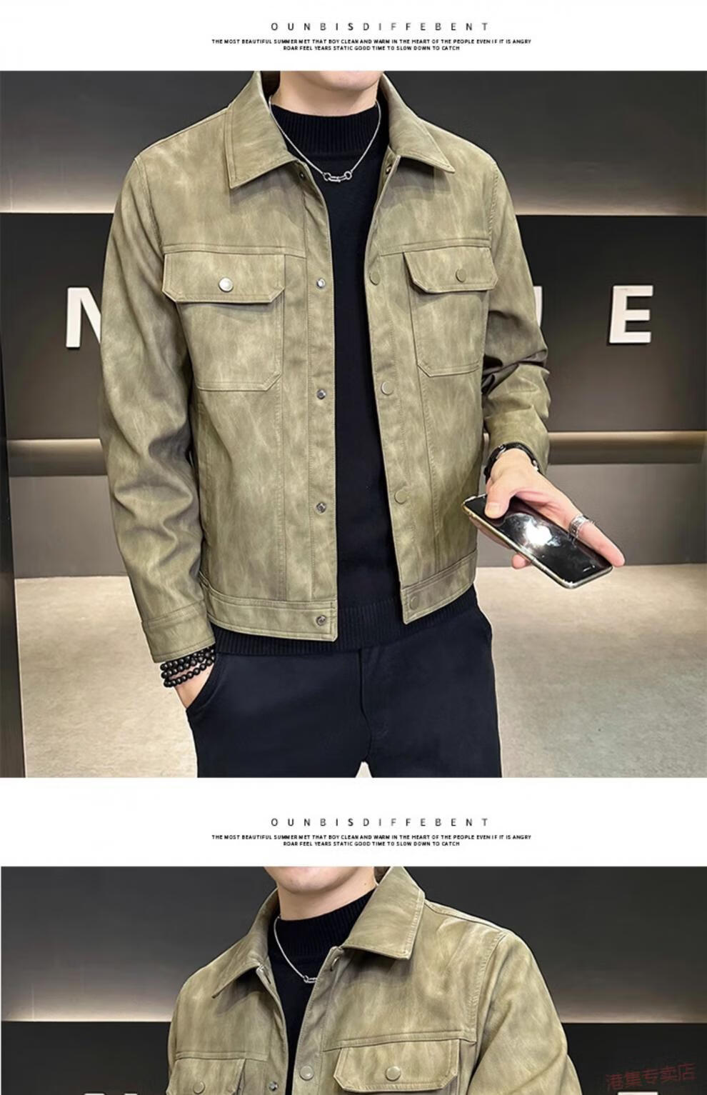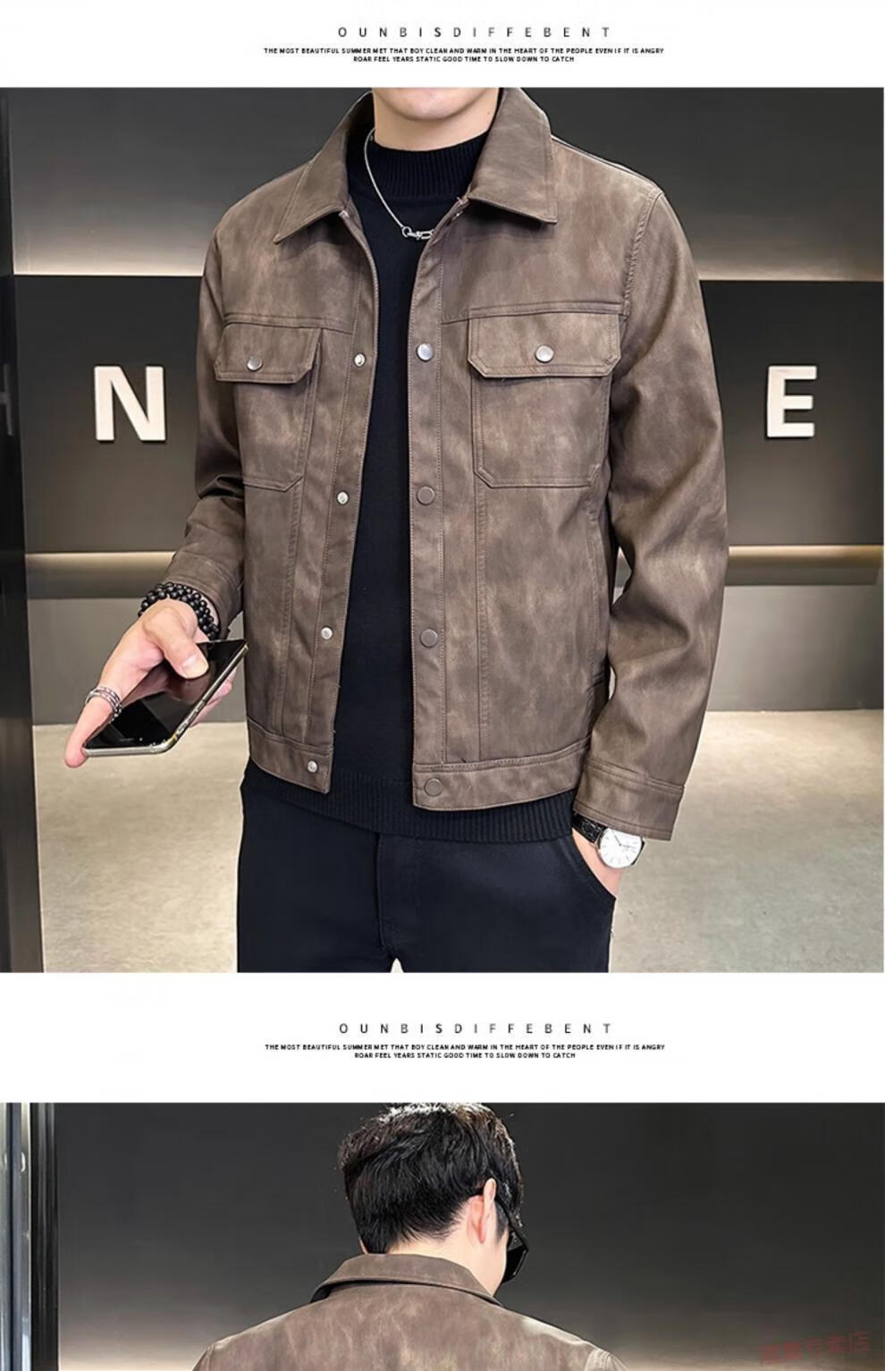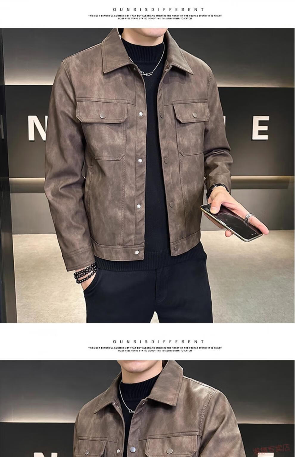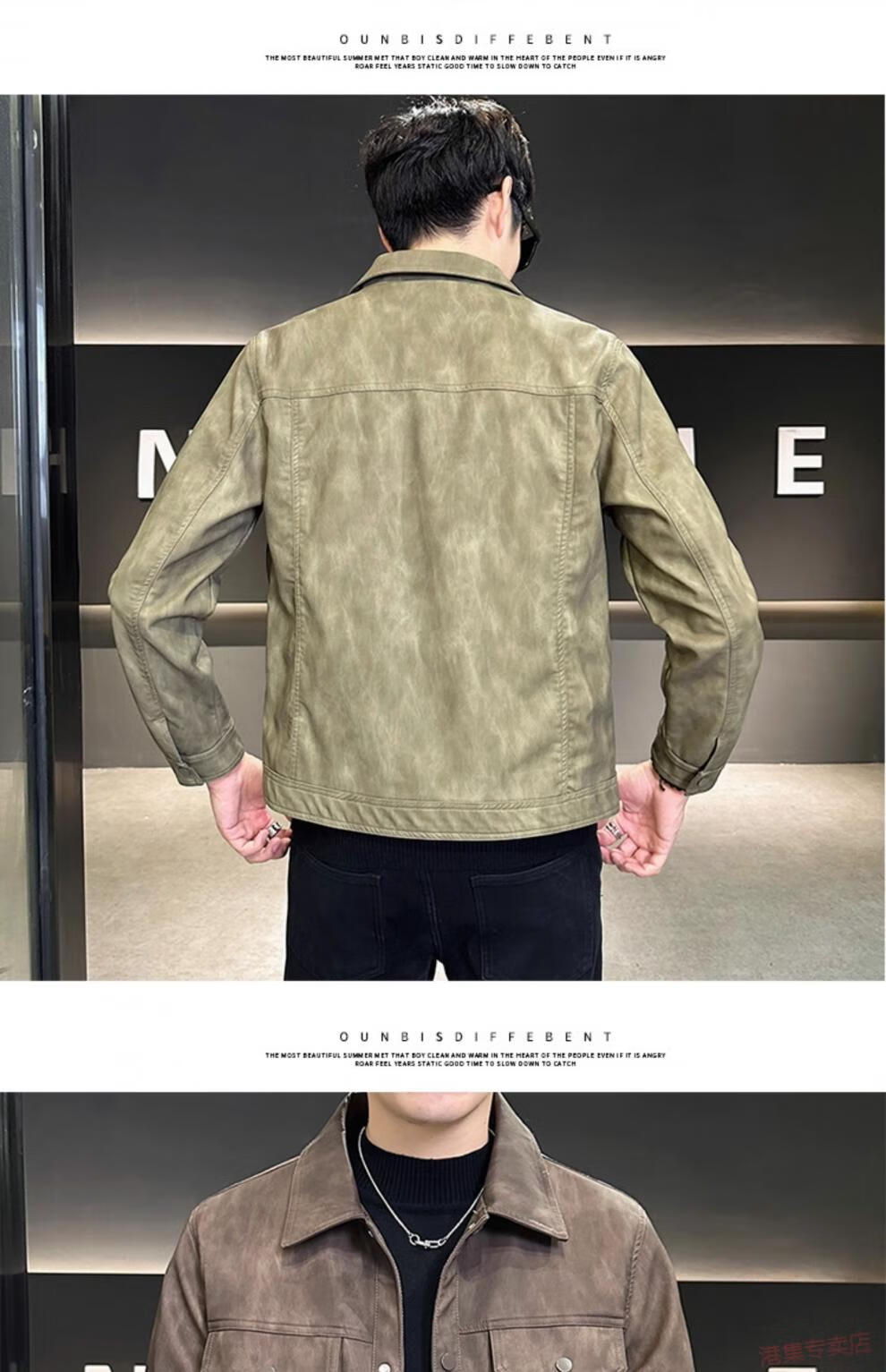 JEEP SPIRIT leather jacket men's 2025 new spring and autumn handsome slim bomber jacket casual men's leather jacket brown XL 105-125Jin Jin equals 0.5 kg