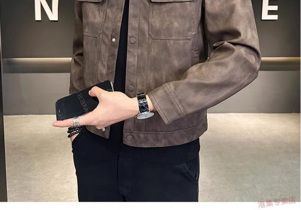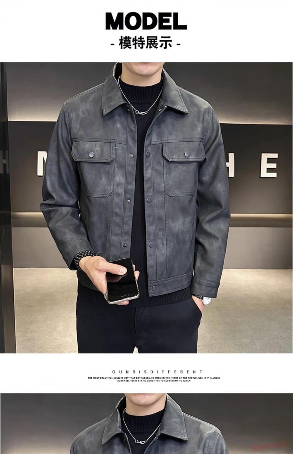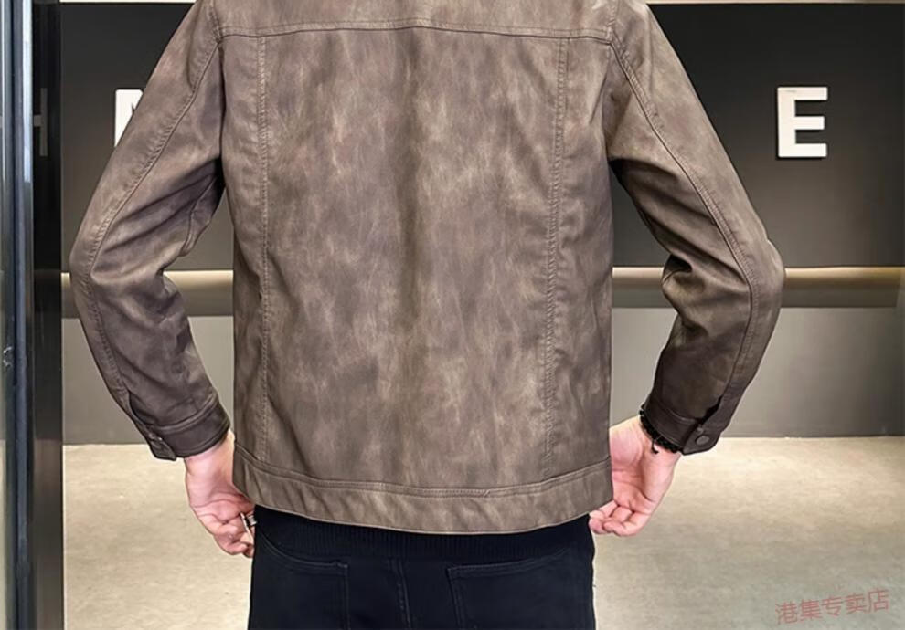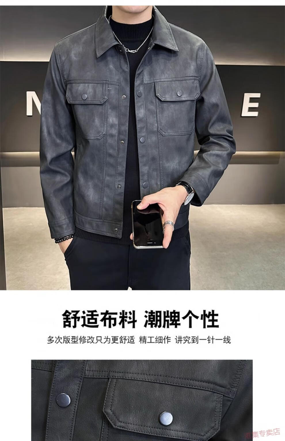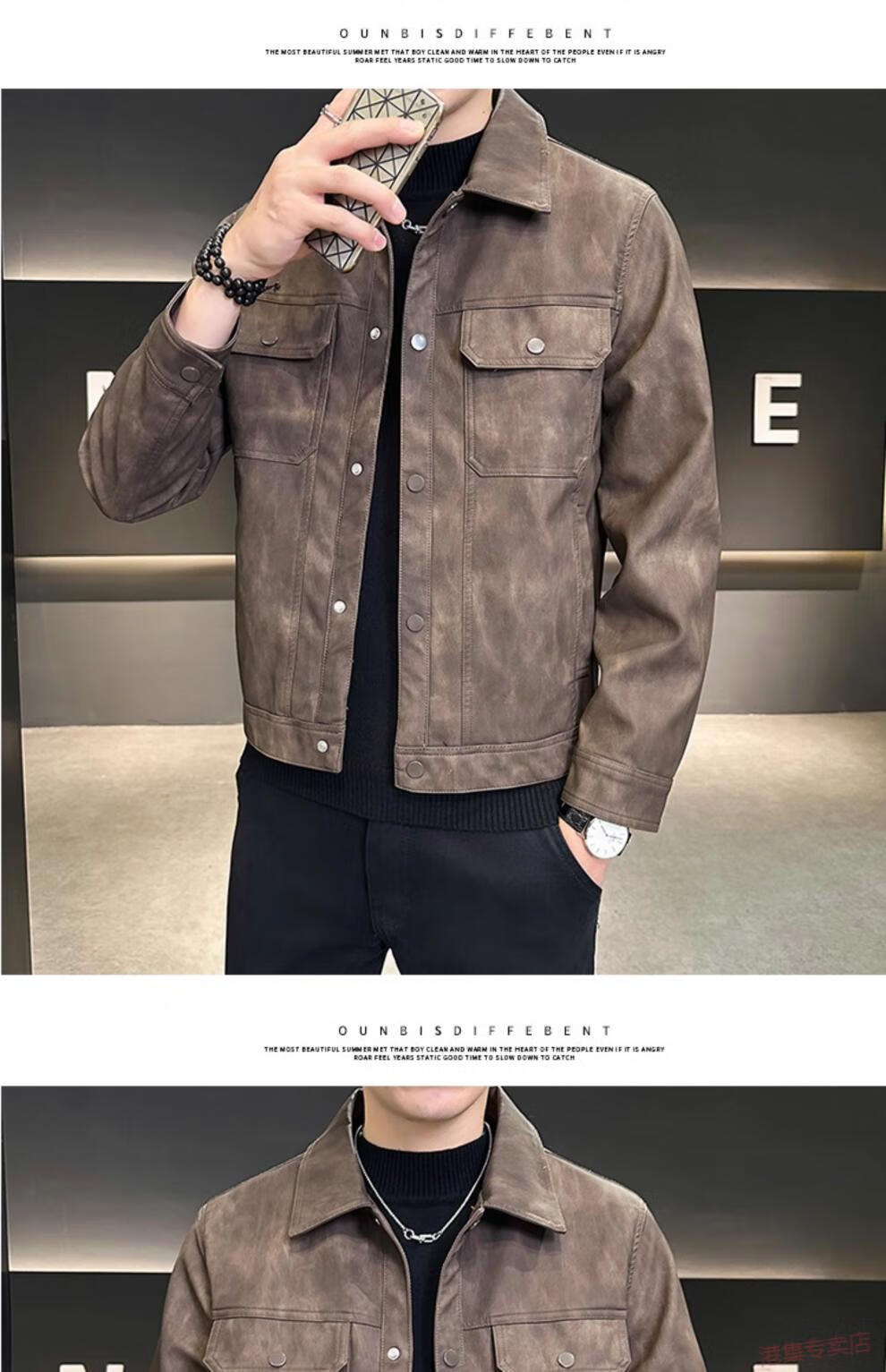 JEEP SPIRIT leather jacket men's 2025 new spring and autumn handsome slim bomber jacket casual men's leather jacket brown XL 105-125Jin Jin equals 0.5 kg