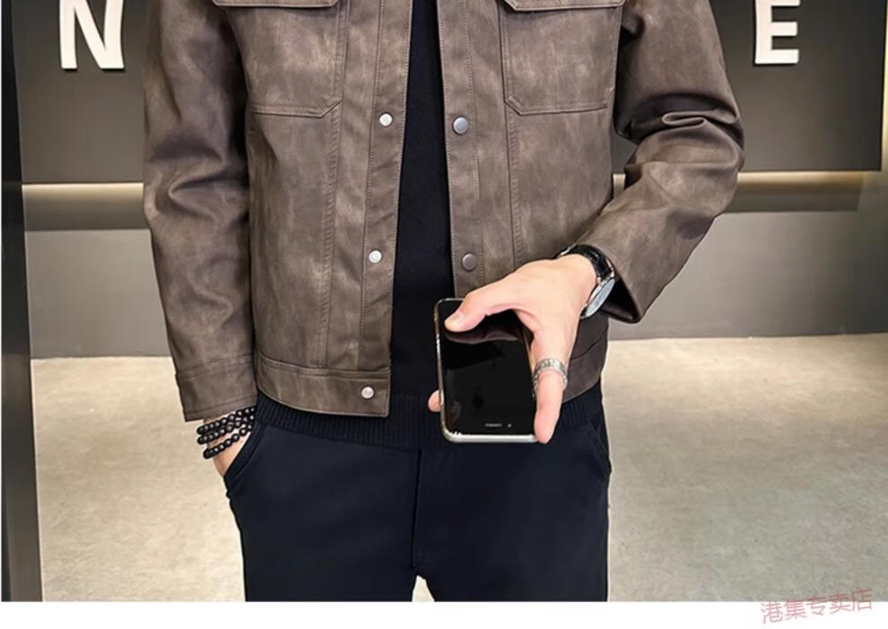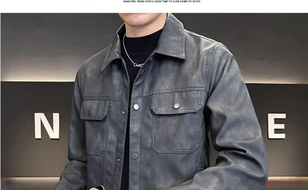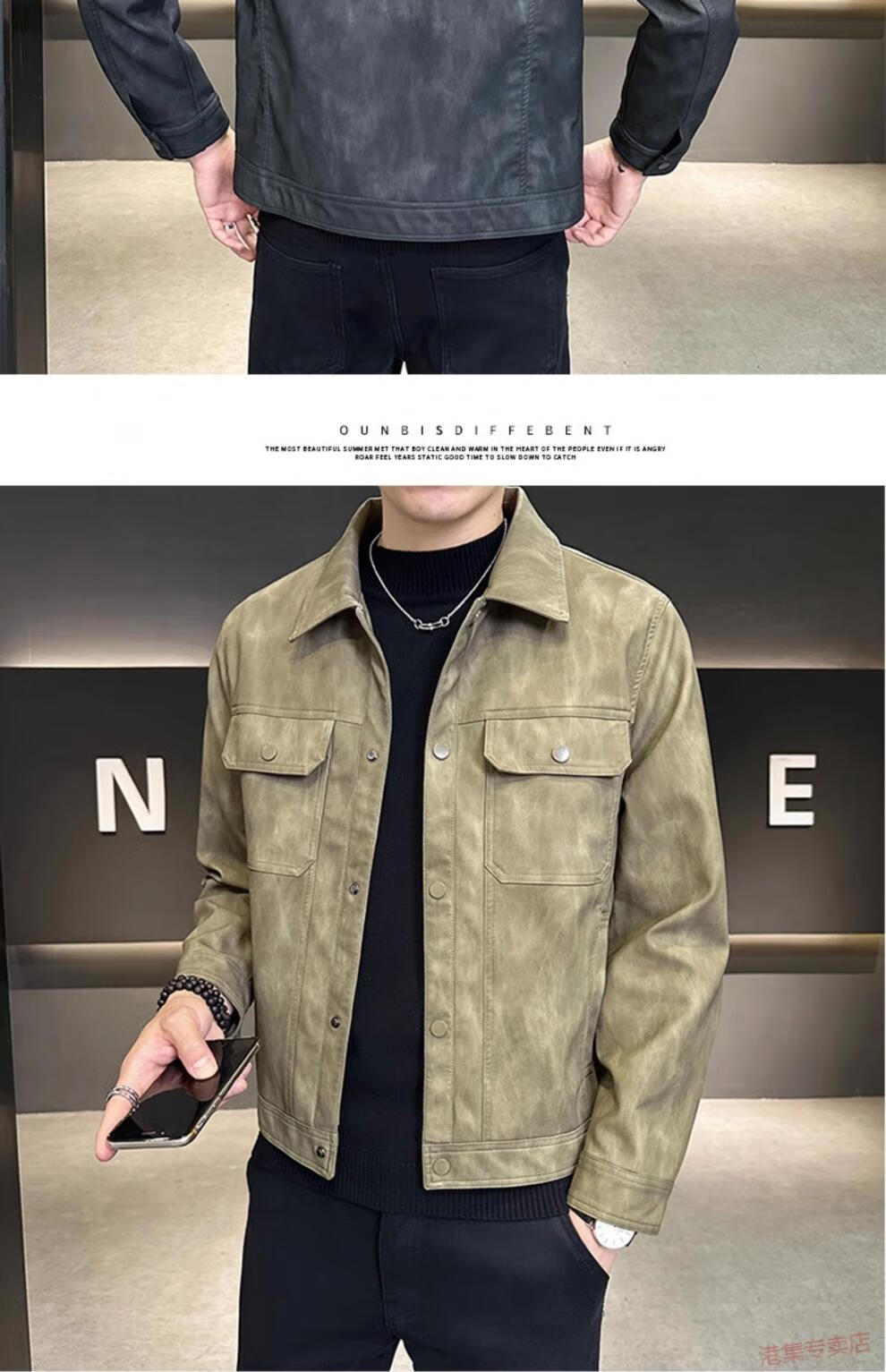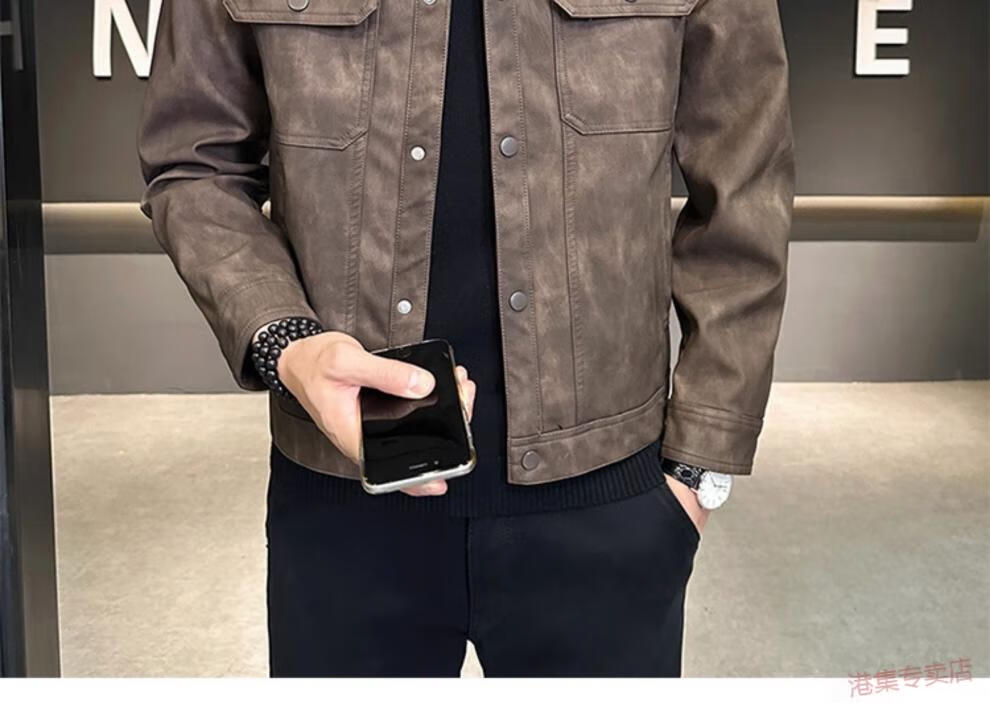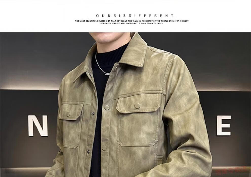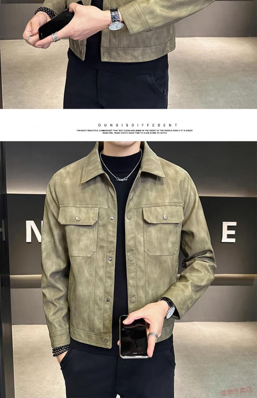 JEEP SPIRIT leather jacket men's 2025 new spring and autumn handsome slim bomber jacket casual men's leather jacket brown XL 105-125Jin Jin equals 0.5 kg