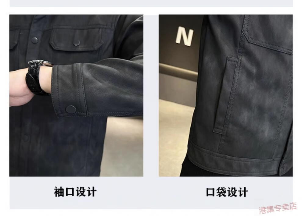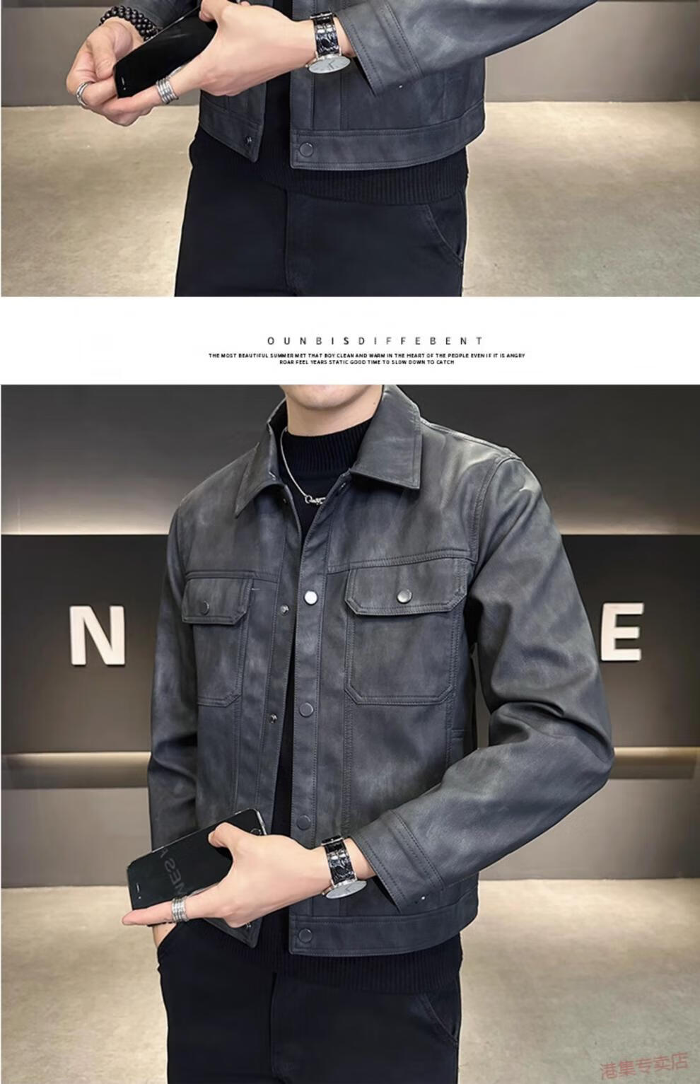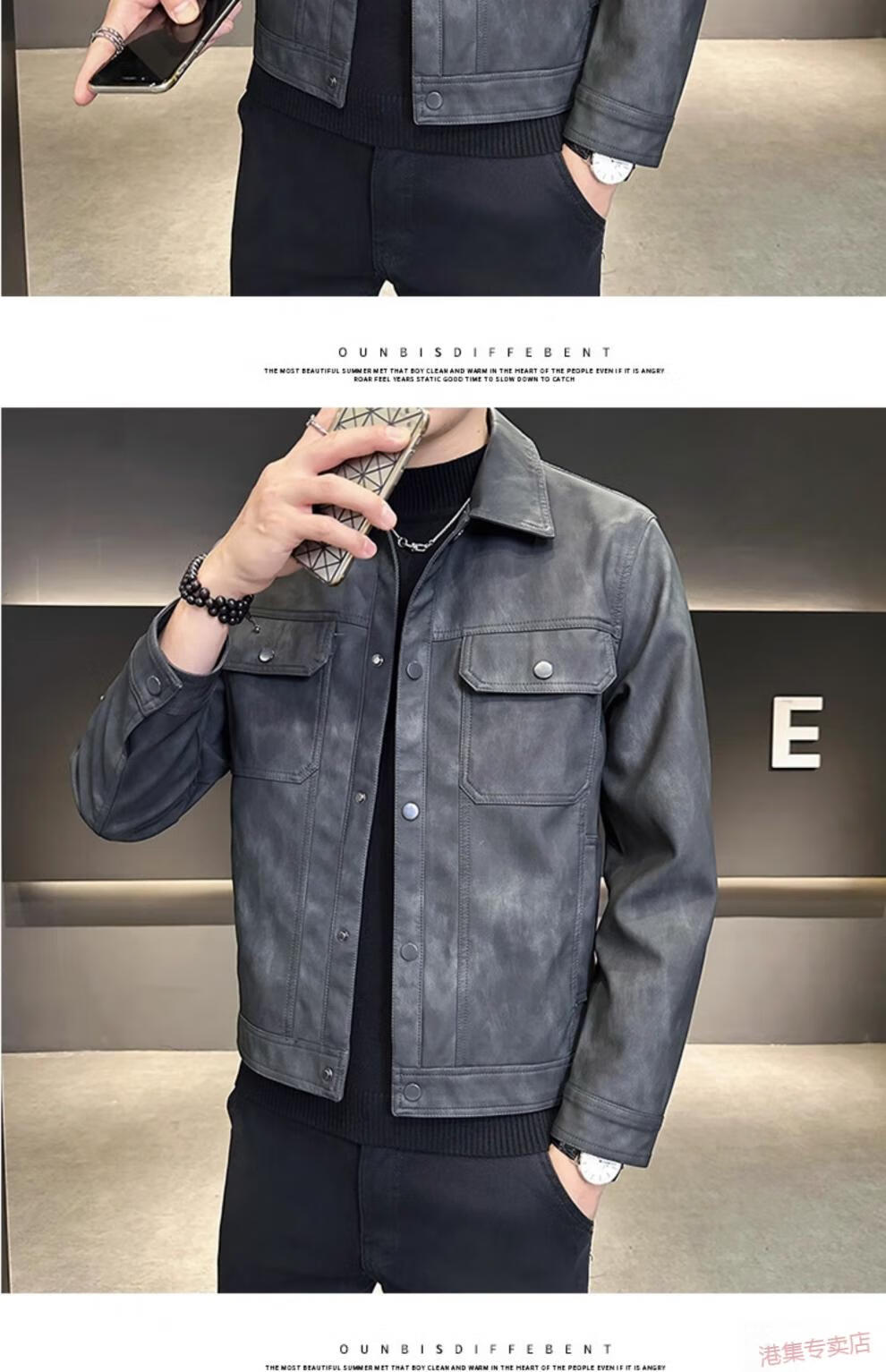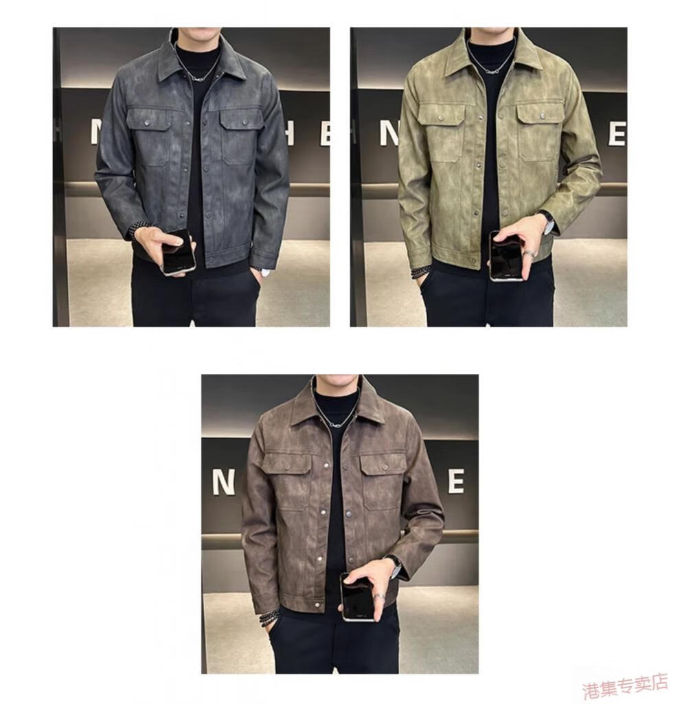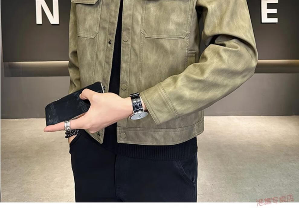 JEEP SPIRIT leather jacket men's 2025 new spring and autumn handsome slim bomber jacket casual men's leather jacket brown XL 105-125Jin Jin equals 0.5 kg