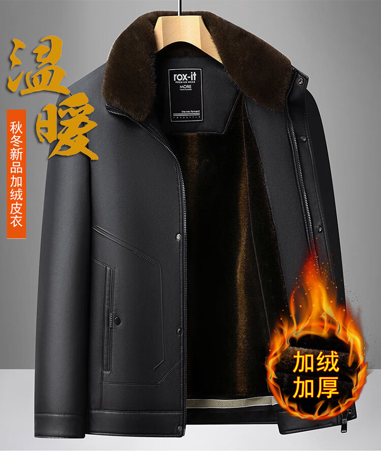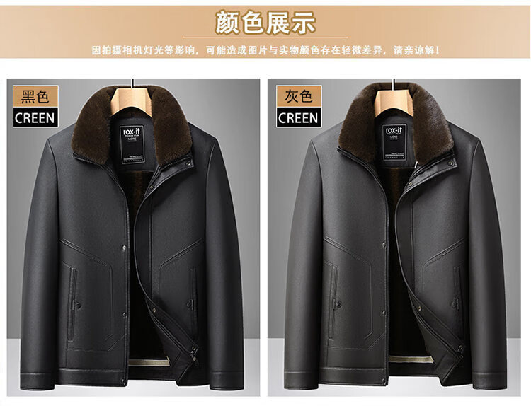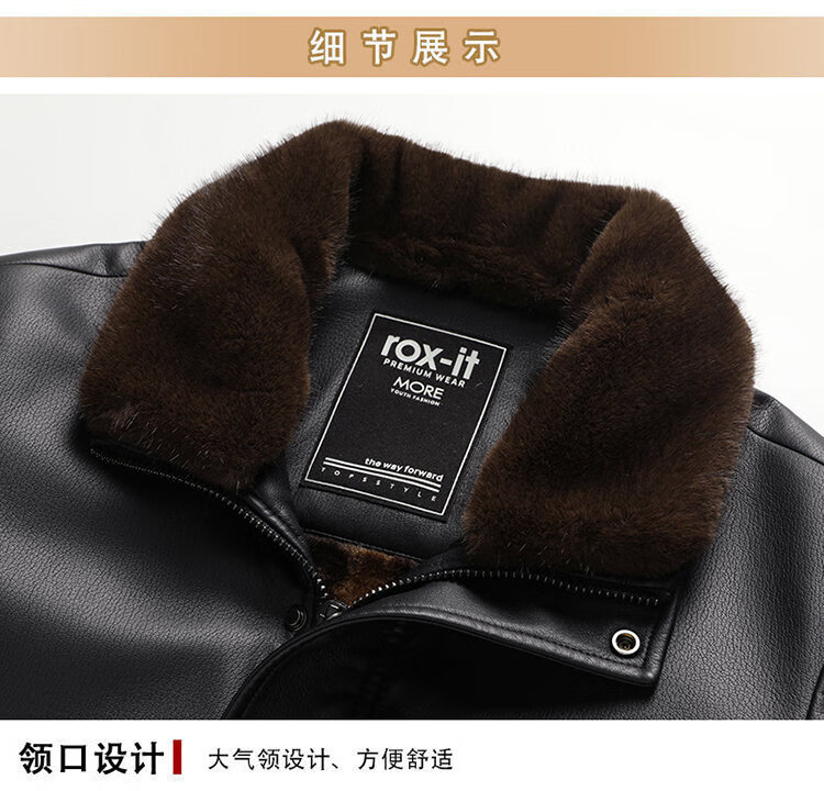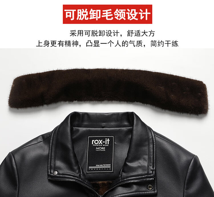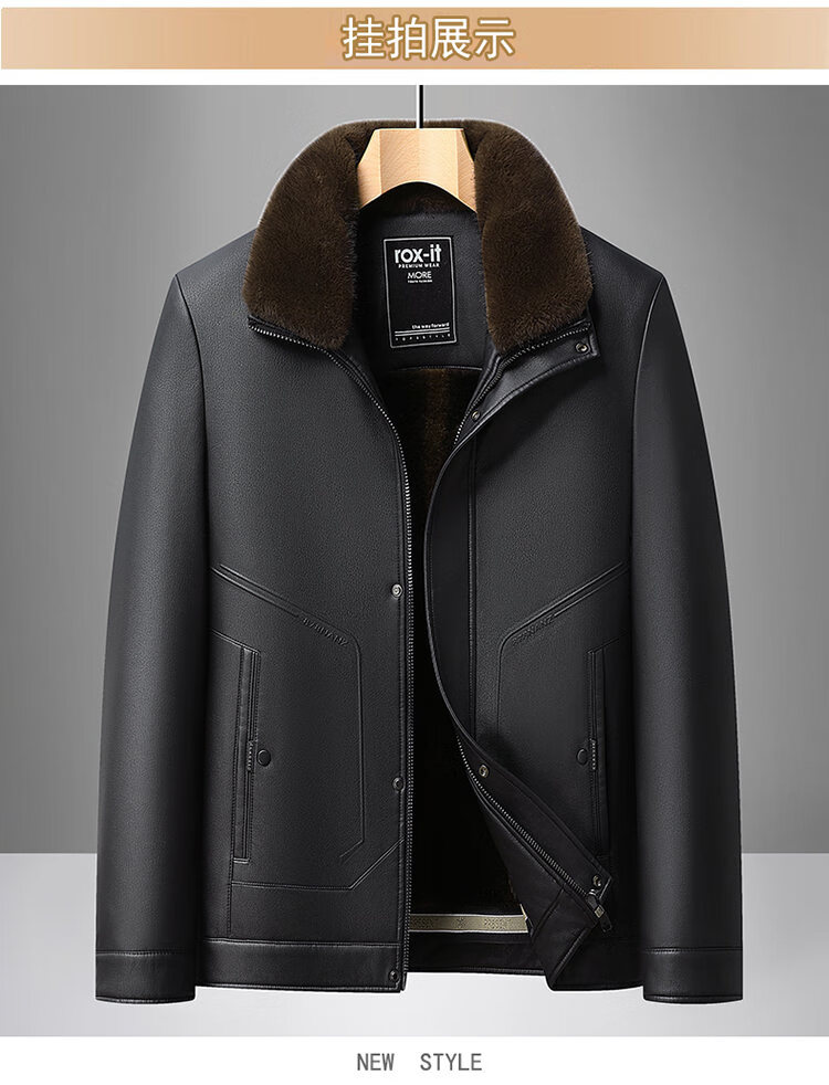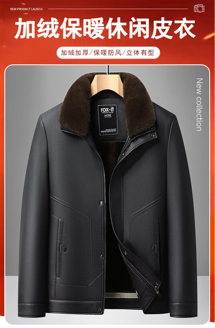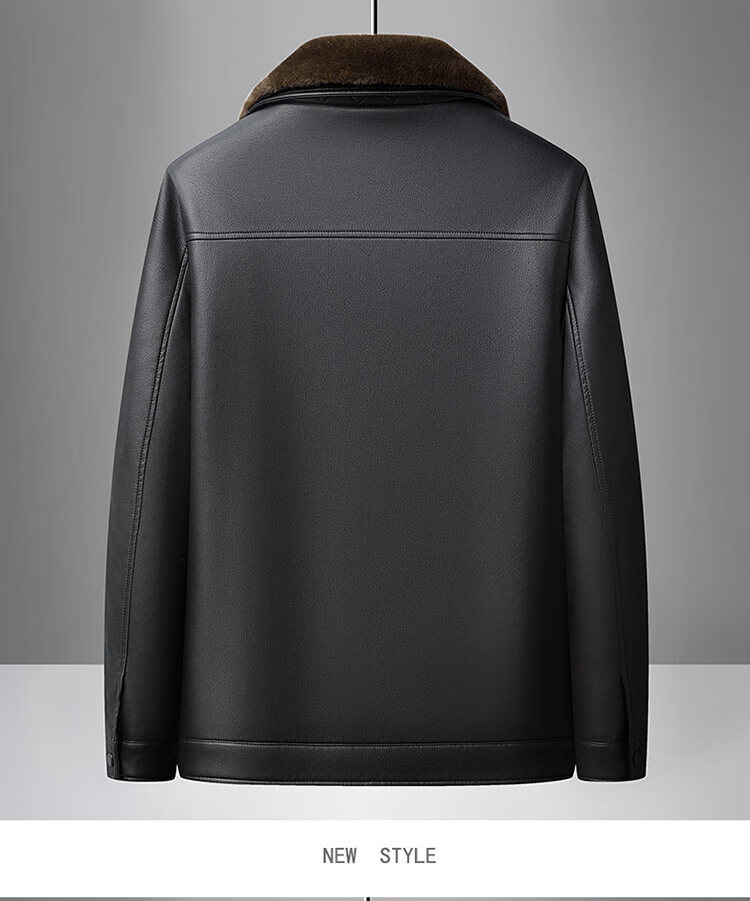 Playboy Fur All-in-One Men's Dad Winter Jacket Plus Velvet Thickened Men's Leather Jacket for Middle-aged and Elderly Grandpas to Keep Warm in Winter Black (Removable Collar) XL Recommended 105-125Jin Jin equals 0.5kg